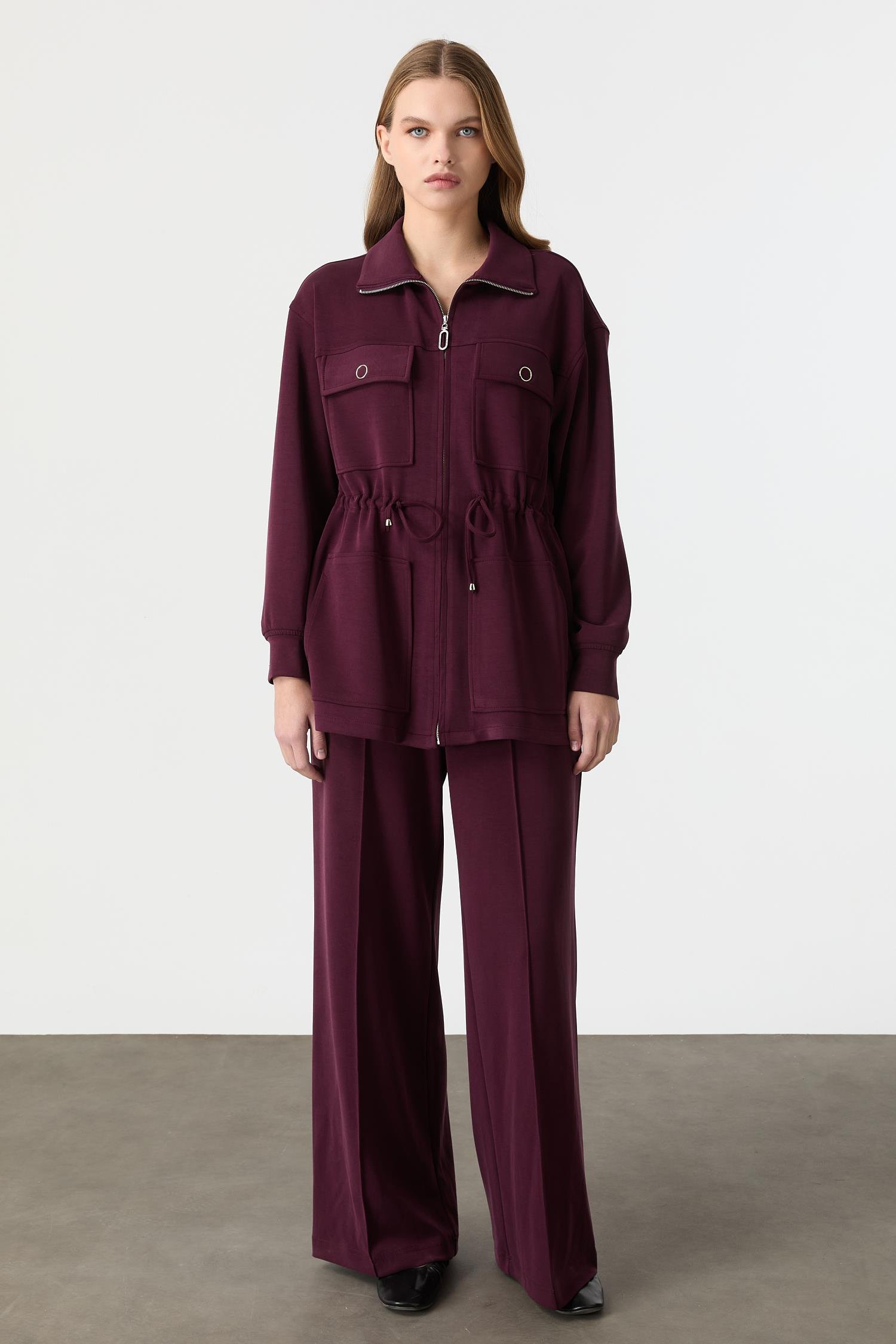 4 Cep Fermuar Detaylı Modal Tunik-BORDO (5WKB81K1982_30)