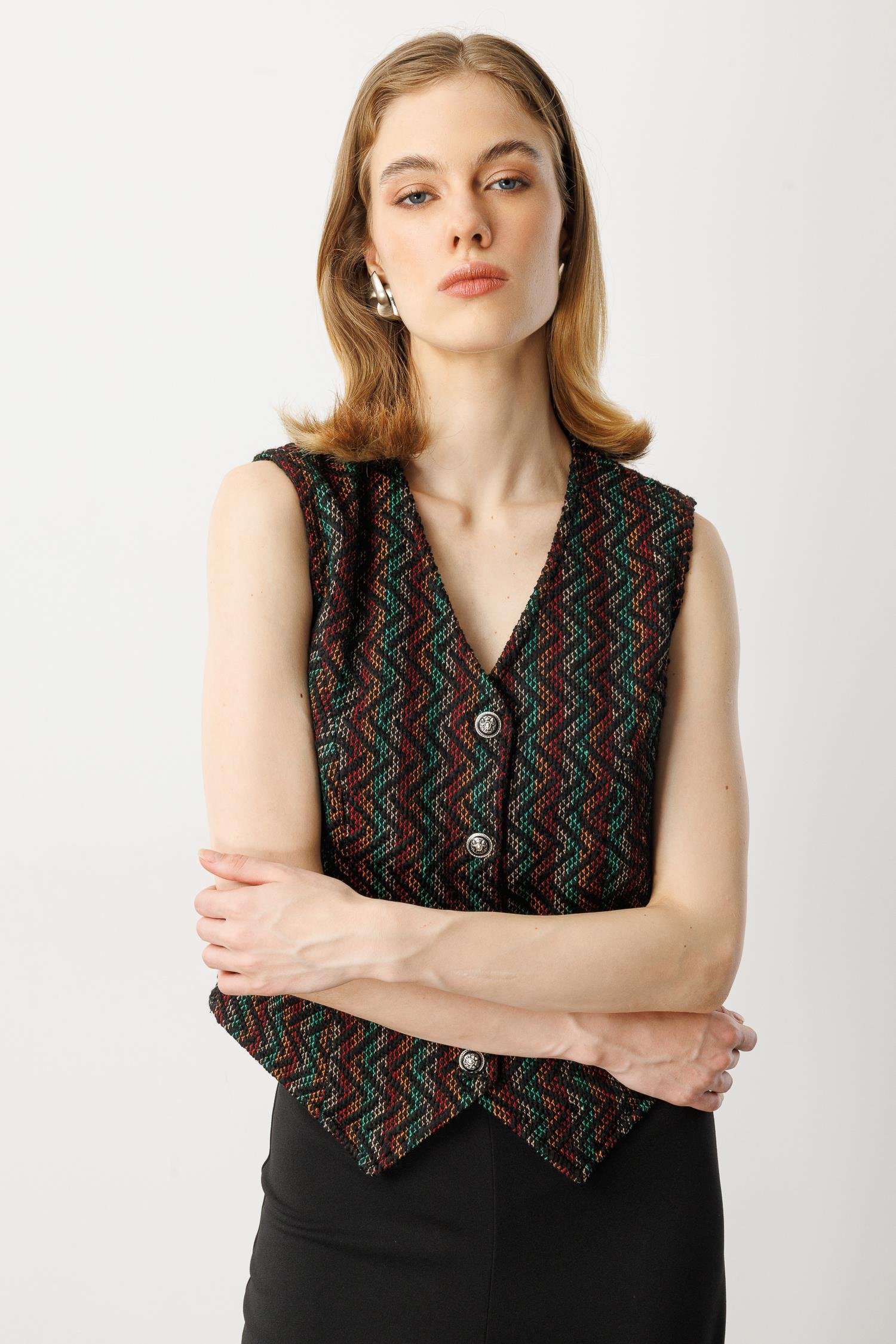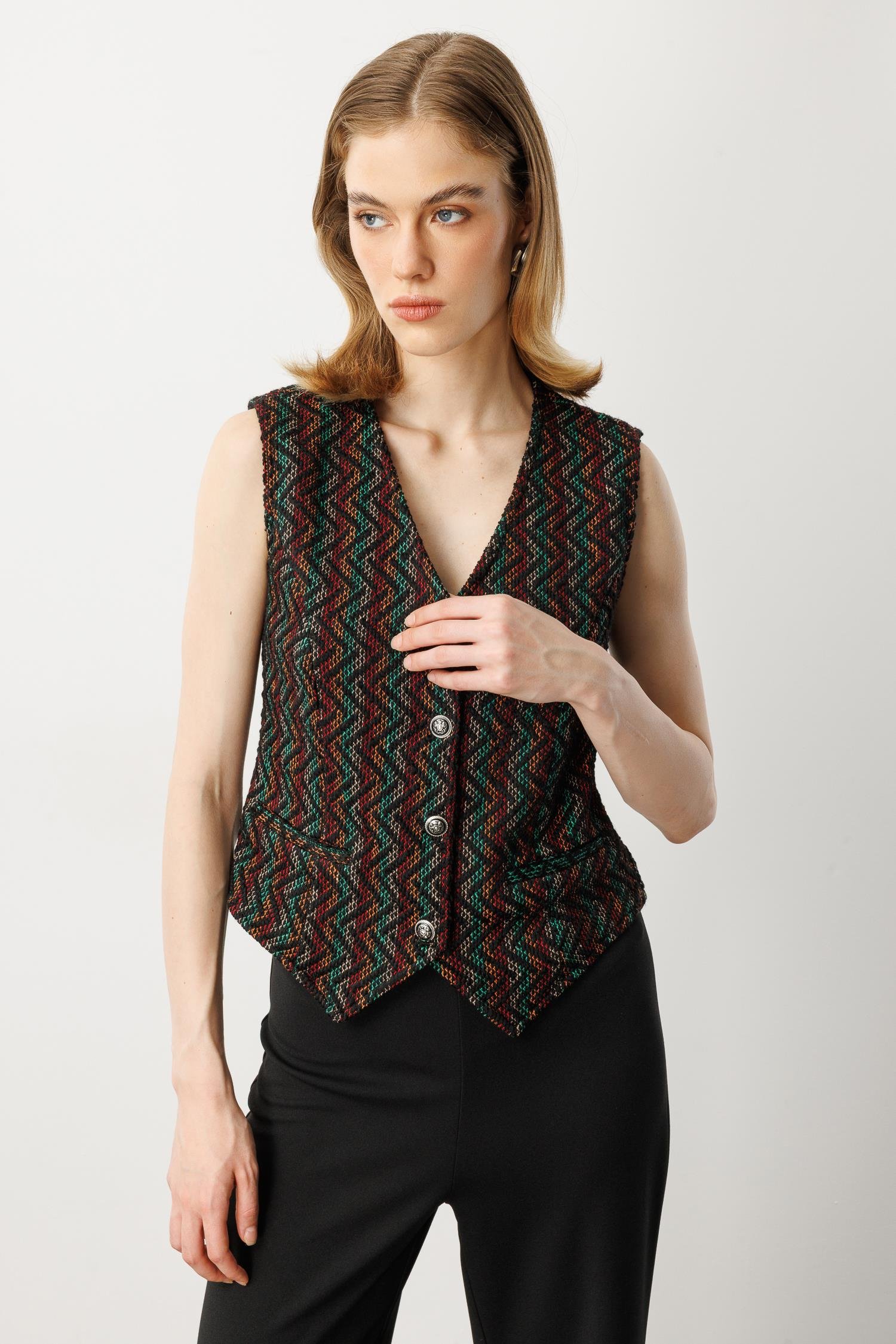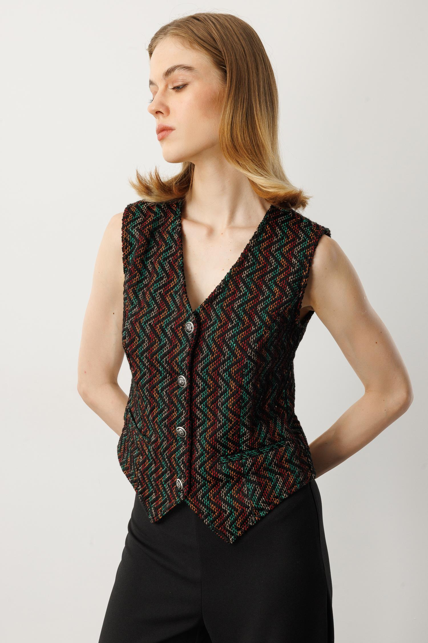 Asimetrik Kesim Örme Yelek-HAKİ (5WKB90K1846_24)