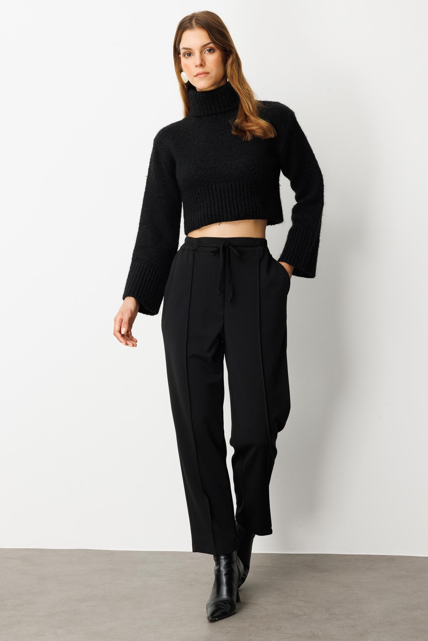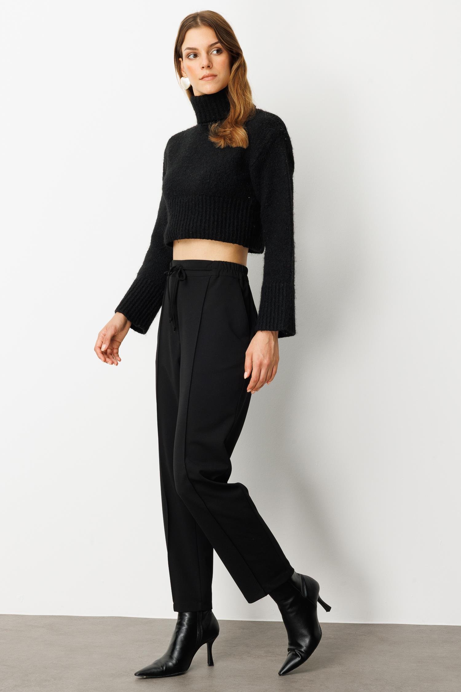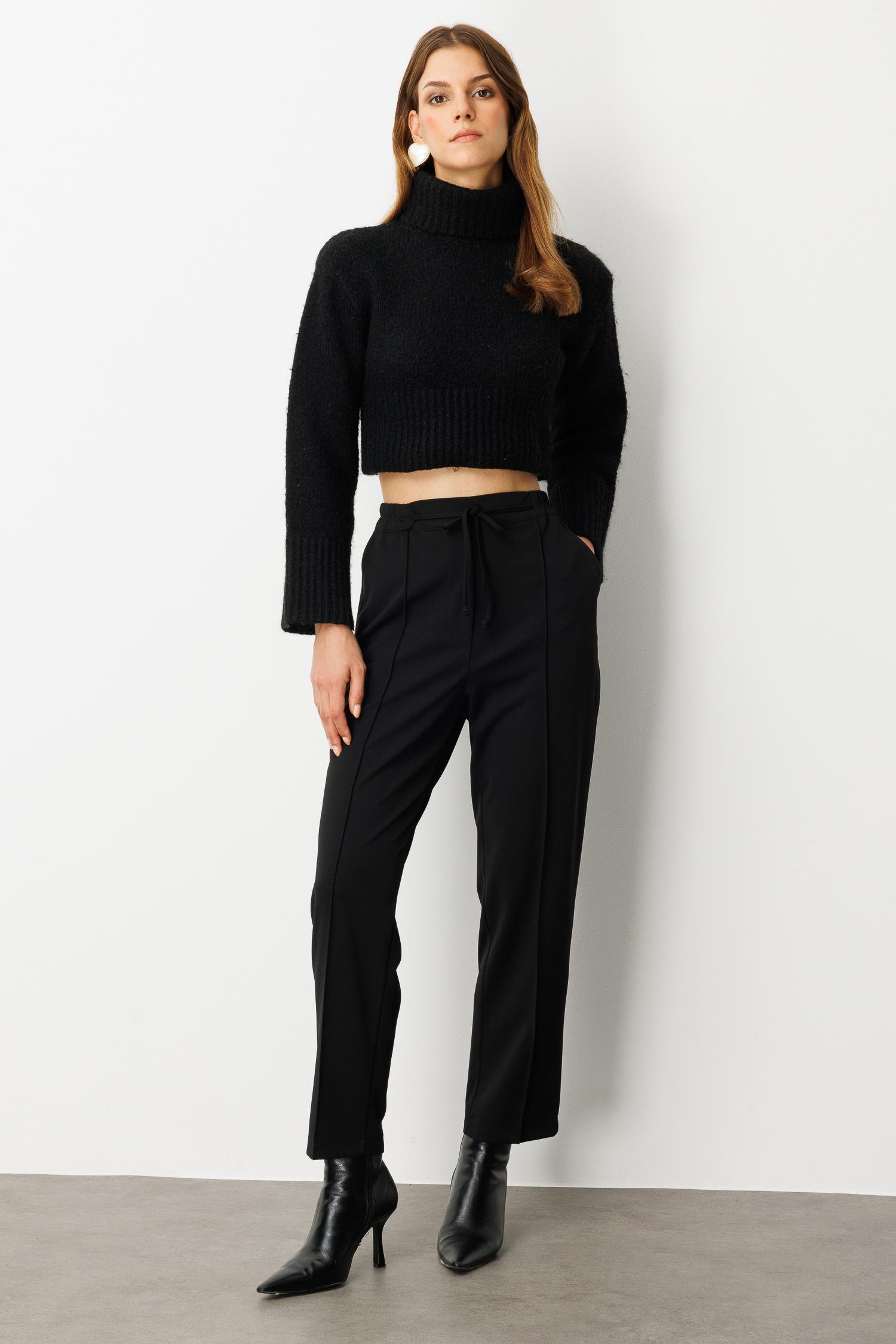 Bağlama Detaylı Beli Lastikli Pantolon-SİYAH (5WKB21K1776_01)