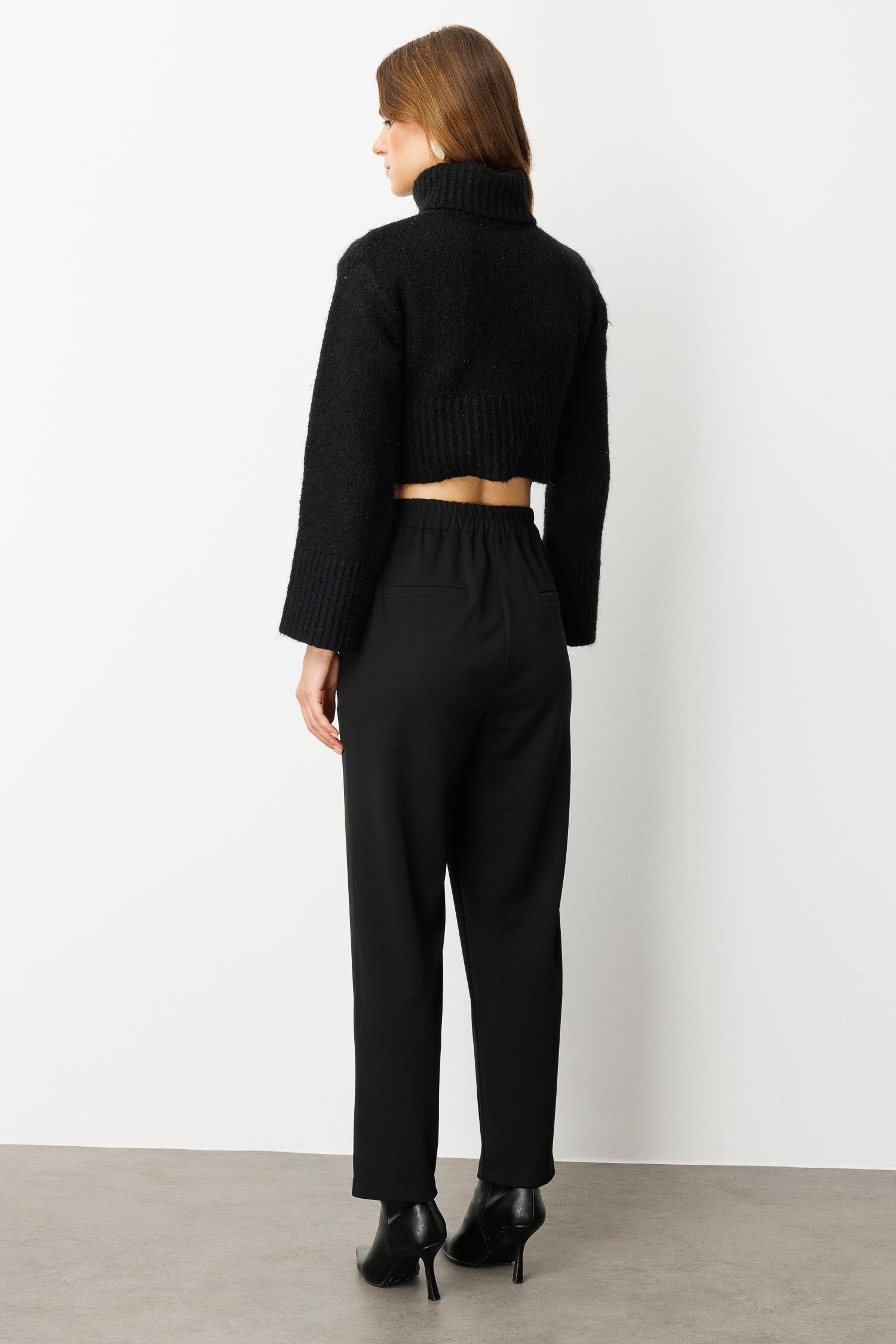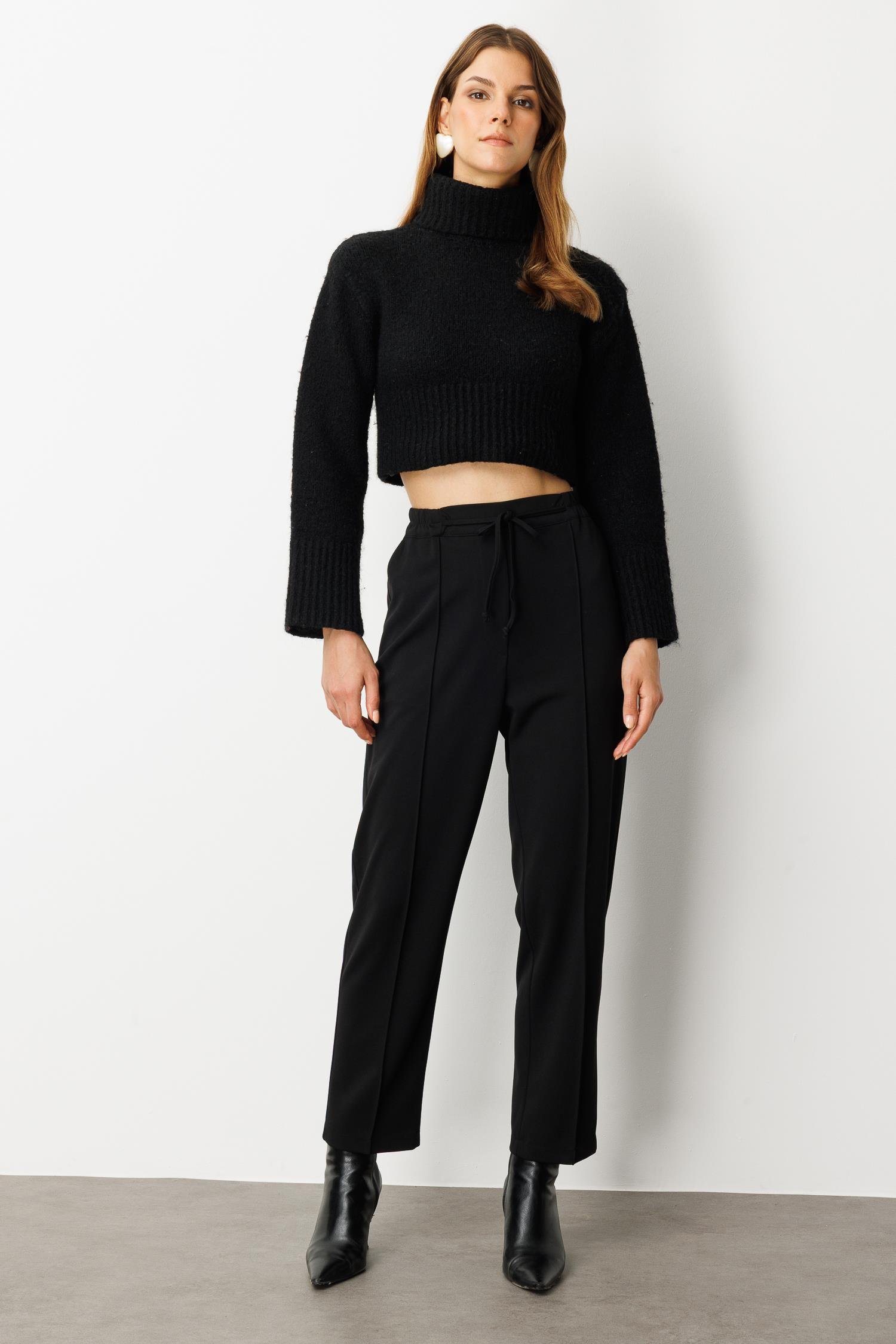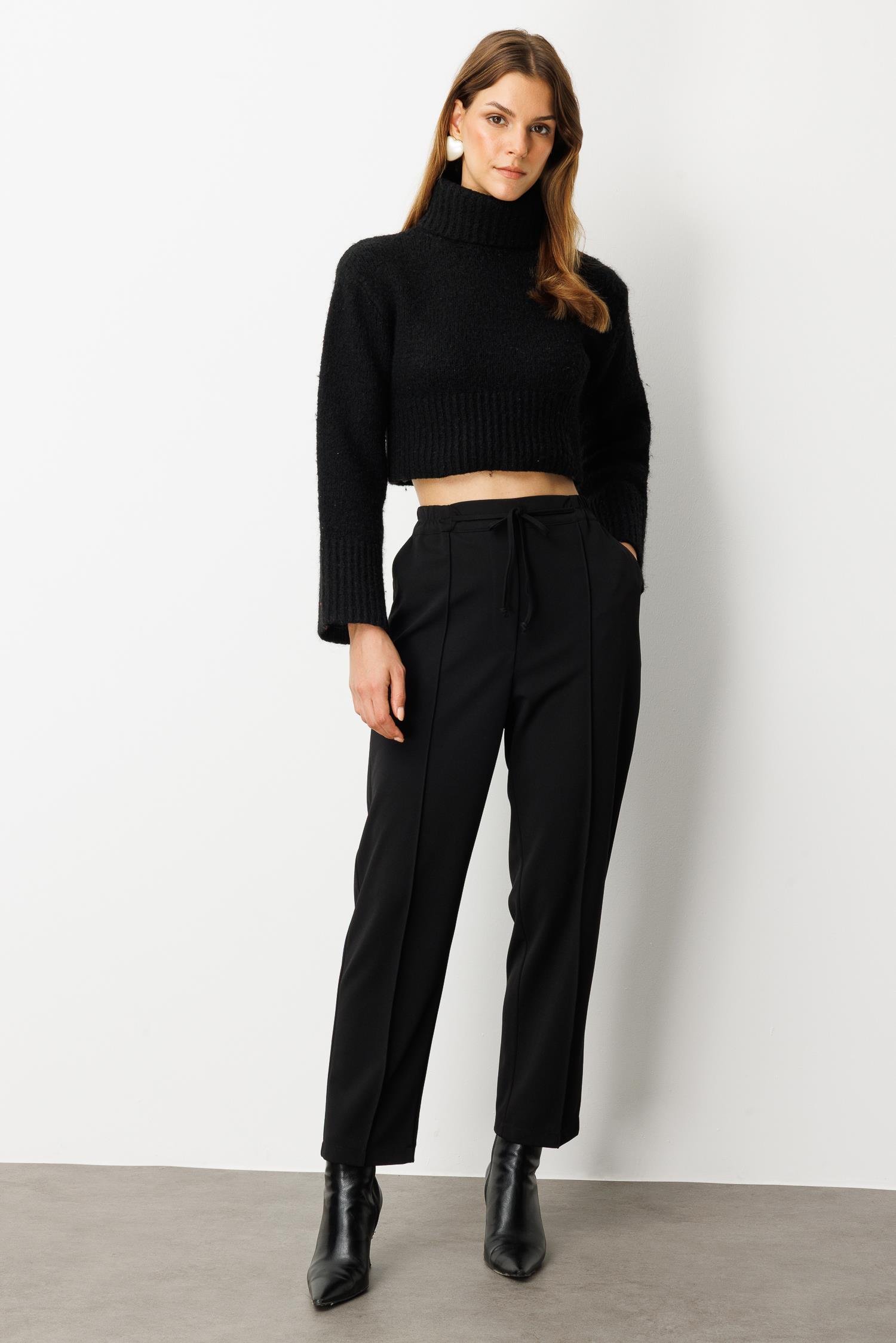 Bağlama Detaylı Beli Lastikli Pantolon-SİYAH (5WKB21K1776_01)