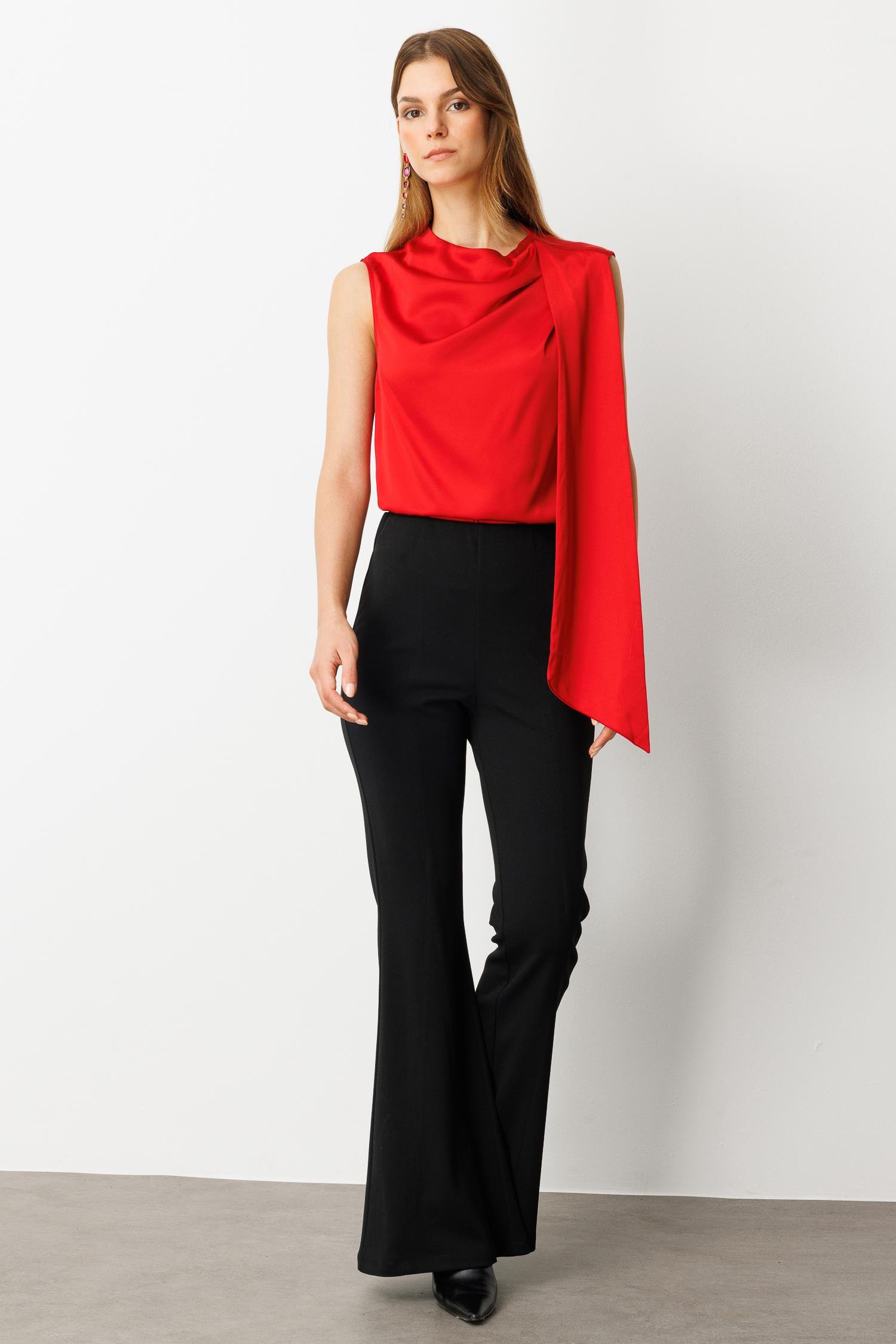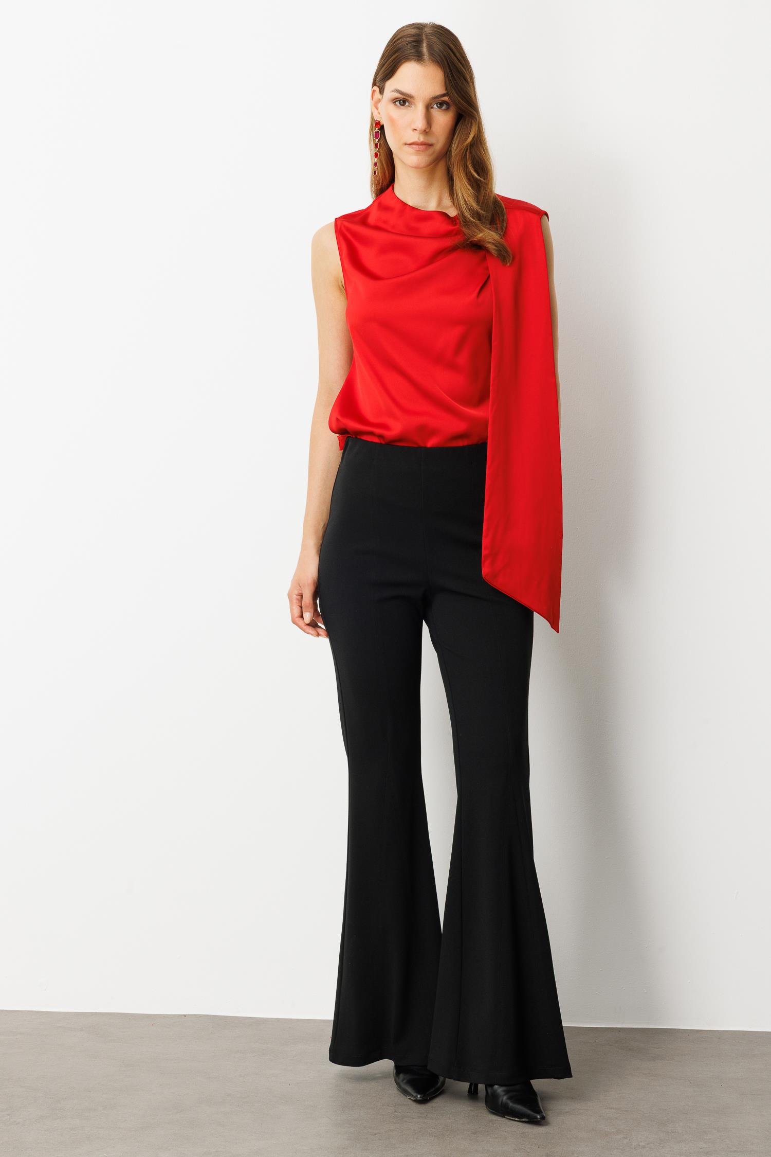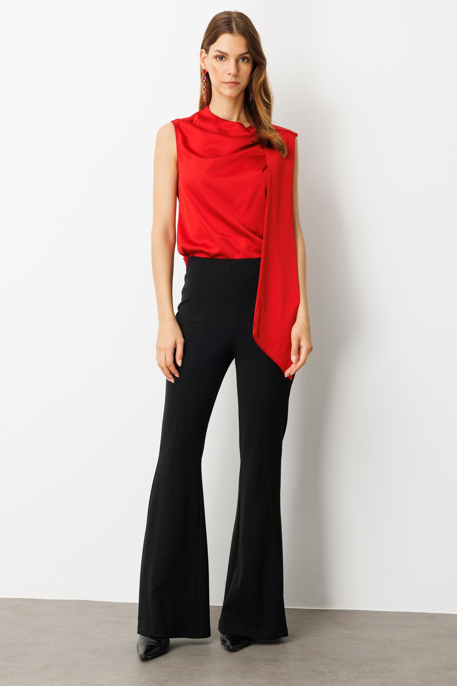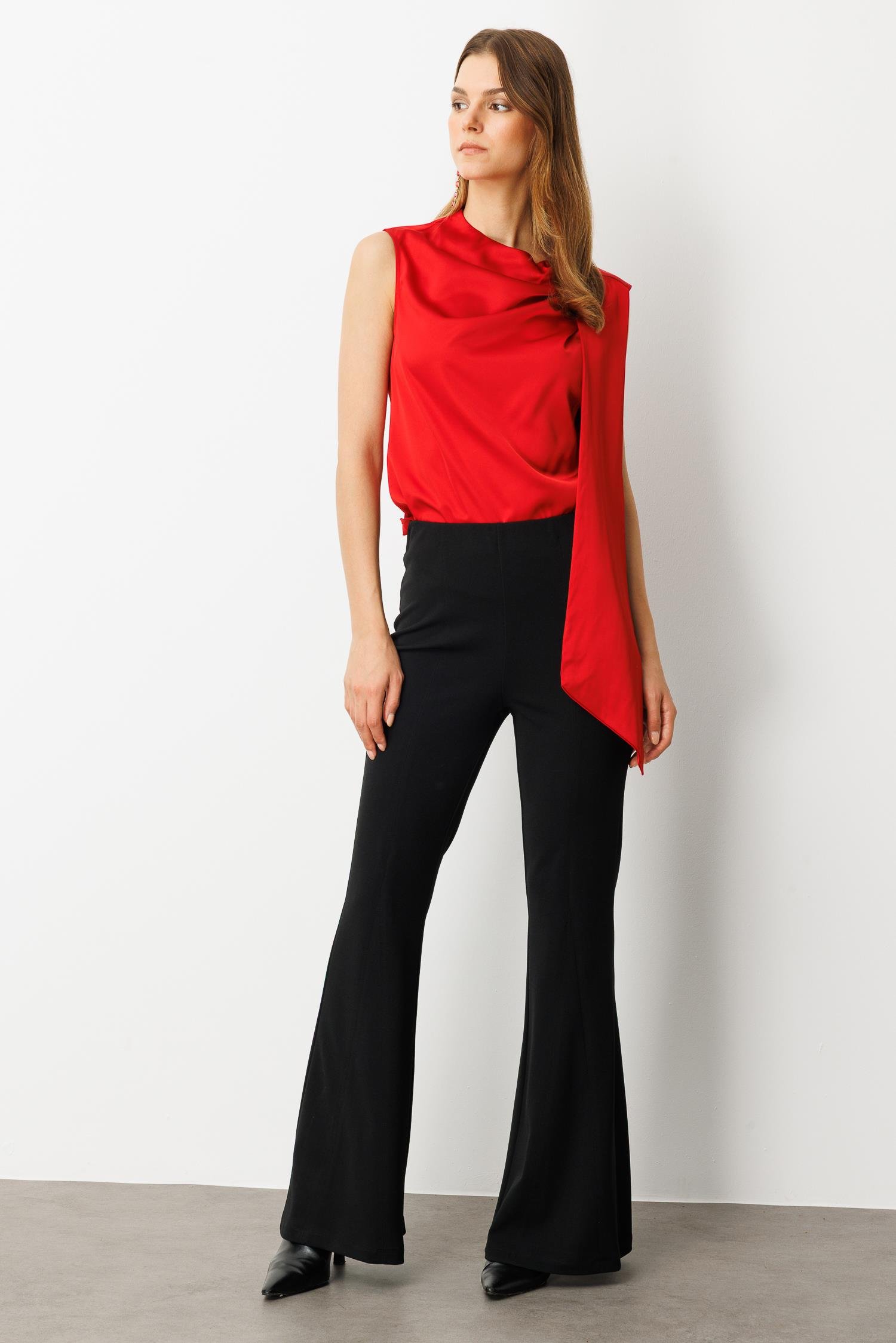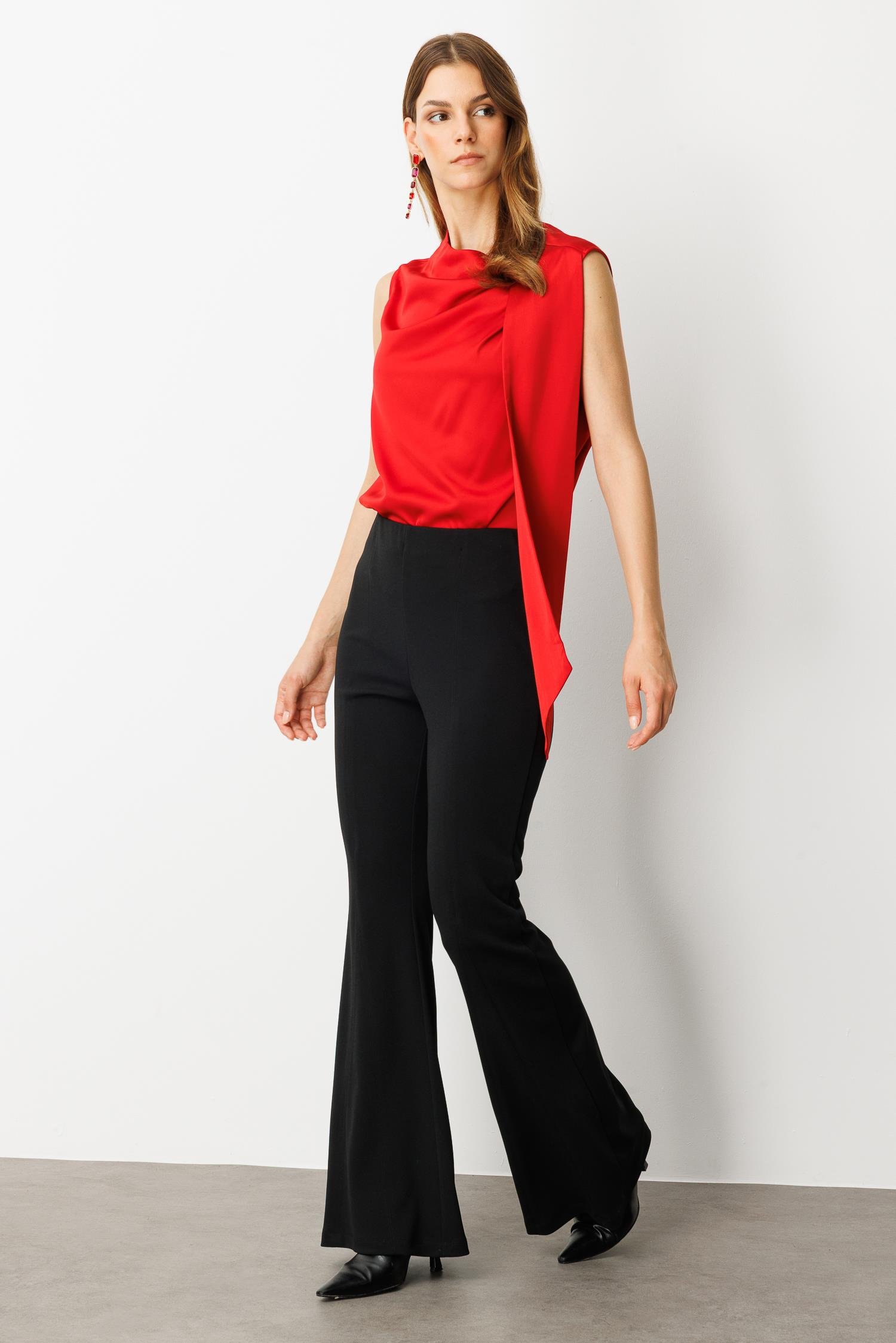 Beli Lastikli İspanyol Paça Pantolon-SİYAH (5WKB21K1709_01)