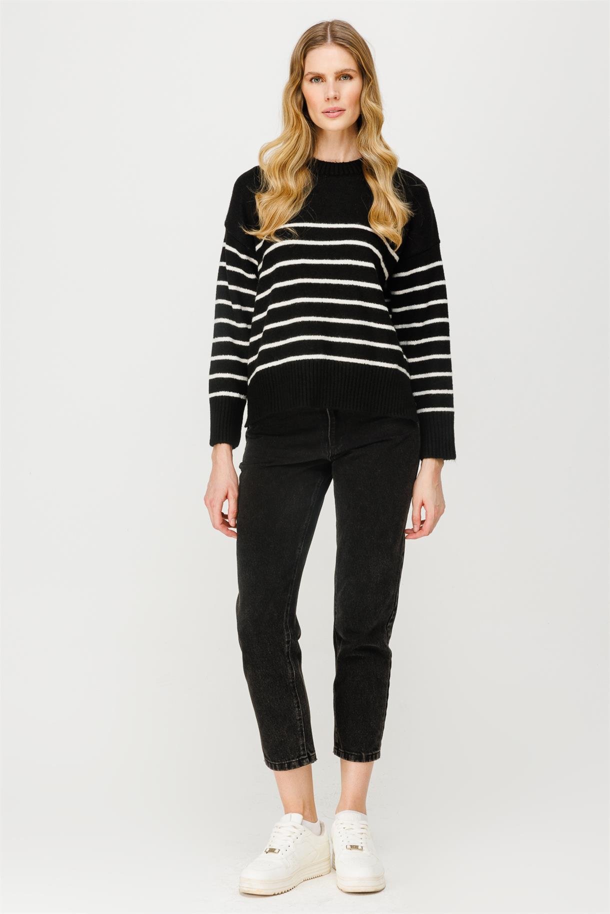 Bisiklet Yaka Çizgili Triko Kazak-SİYAH (3WKL00Z9490_01)