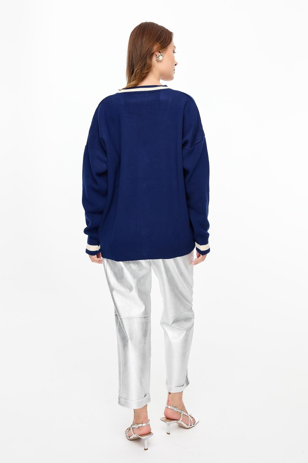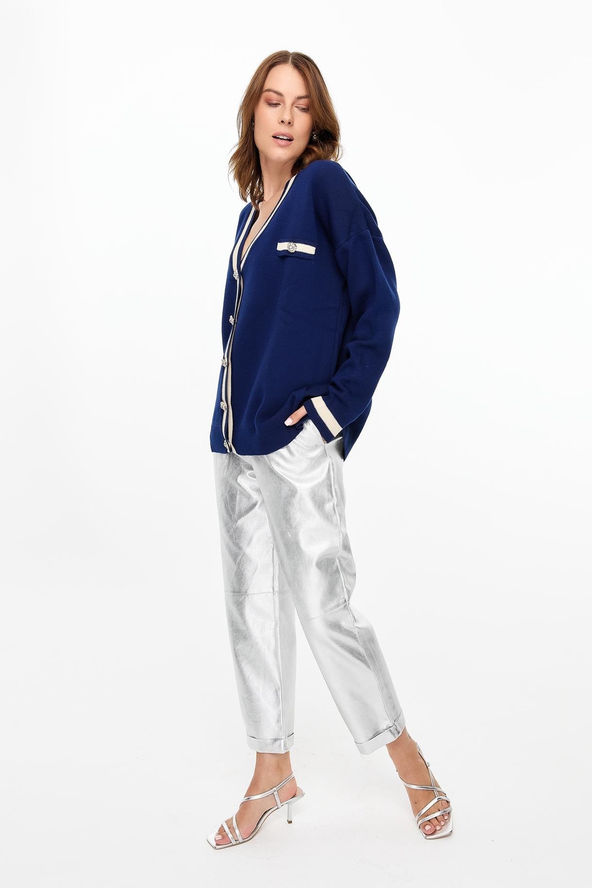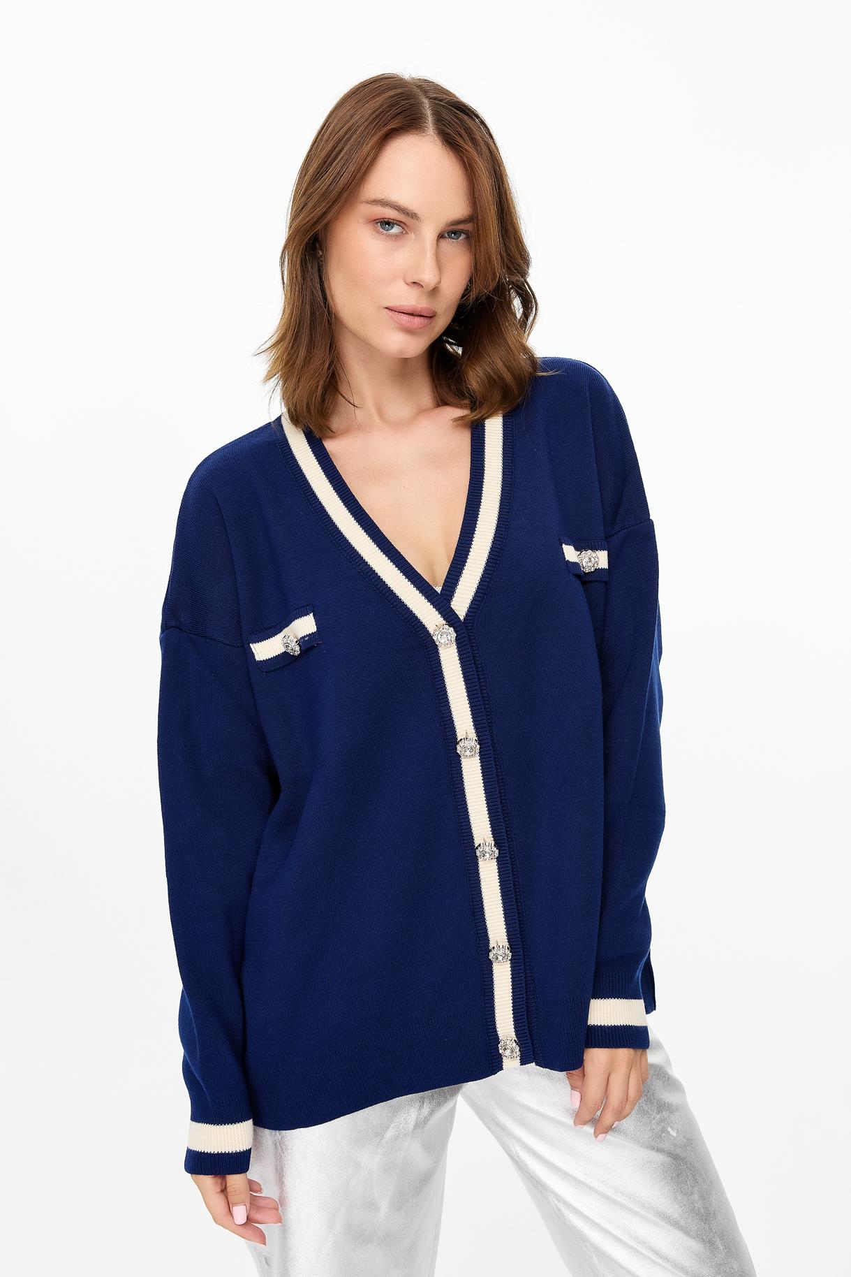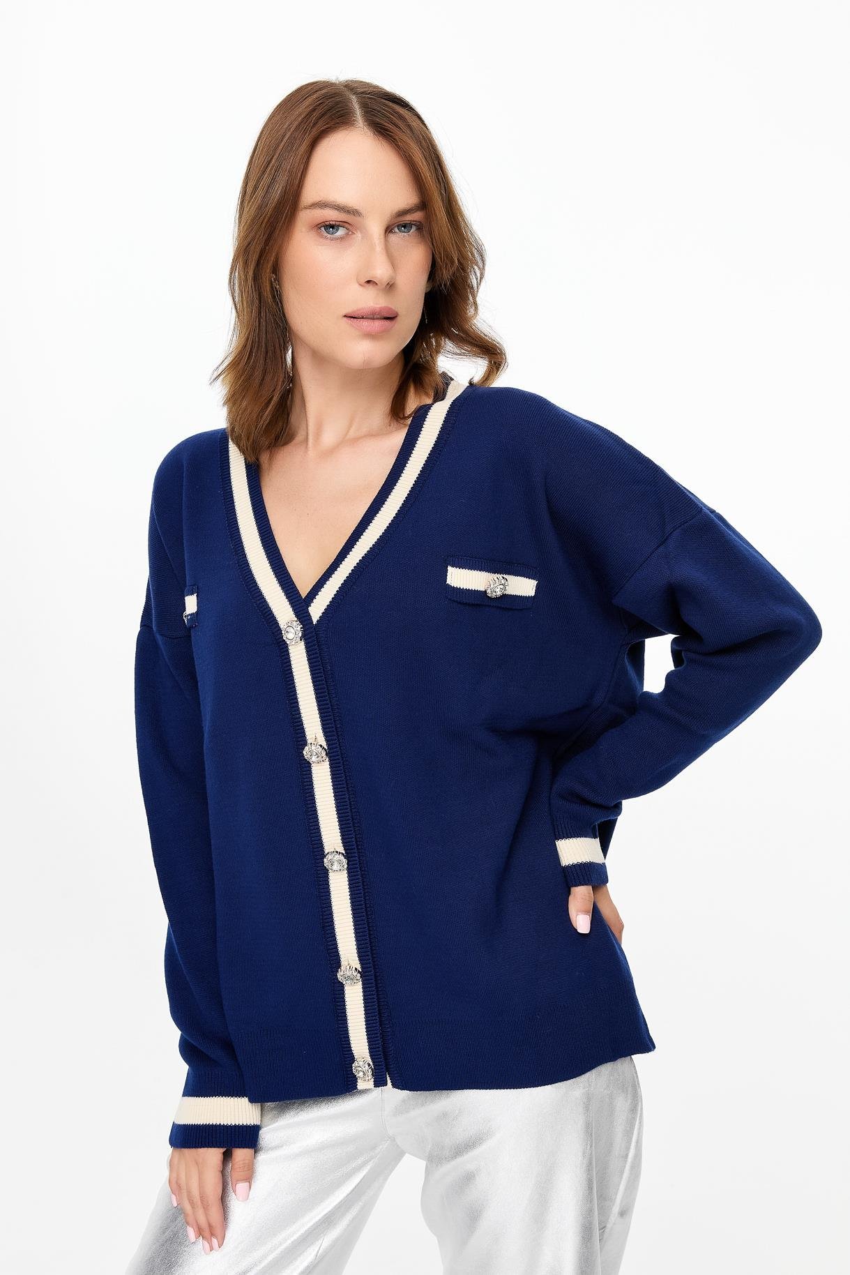 Biyeli Taşlı Düğmeli Triko Hırka-LACI (4WERN005510_18)