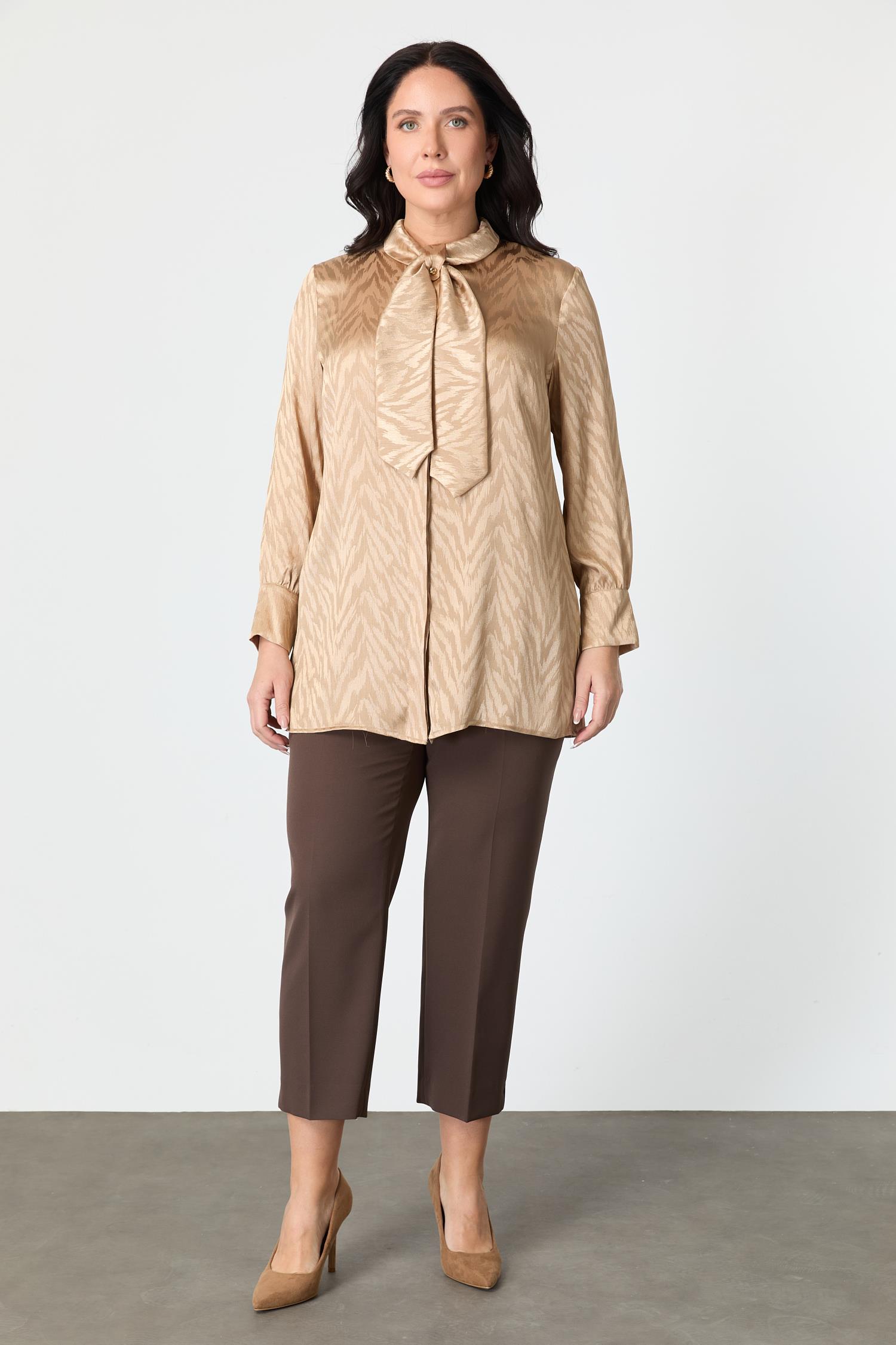 Büyük Beden Bağlama Detaylı Tunik Gömlek- (5WBB81B1019-100)