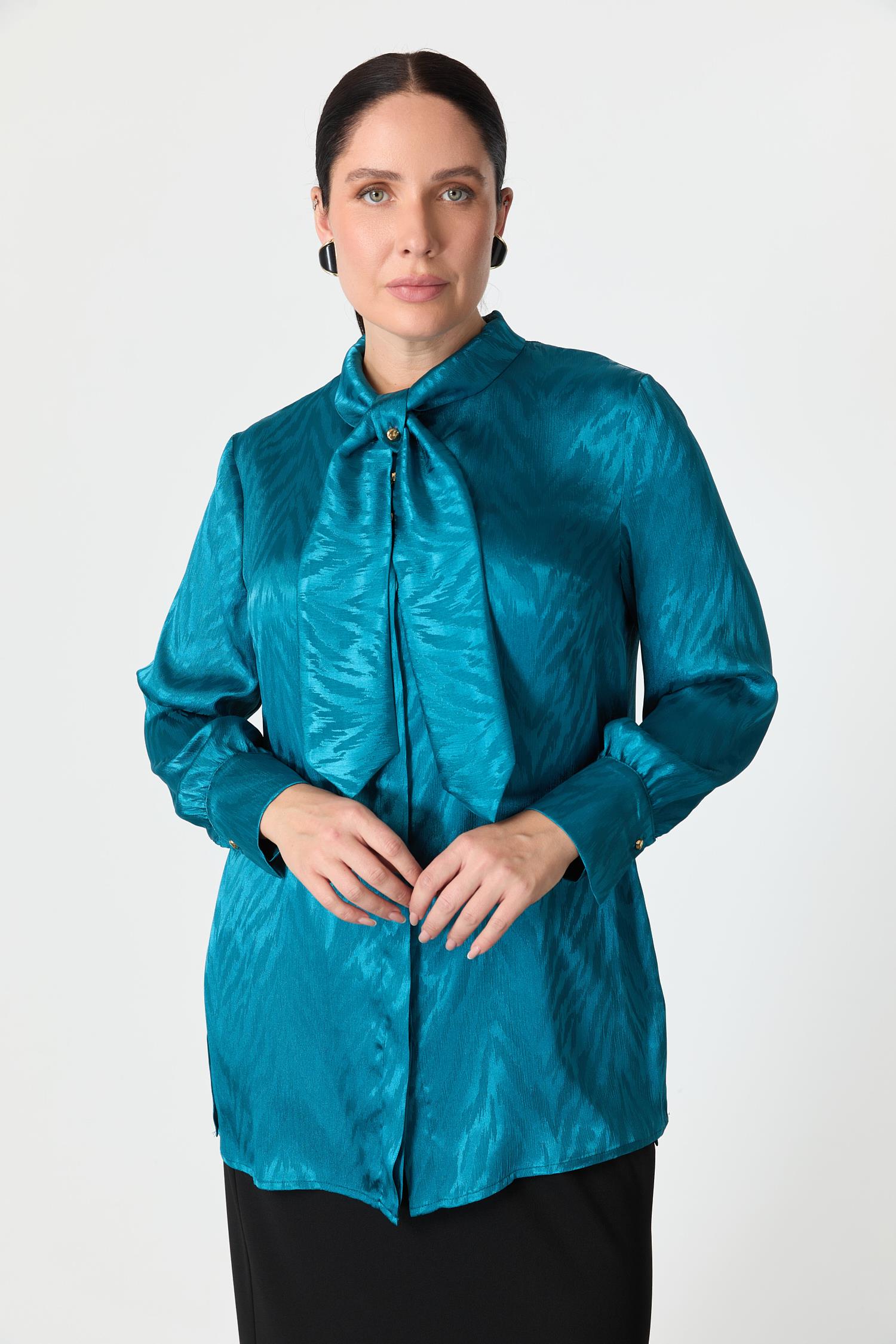 Büyük Beden Bağlama Detaylı Tunik Gömlek-PETROL (5WBB81B1019_56)