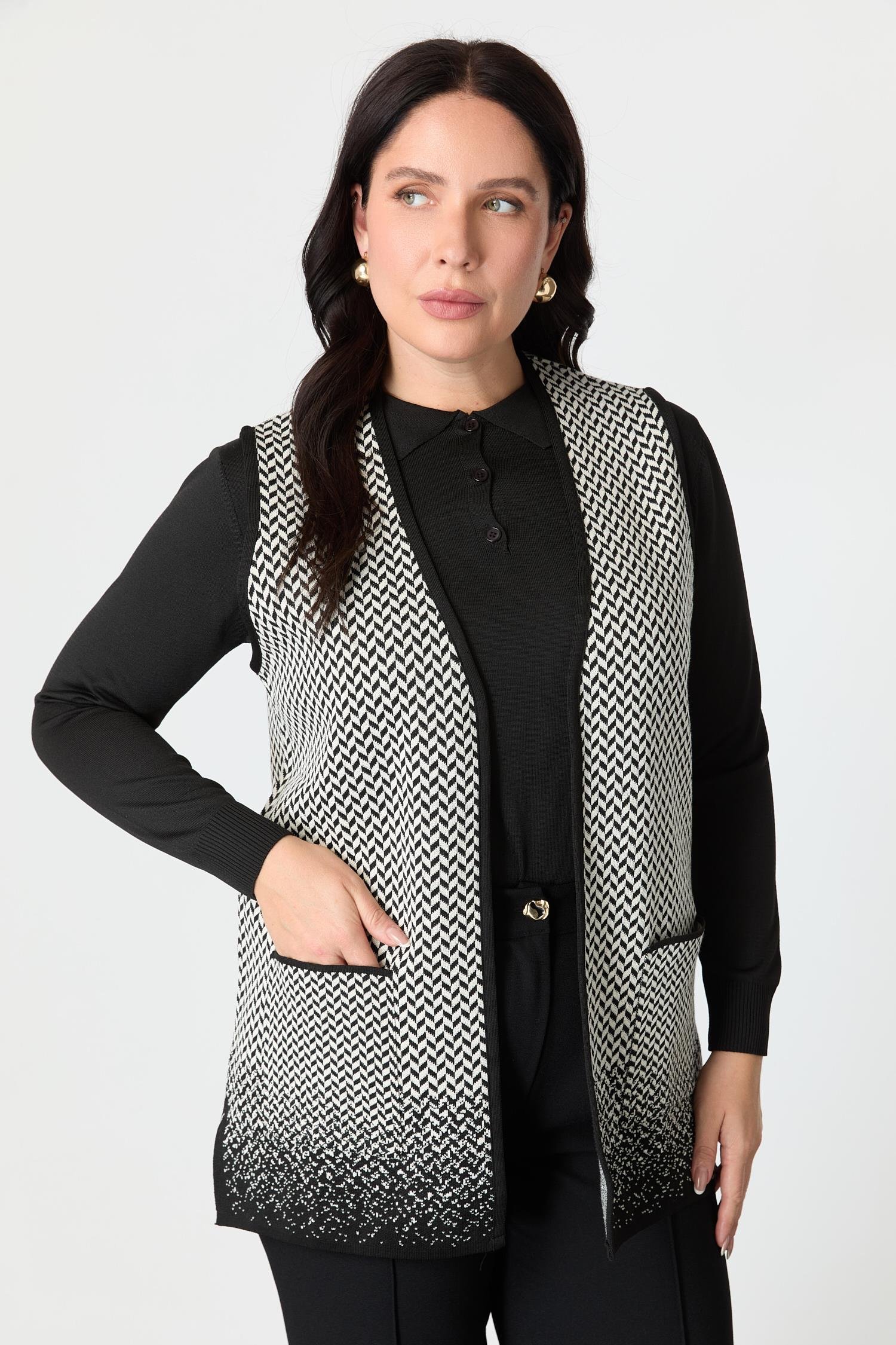 Büyük Beden Başak Desenli Triko Yelek-SİYAH (5WT00058070_01)