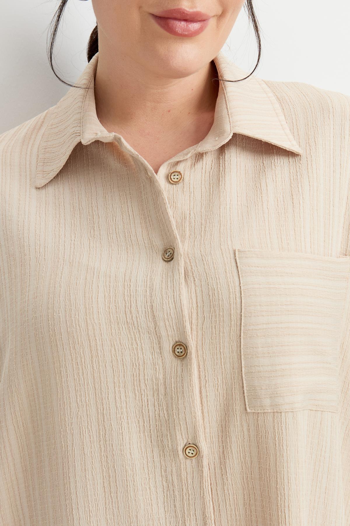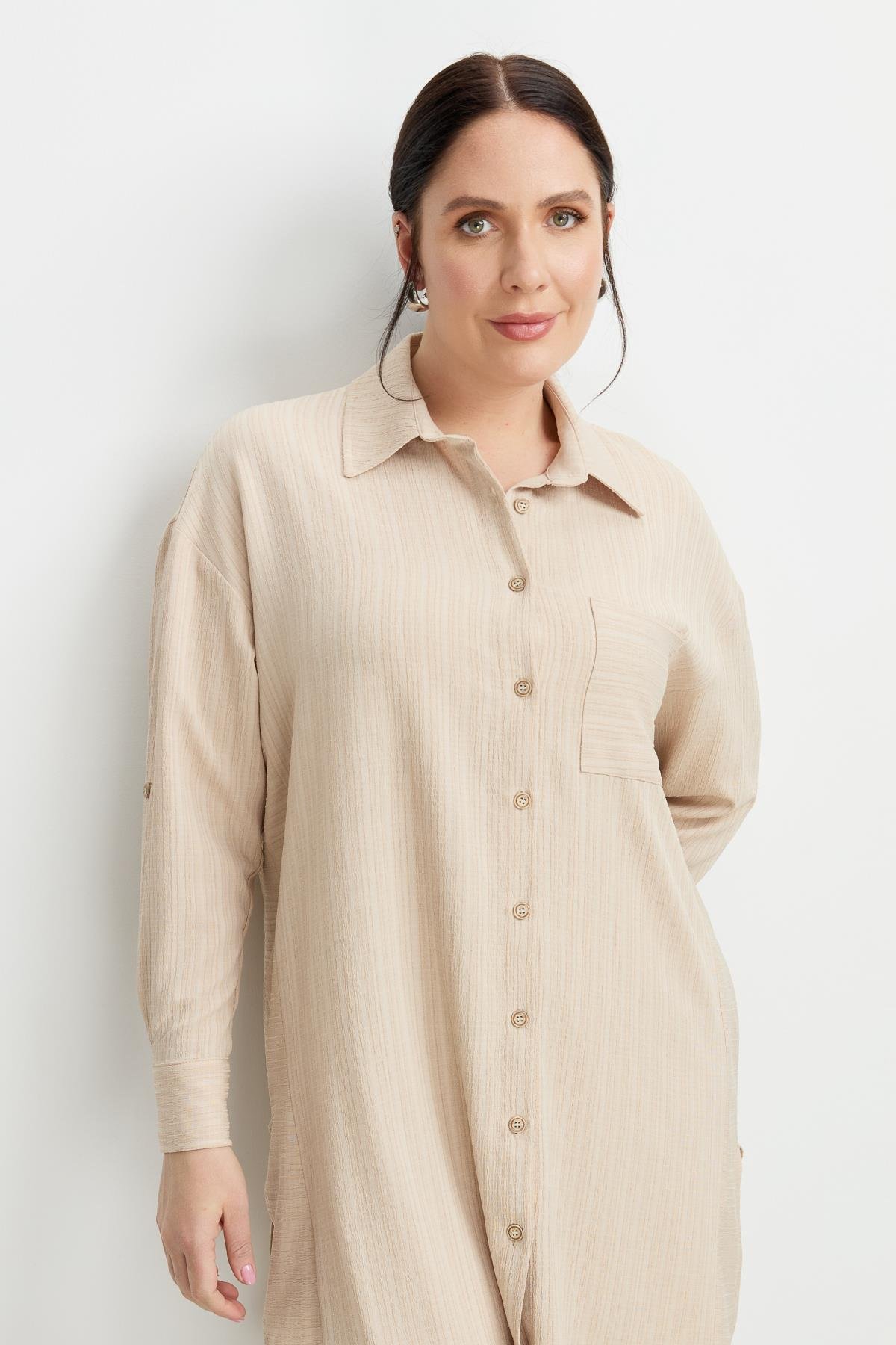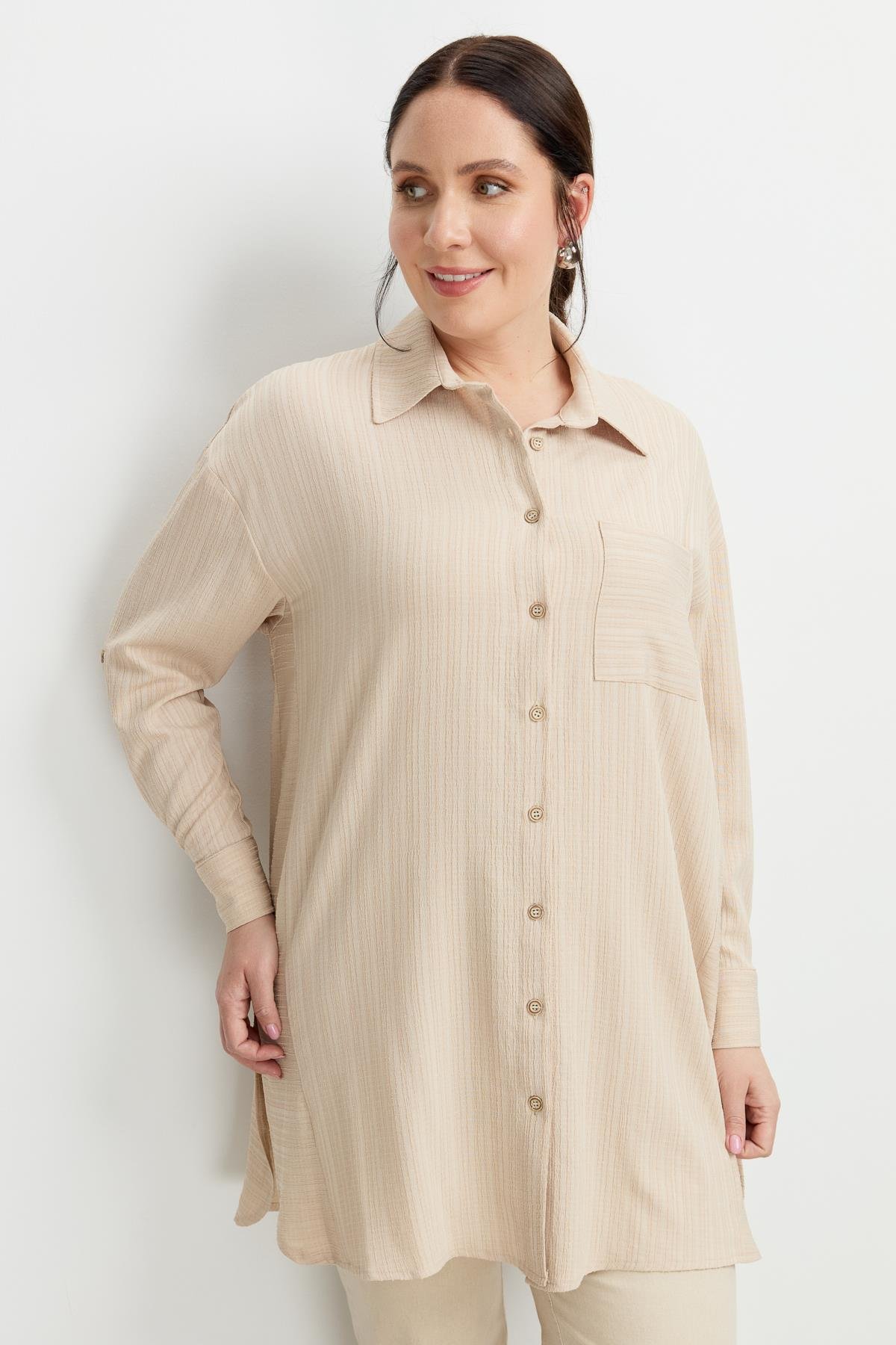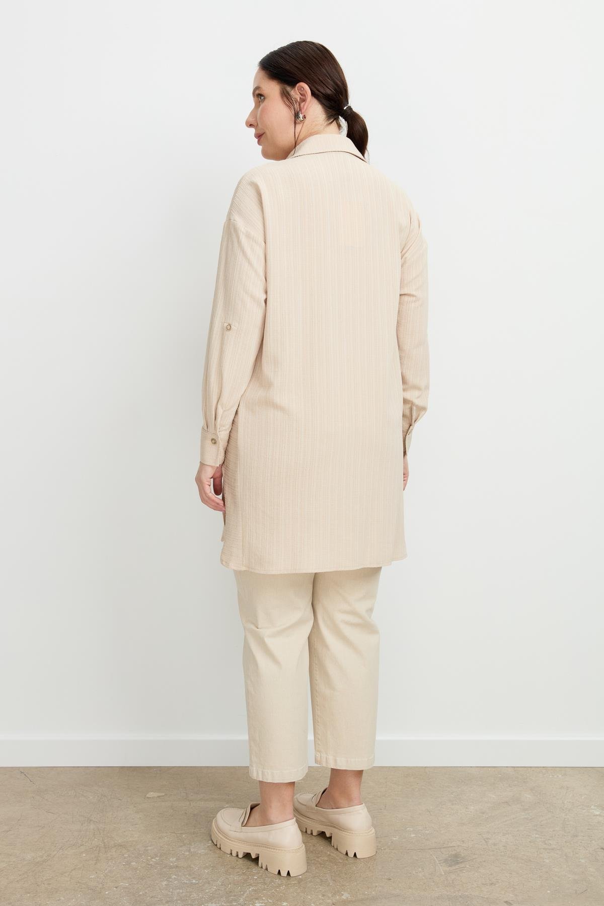 Büyük Beden Dokulu Tunik Gömlek-BEJ (4SZD81B1209_14)