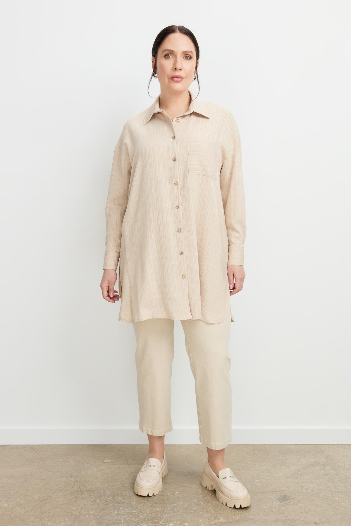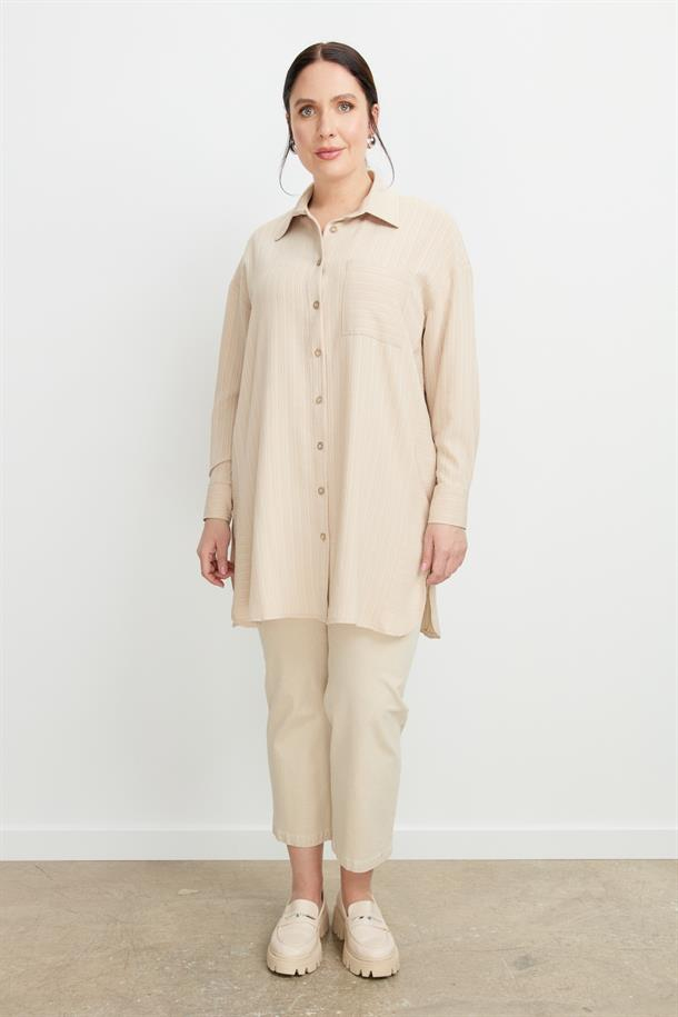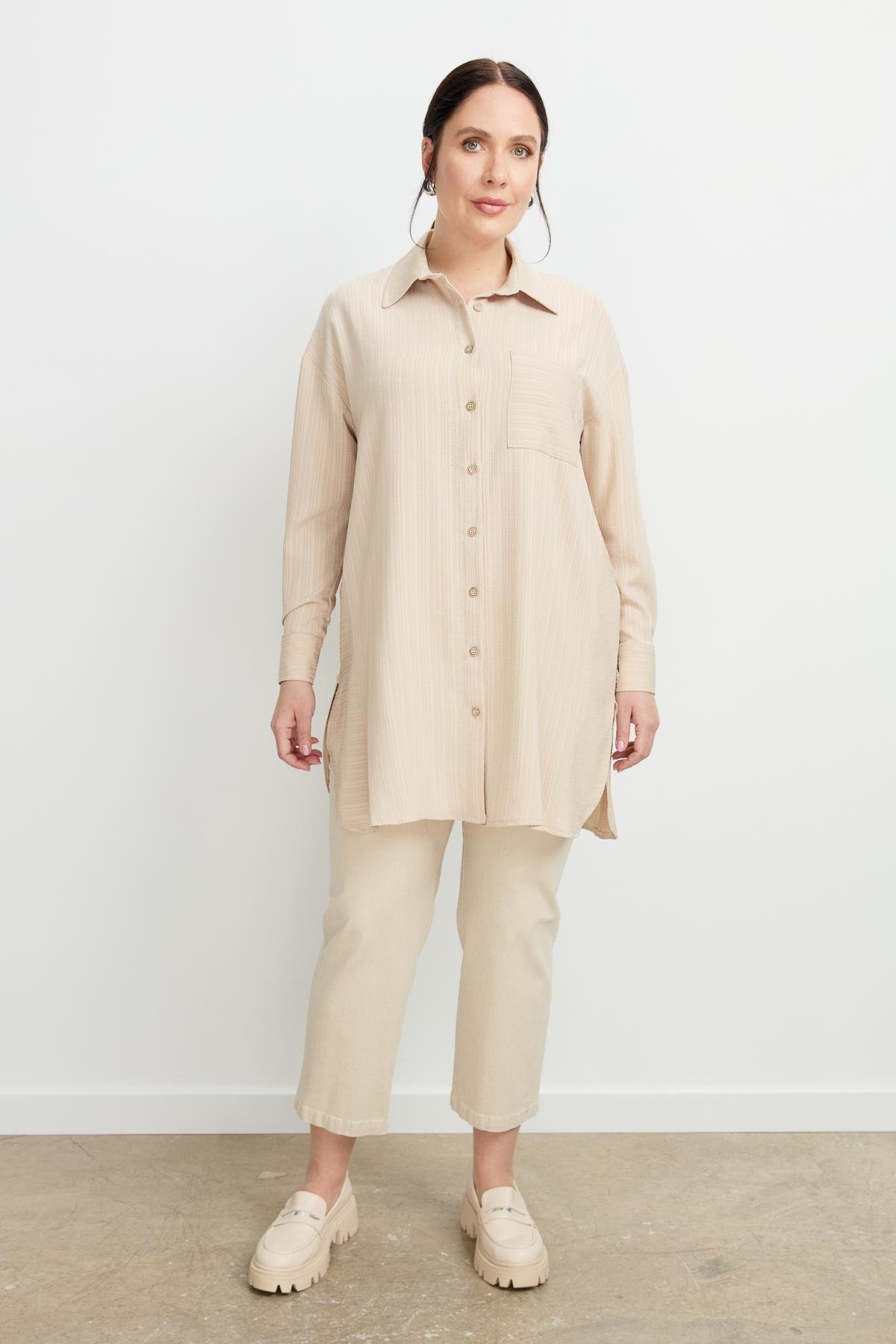 Büyük Beden Dokulu Tunik Gömlek-BEJ