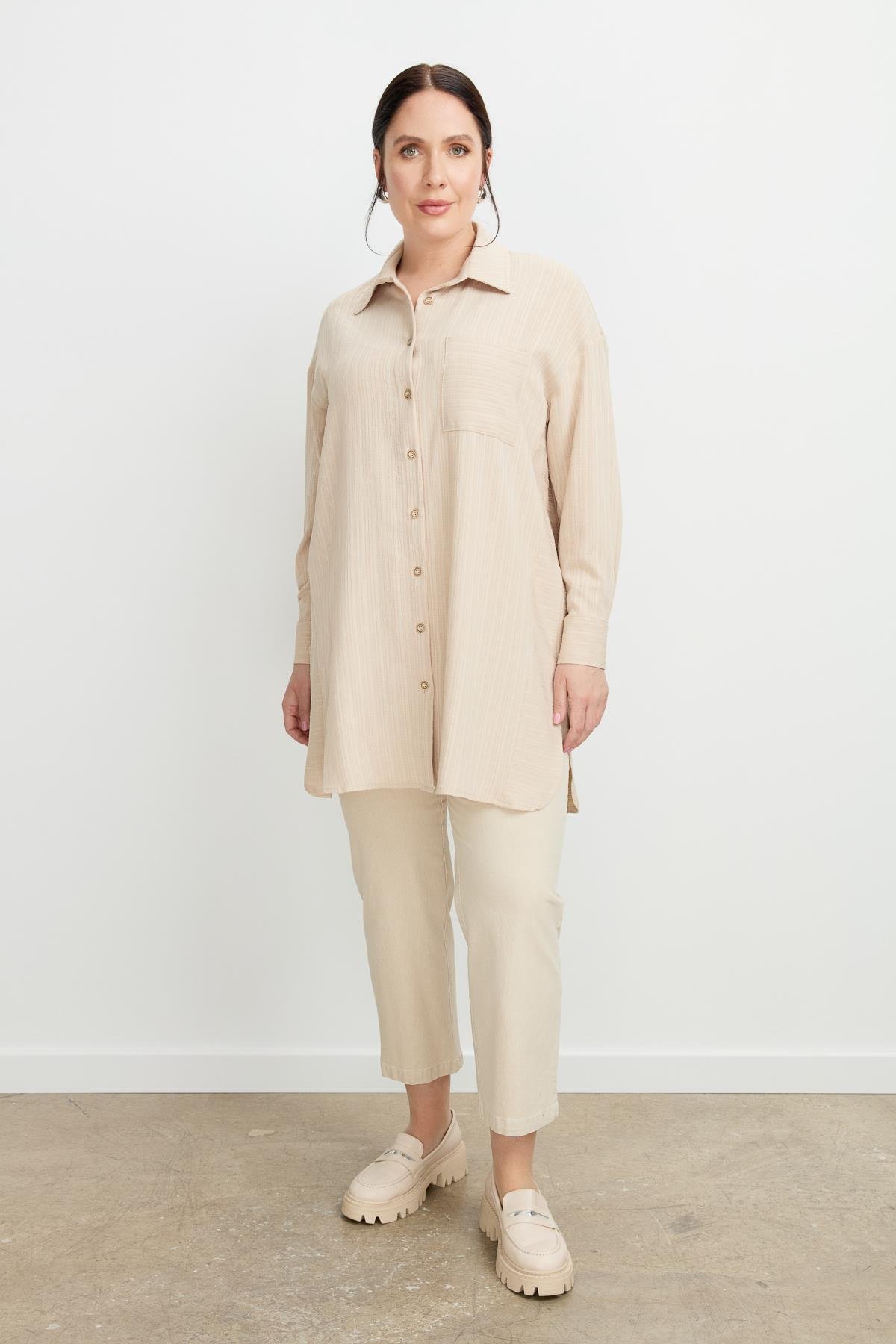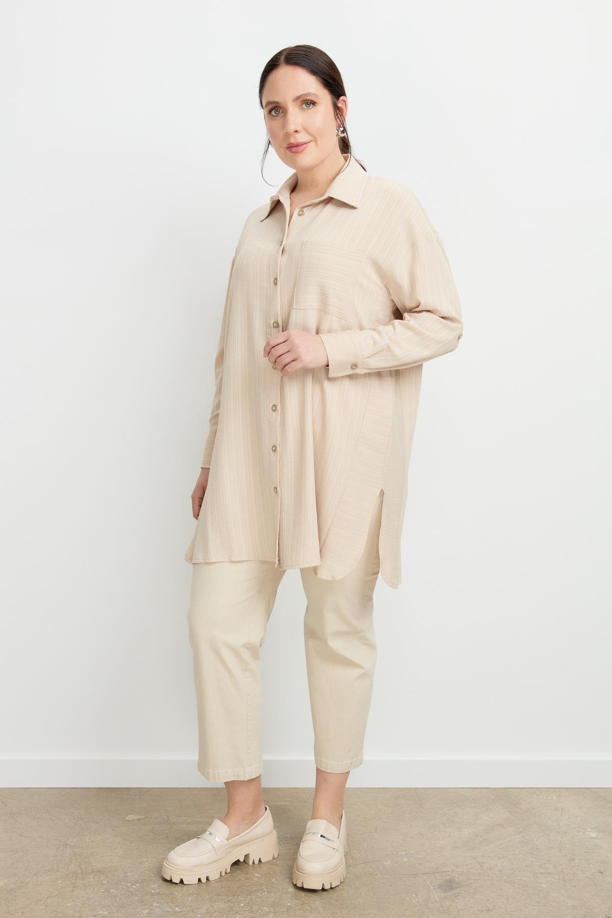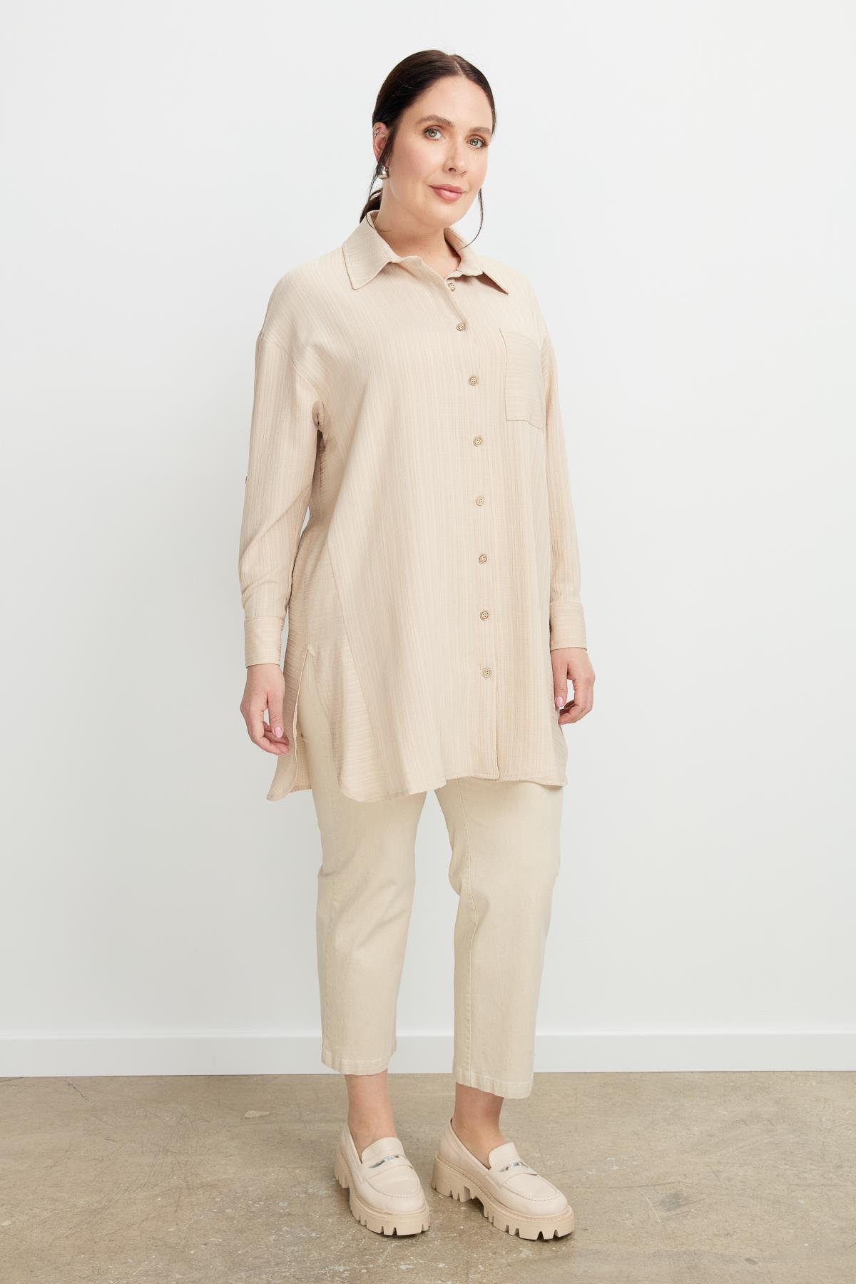Büyük Beden Dokulu Tunik Gömlek-BEJ