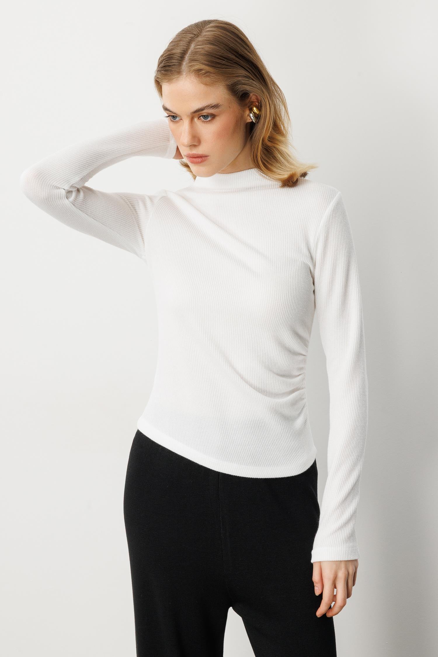 Büzgü Detaylı Yarım Balıkçı Bluz-KEMIK (5WKB81K1991_41)