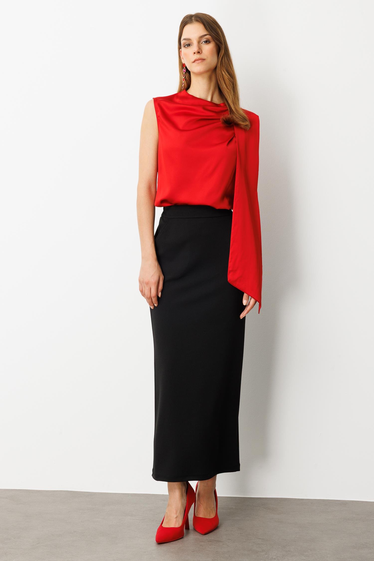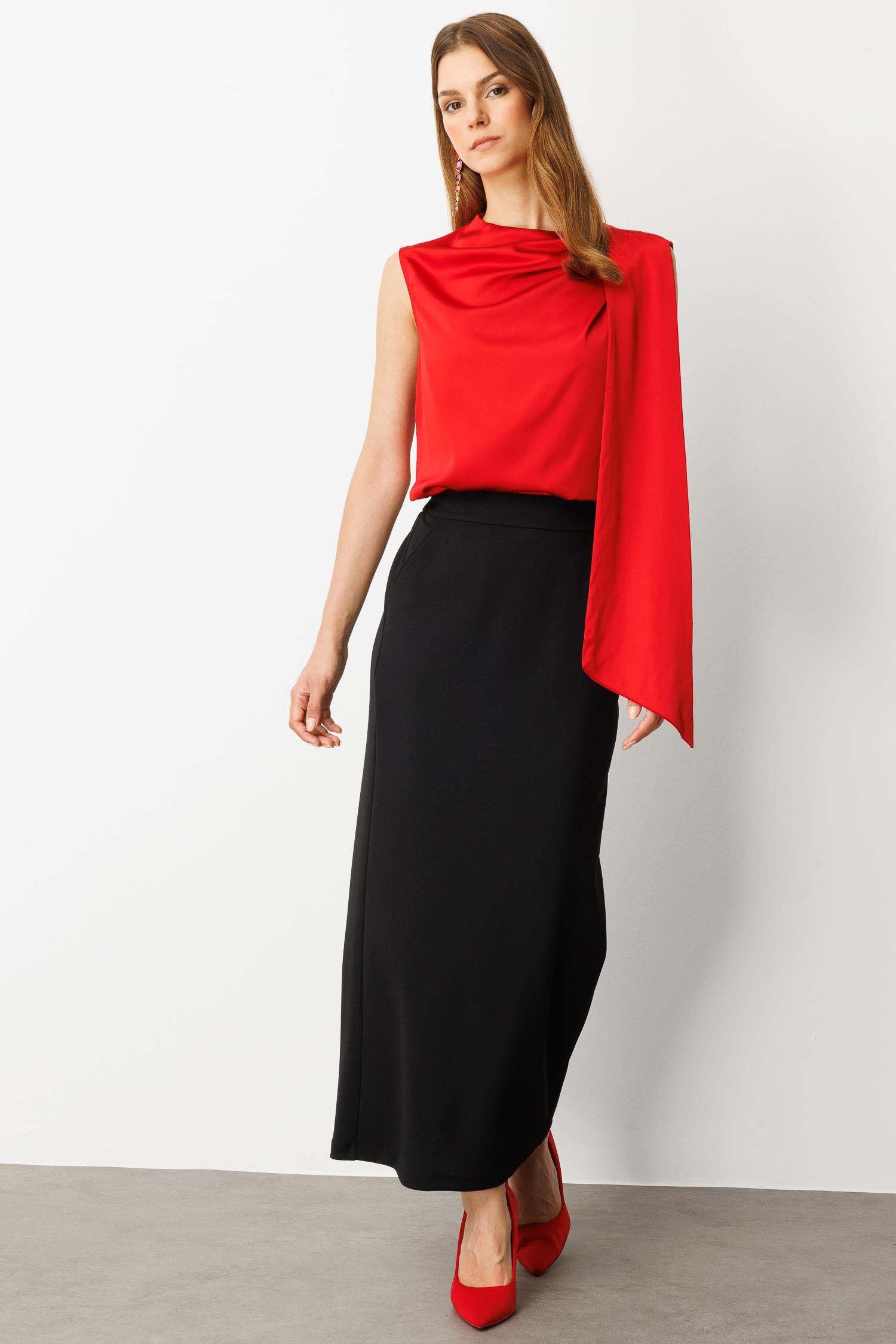 Cep Detay Lastikli Krep Etek-SİYAH (5WKB31K1637_01)