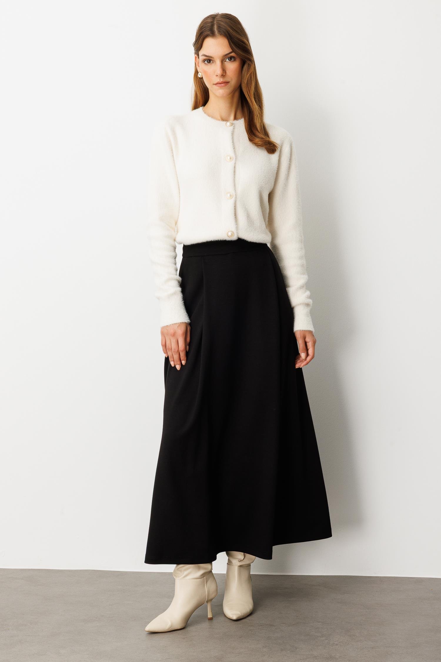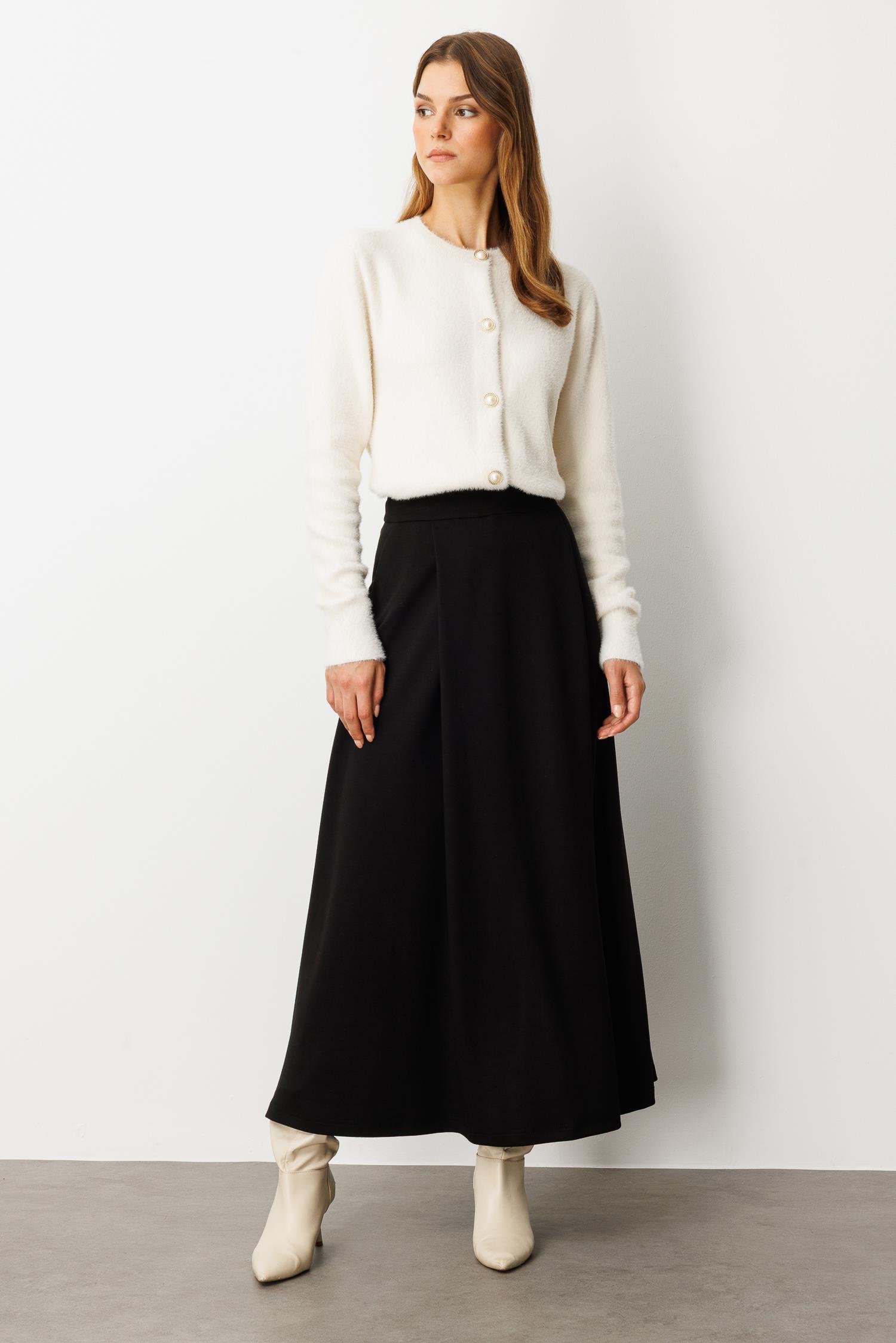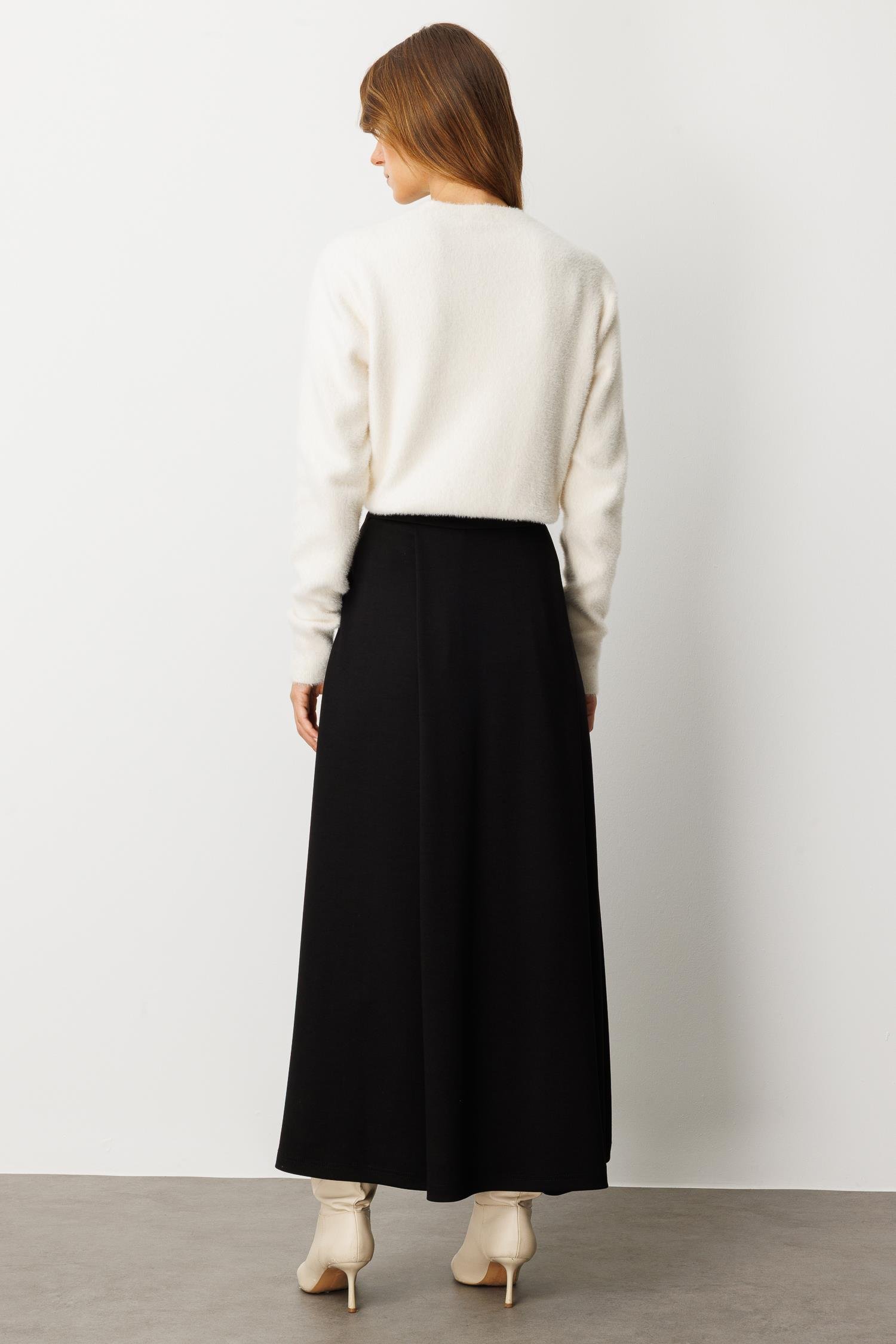 Cep Detaylı Uzun Modal Etek-SİYAH (5WKB31K1640_01)