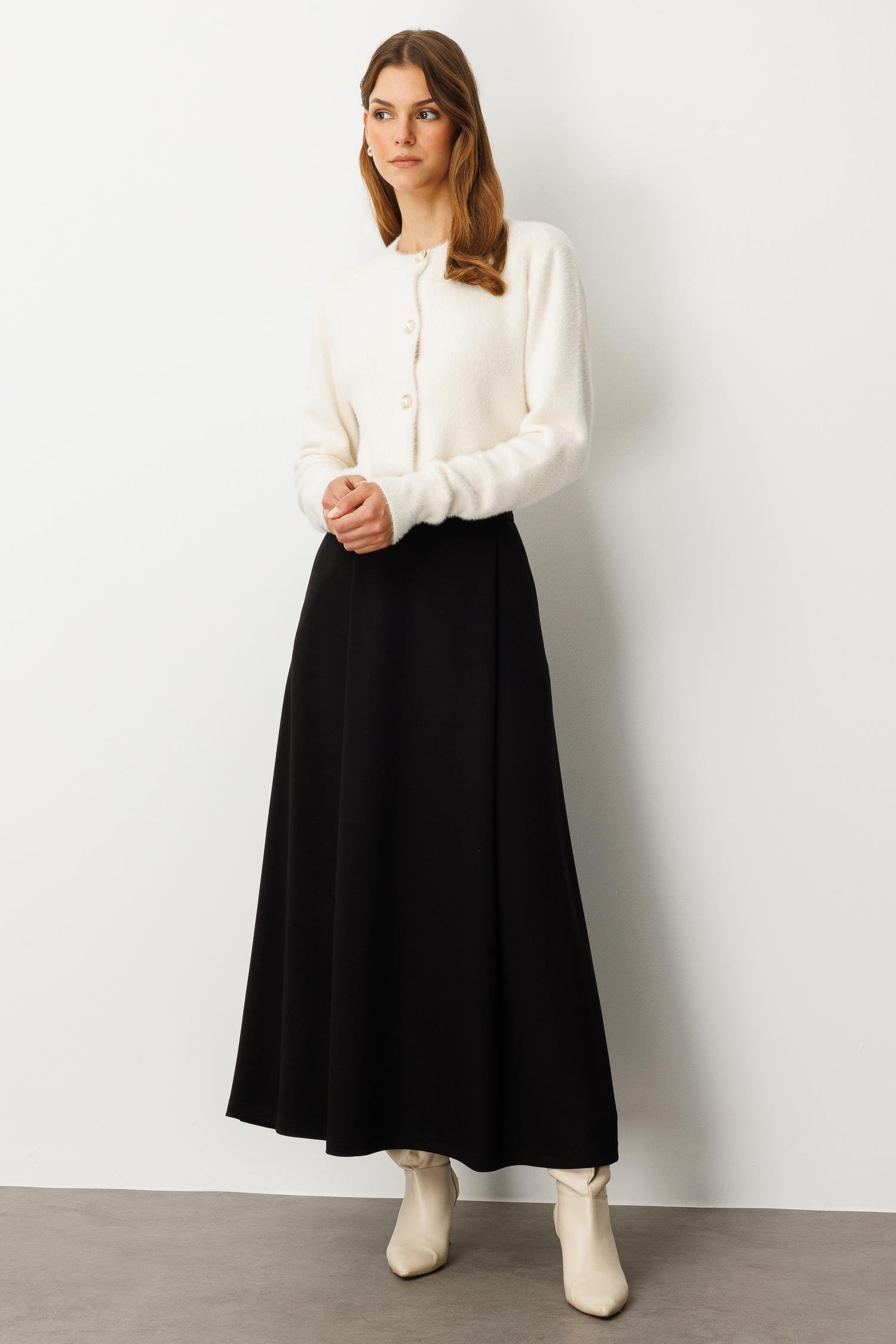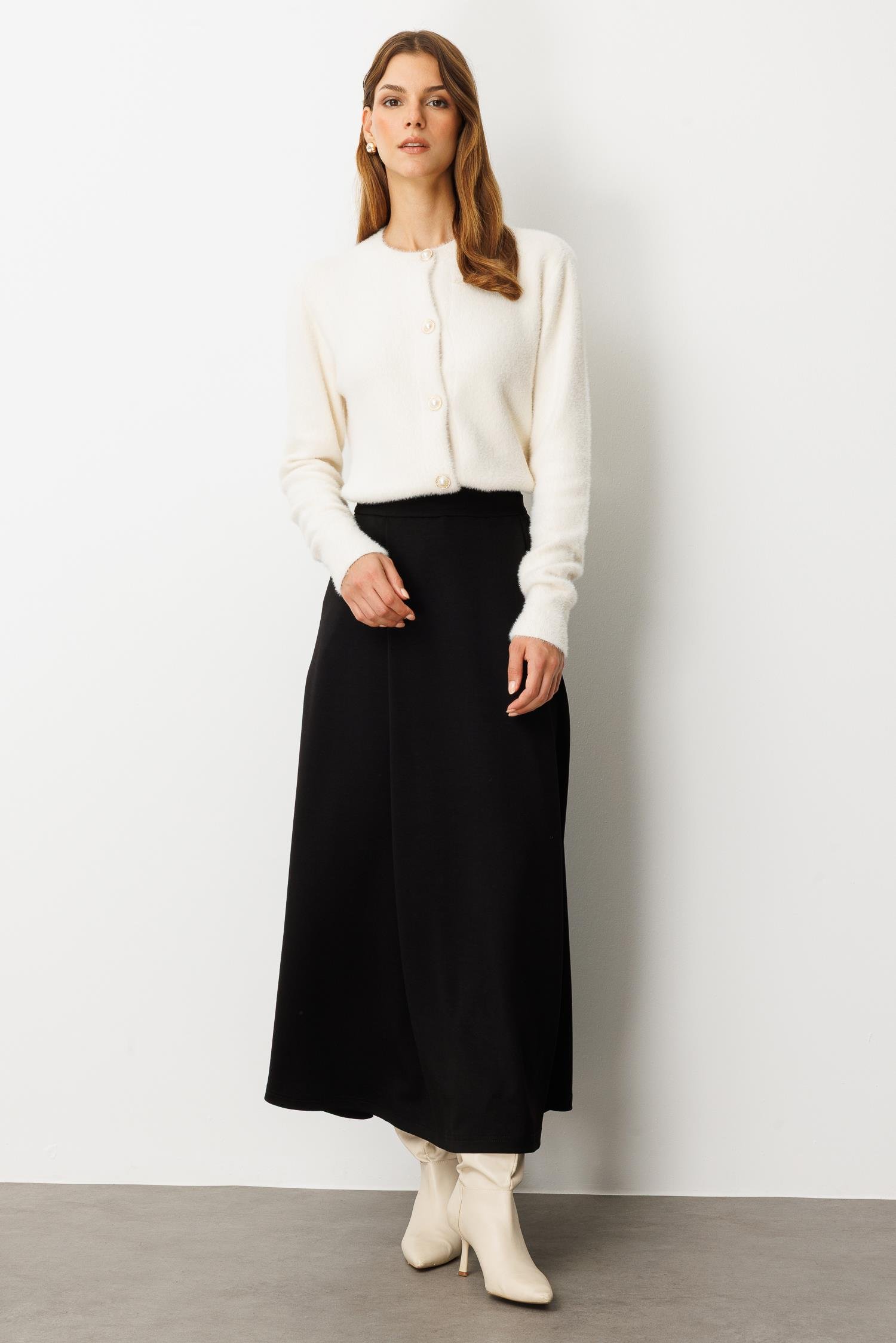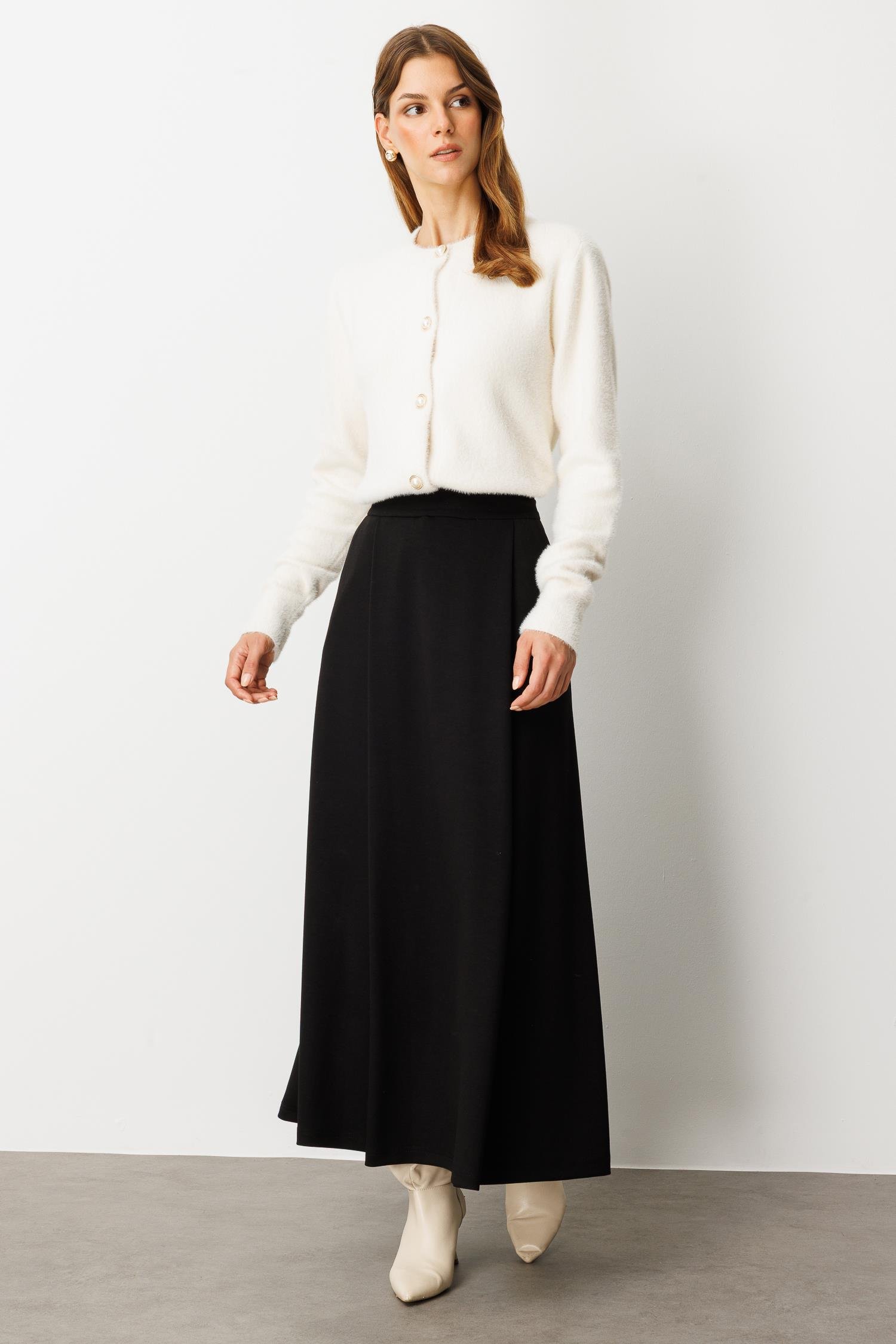 Cep Detaylı Uzun Modal Etek-SİYAH (5WKB31K1640_01)