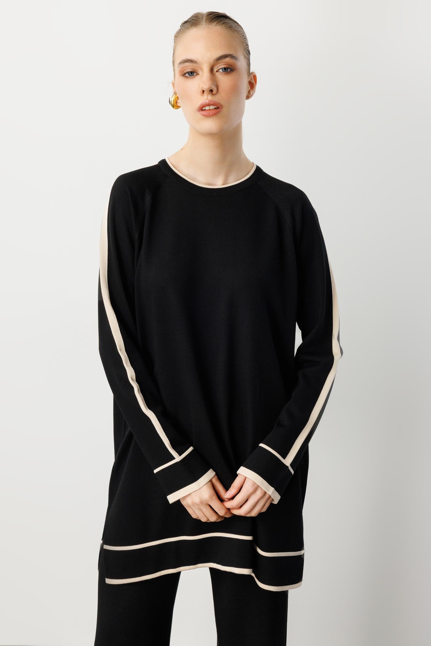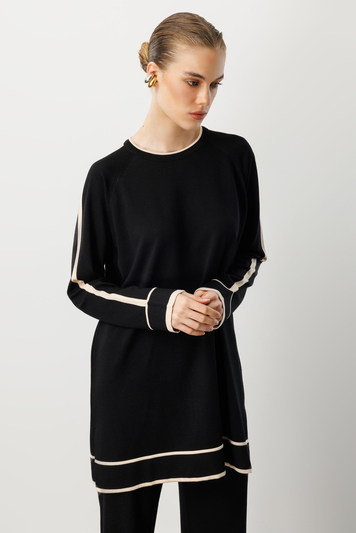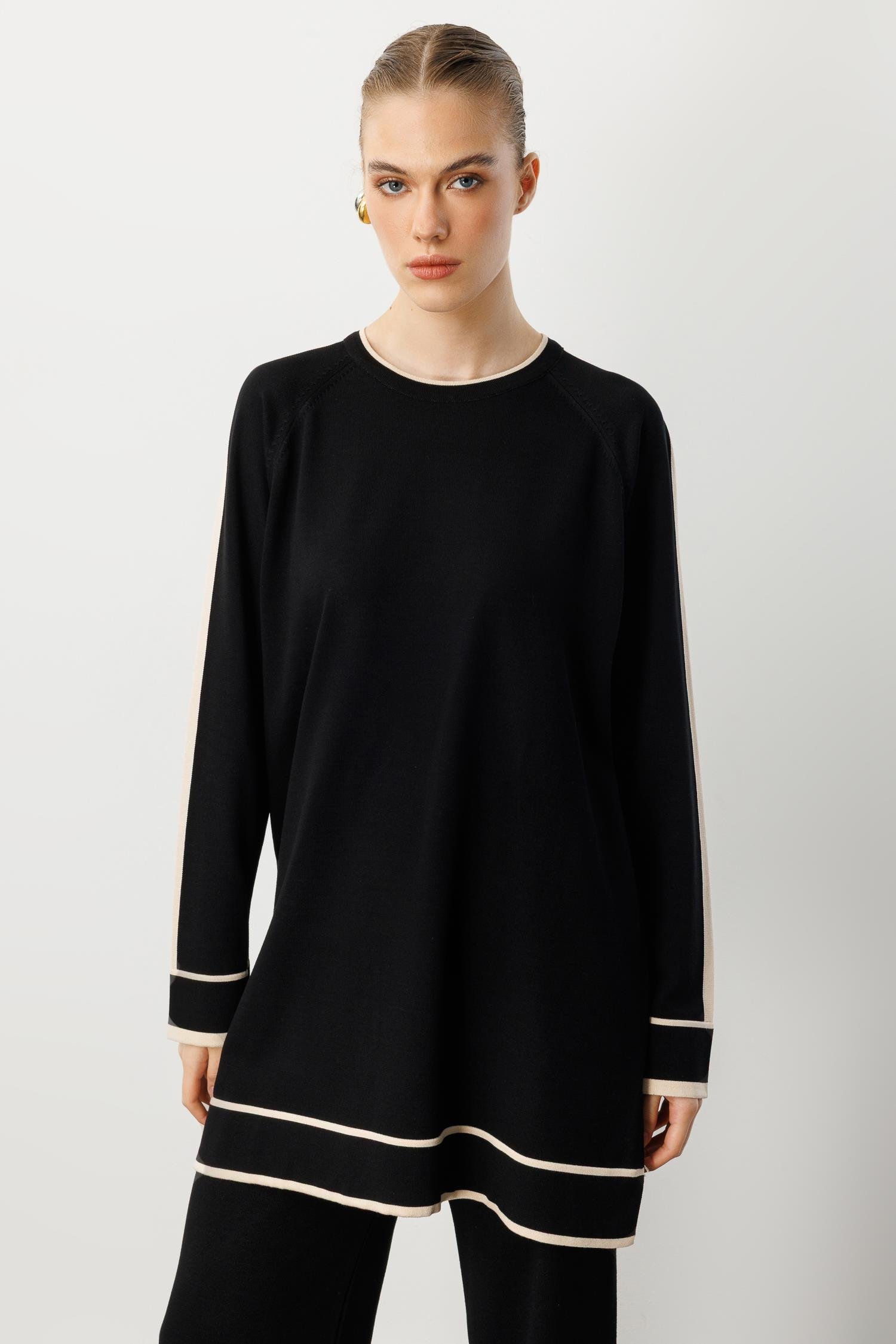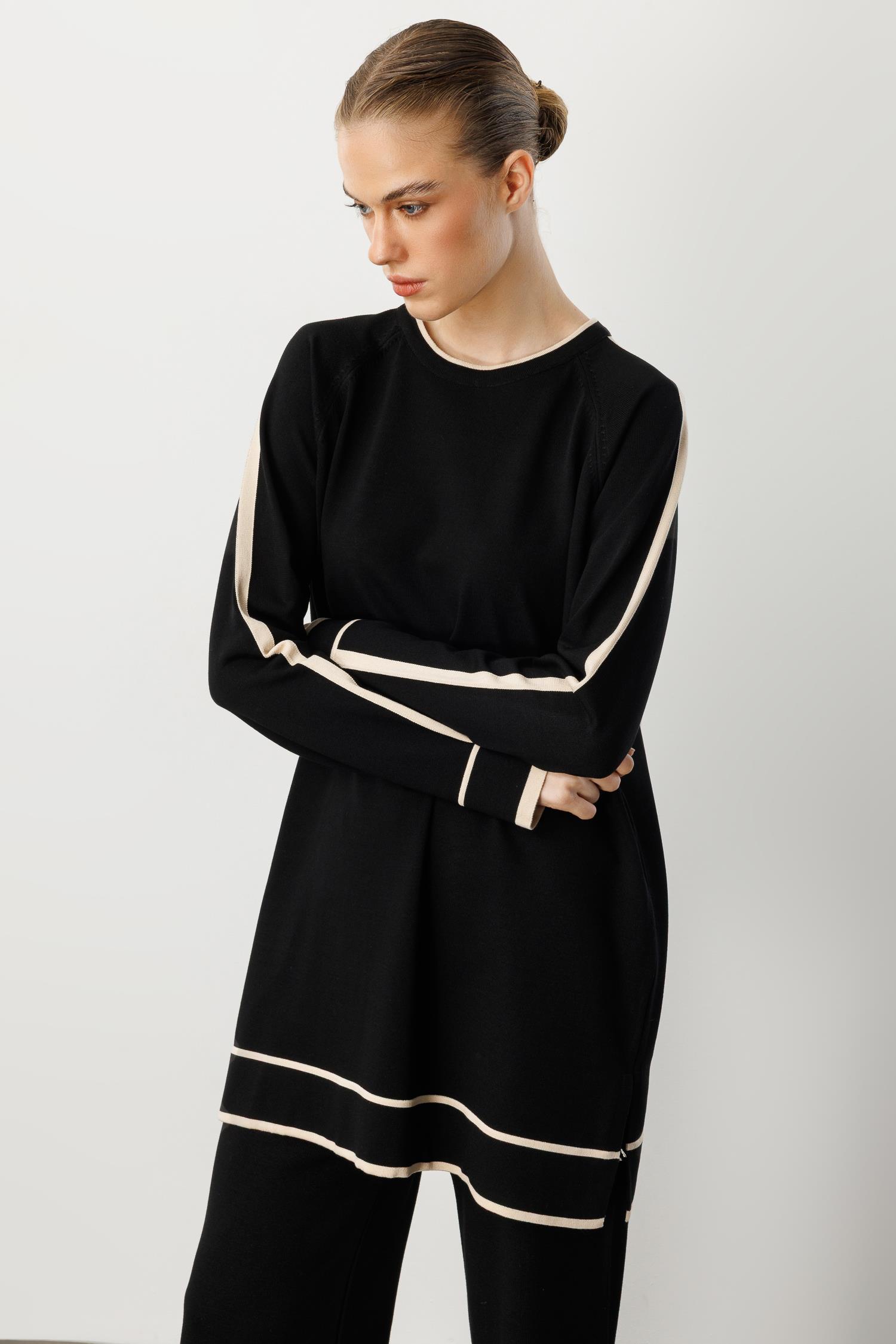 Çizgi Detaylı Triko Takım-SİYAH (5WERN006430_01)