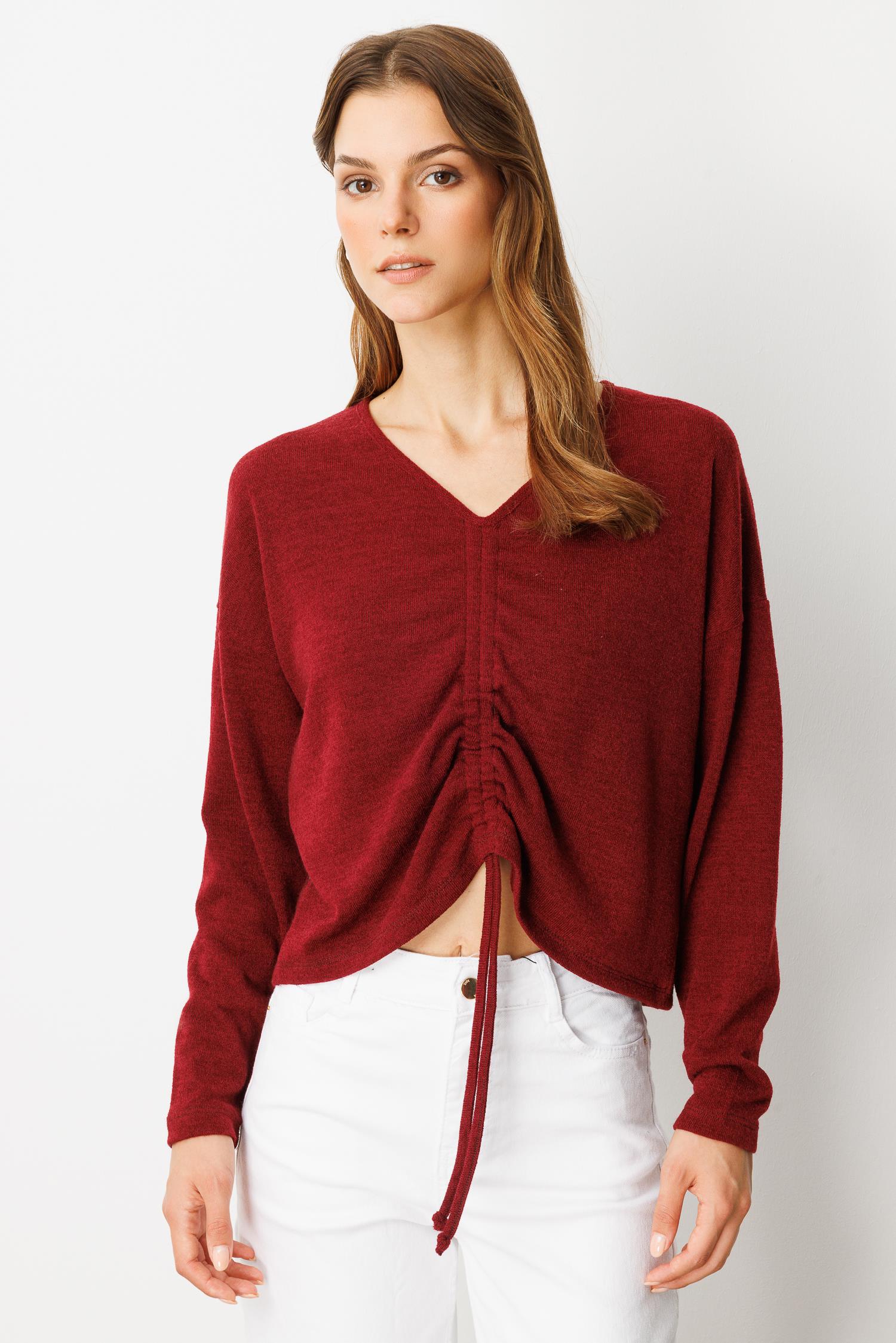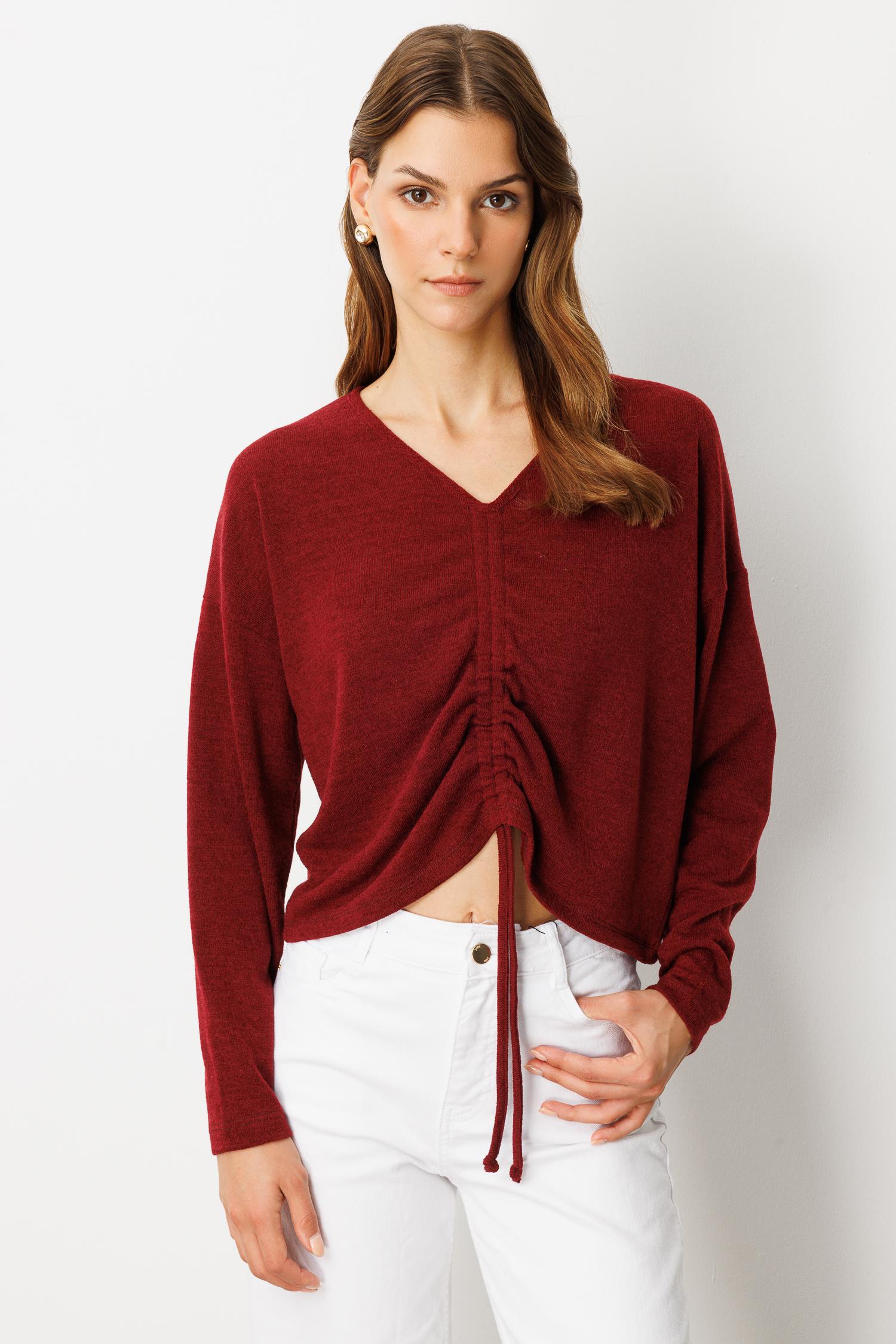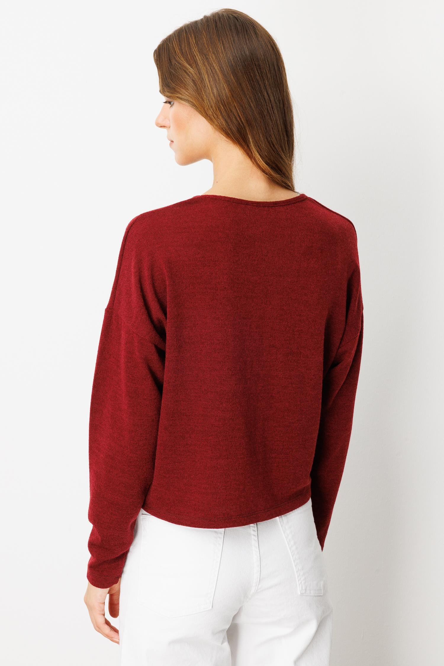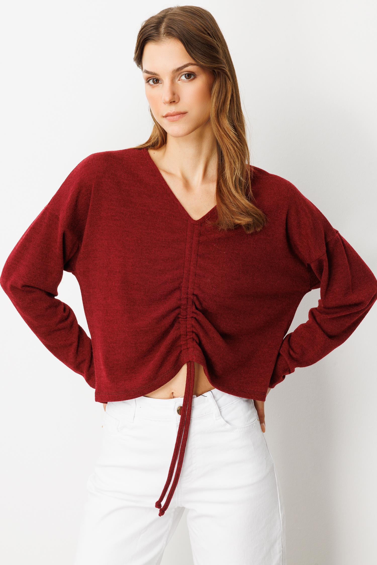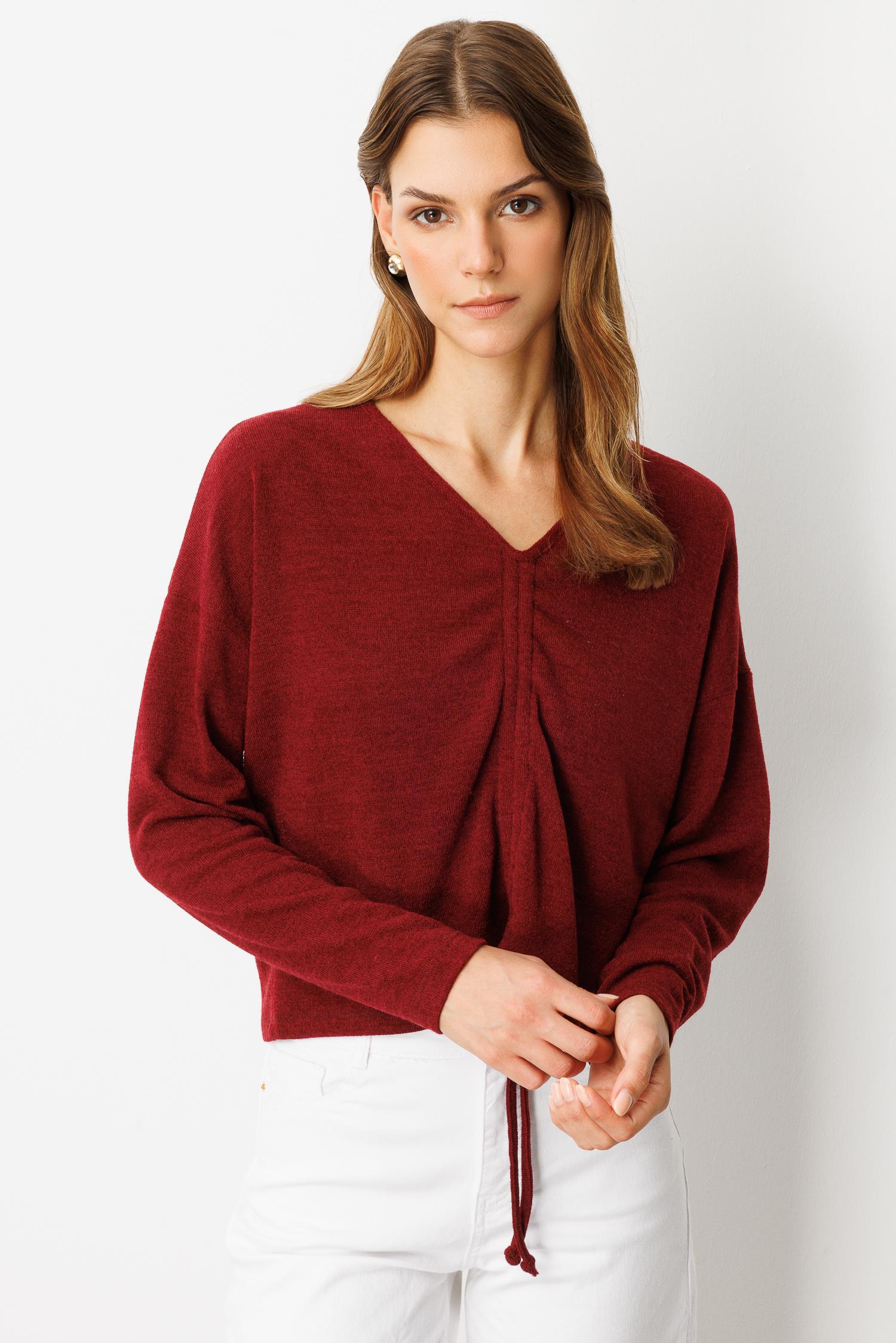 Drapeli V Yaka Dokuma Bluz-BORDO (5WKB81K1974_30)