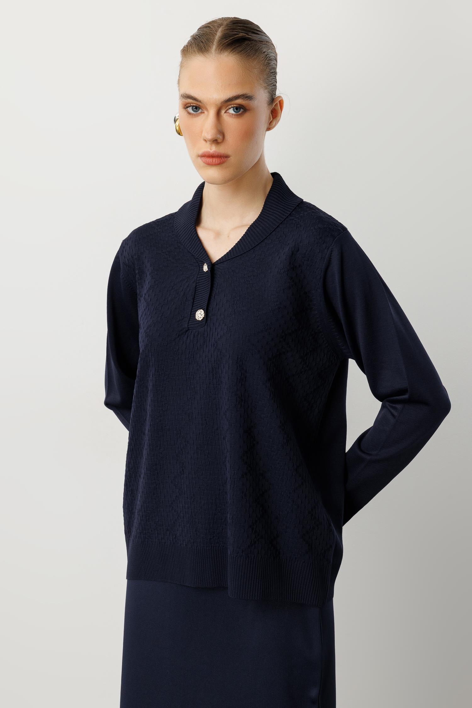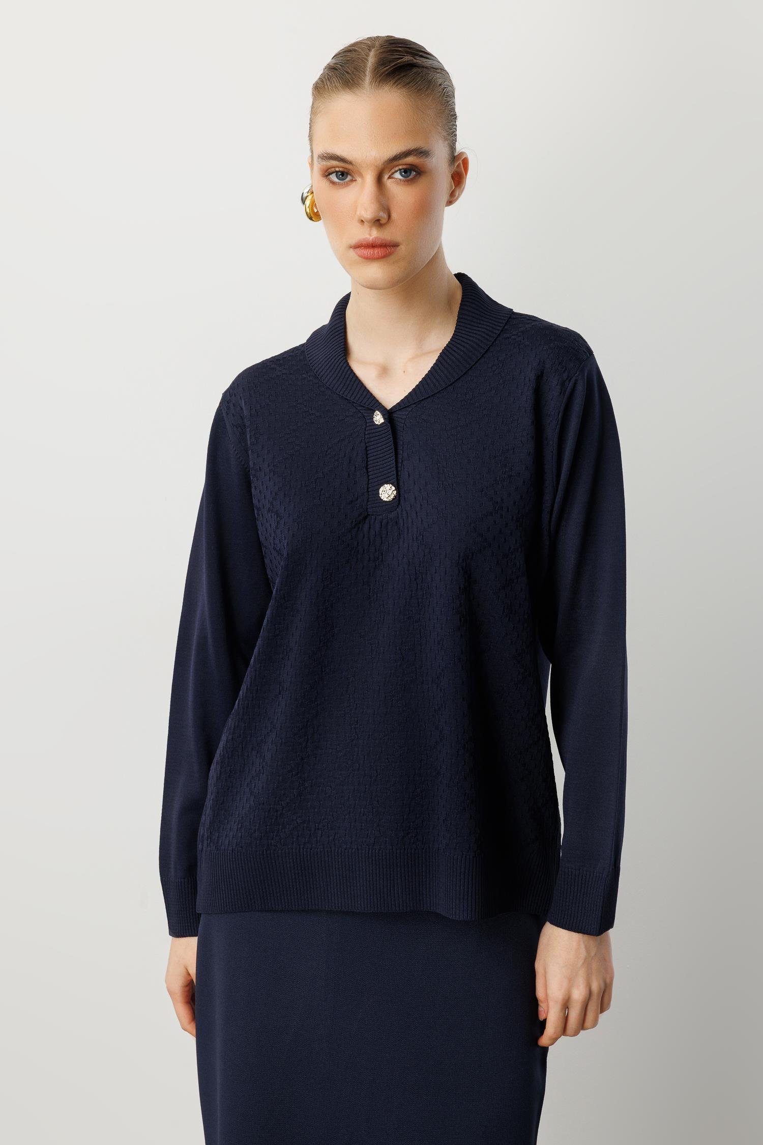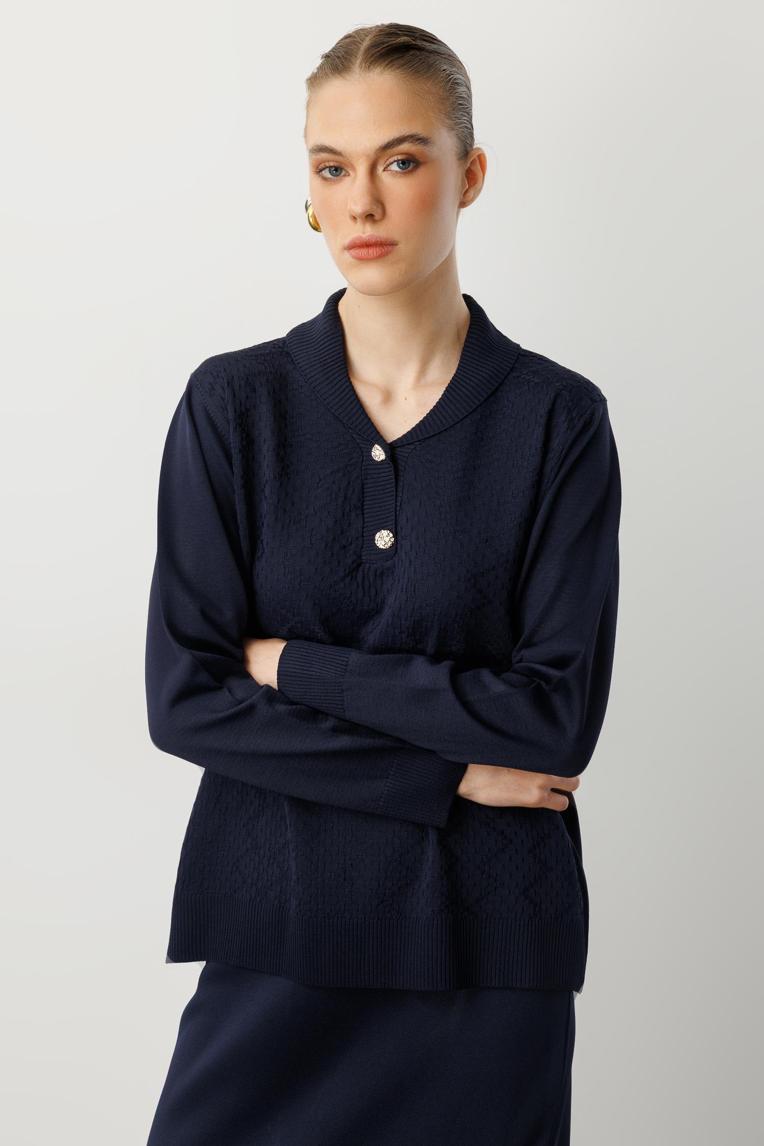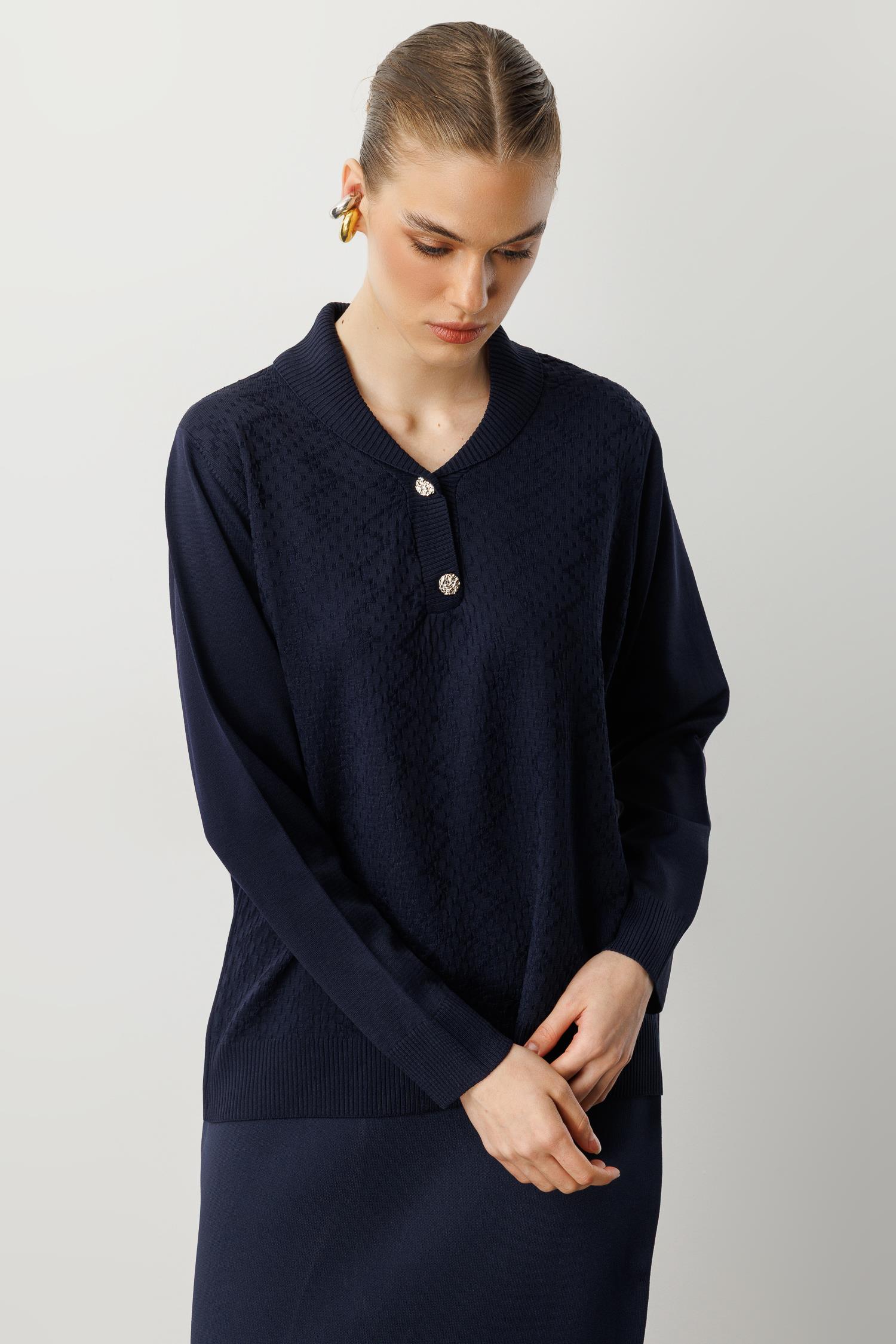 Düğme Detay Desenli Triko Kazak-LACI (5WT00035386_18)