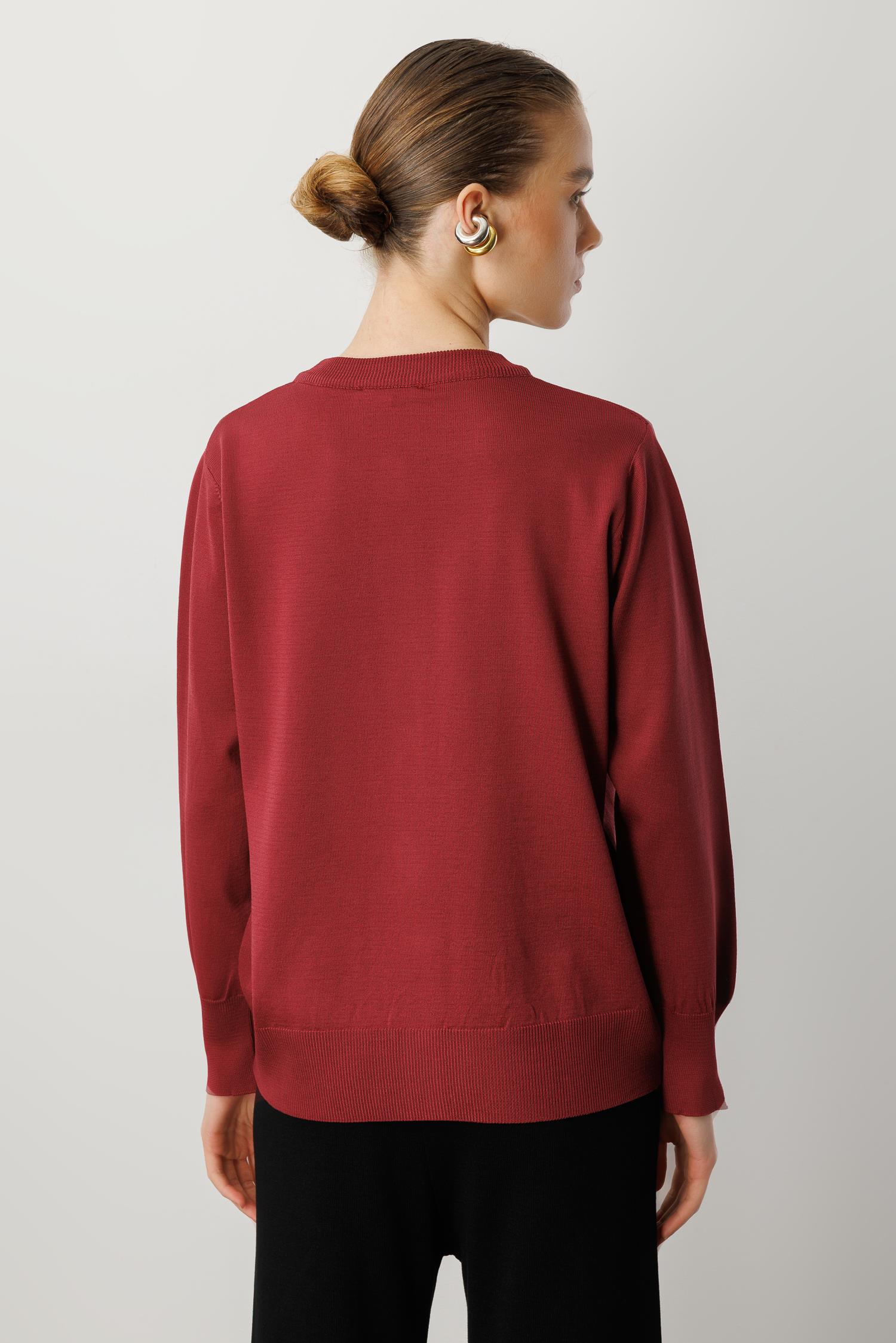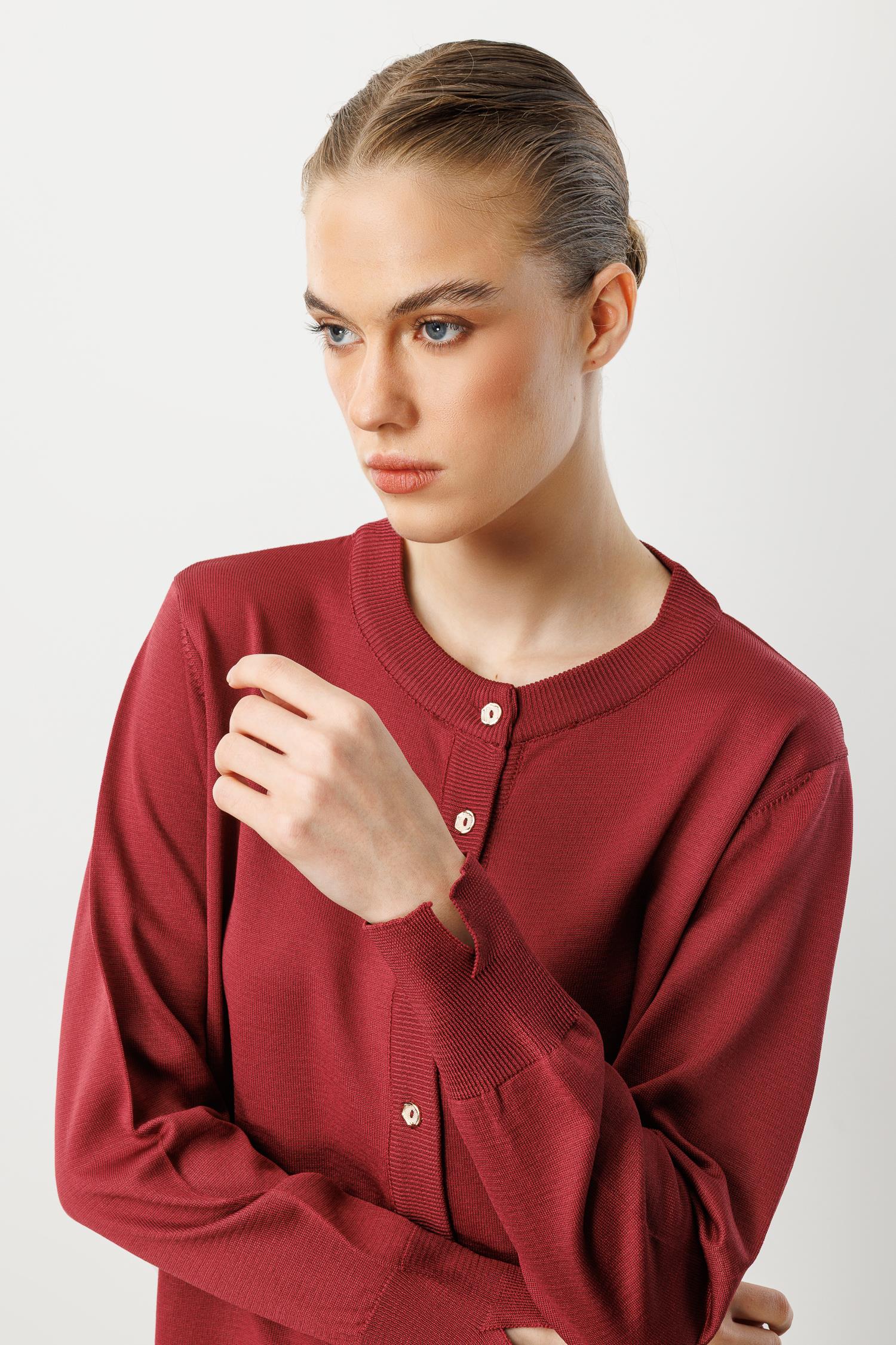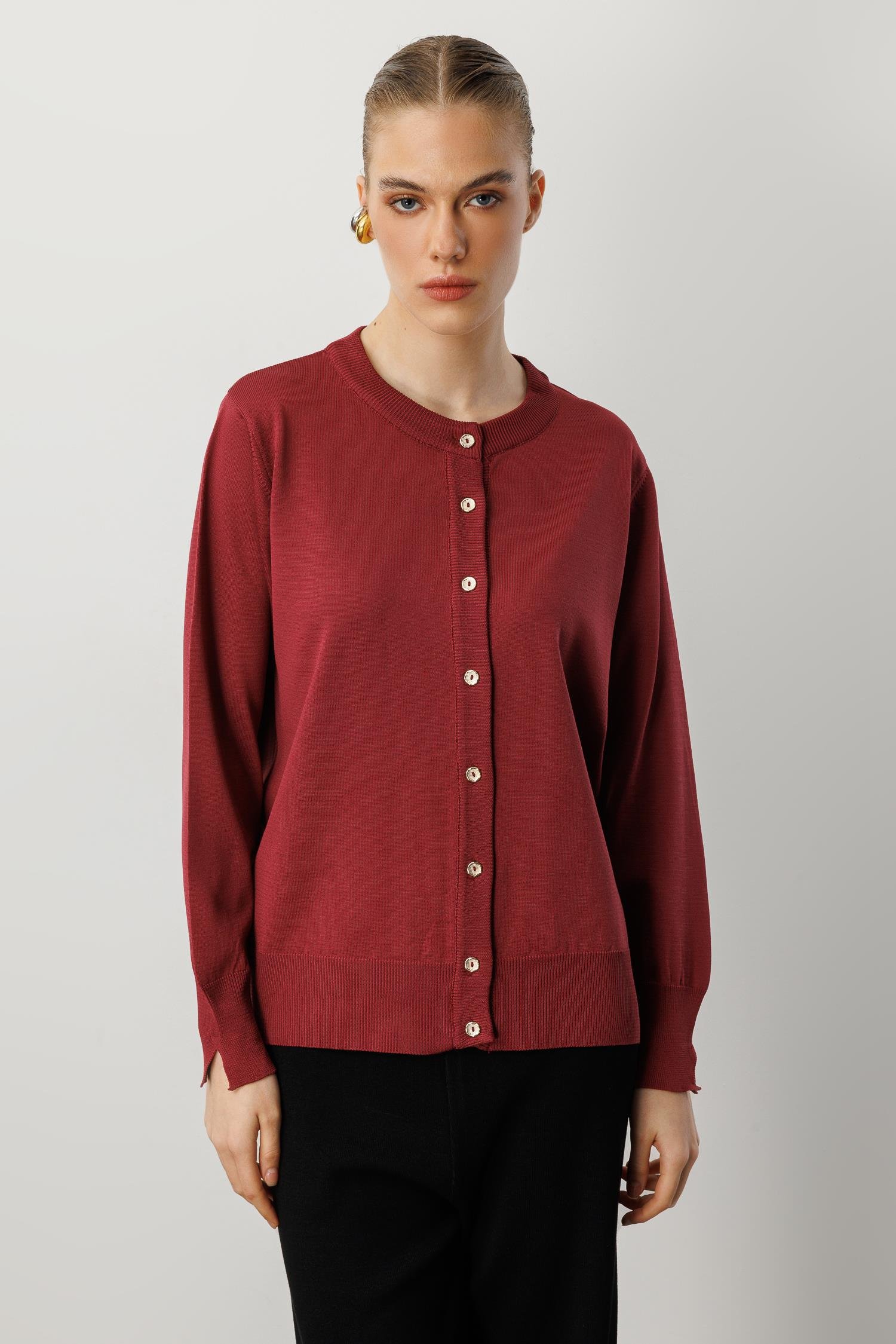 Düğmeli Basic Triko Hırka-BORDO (5WT00035317_30)