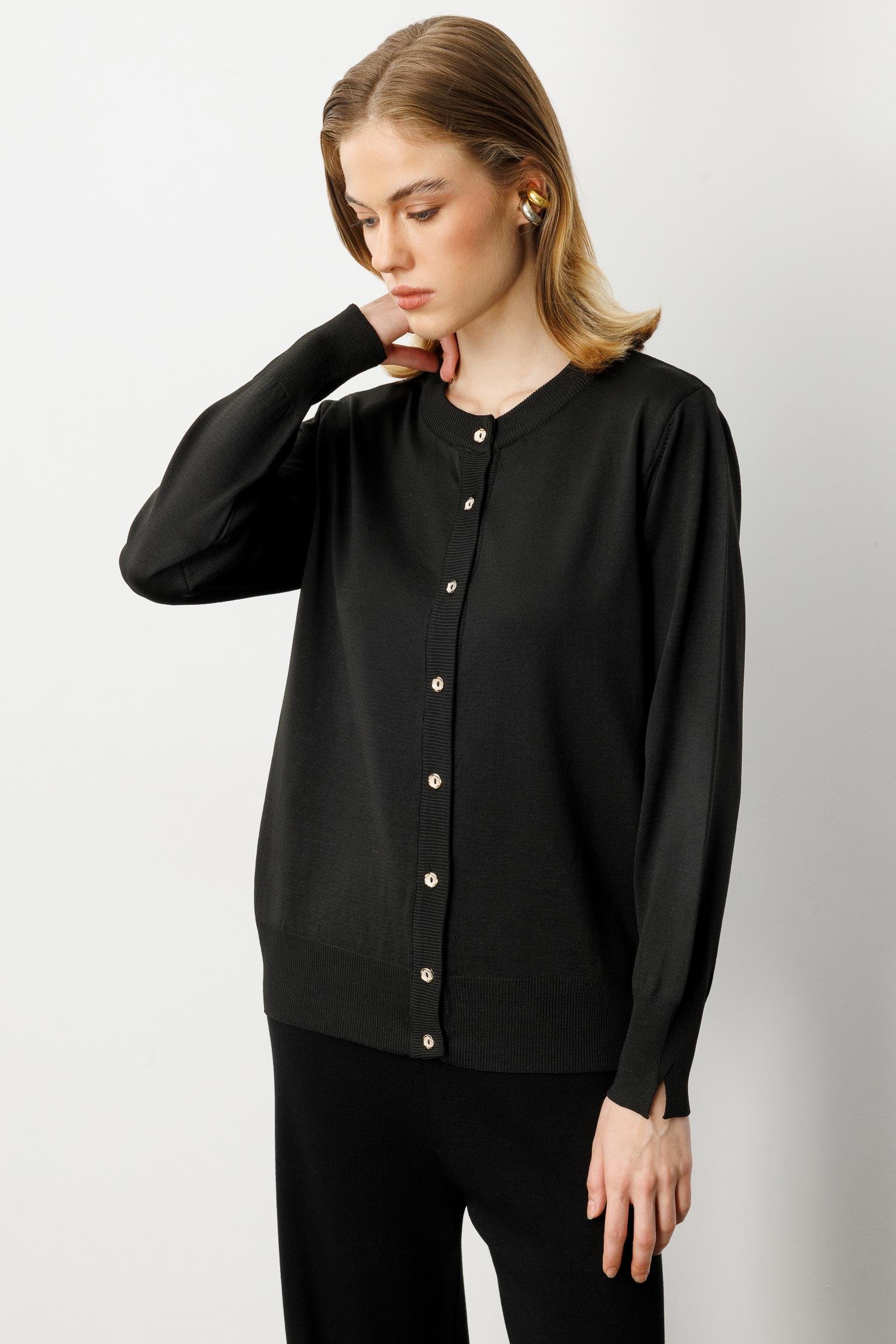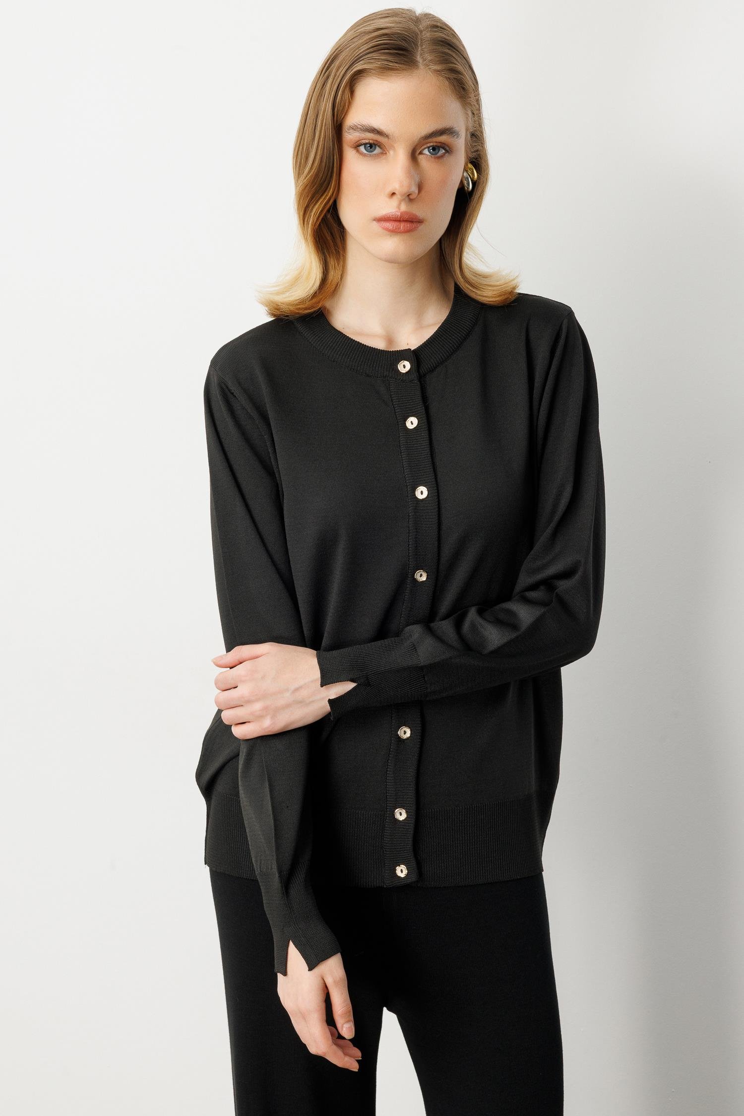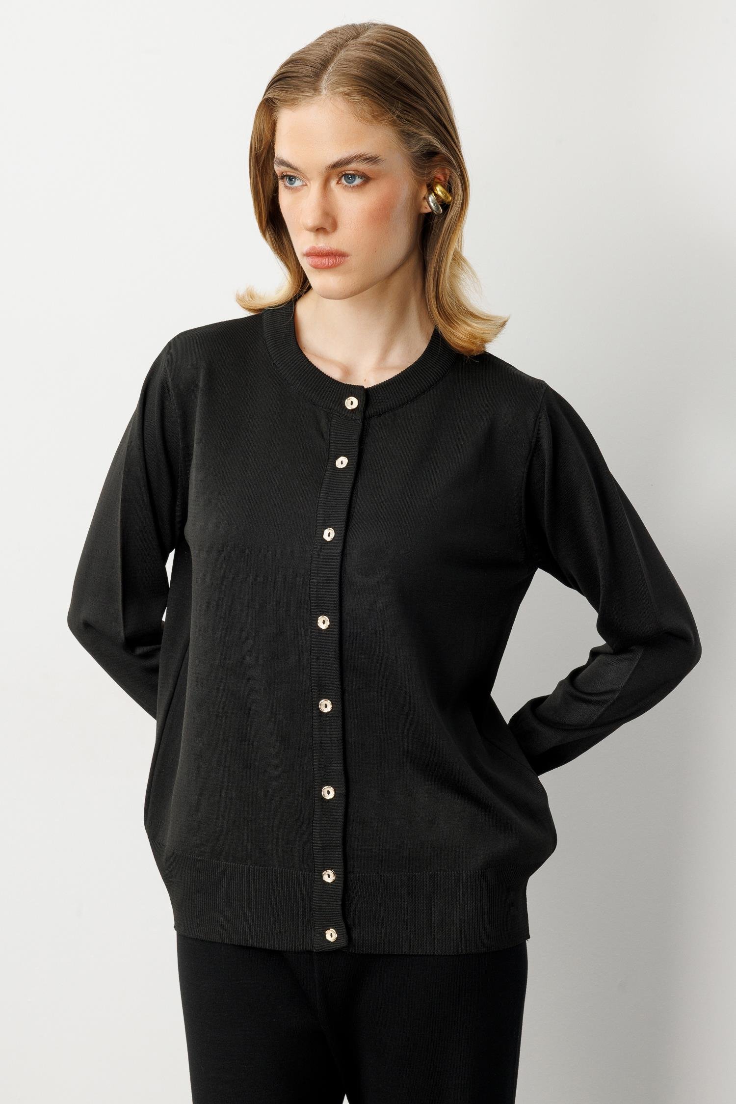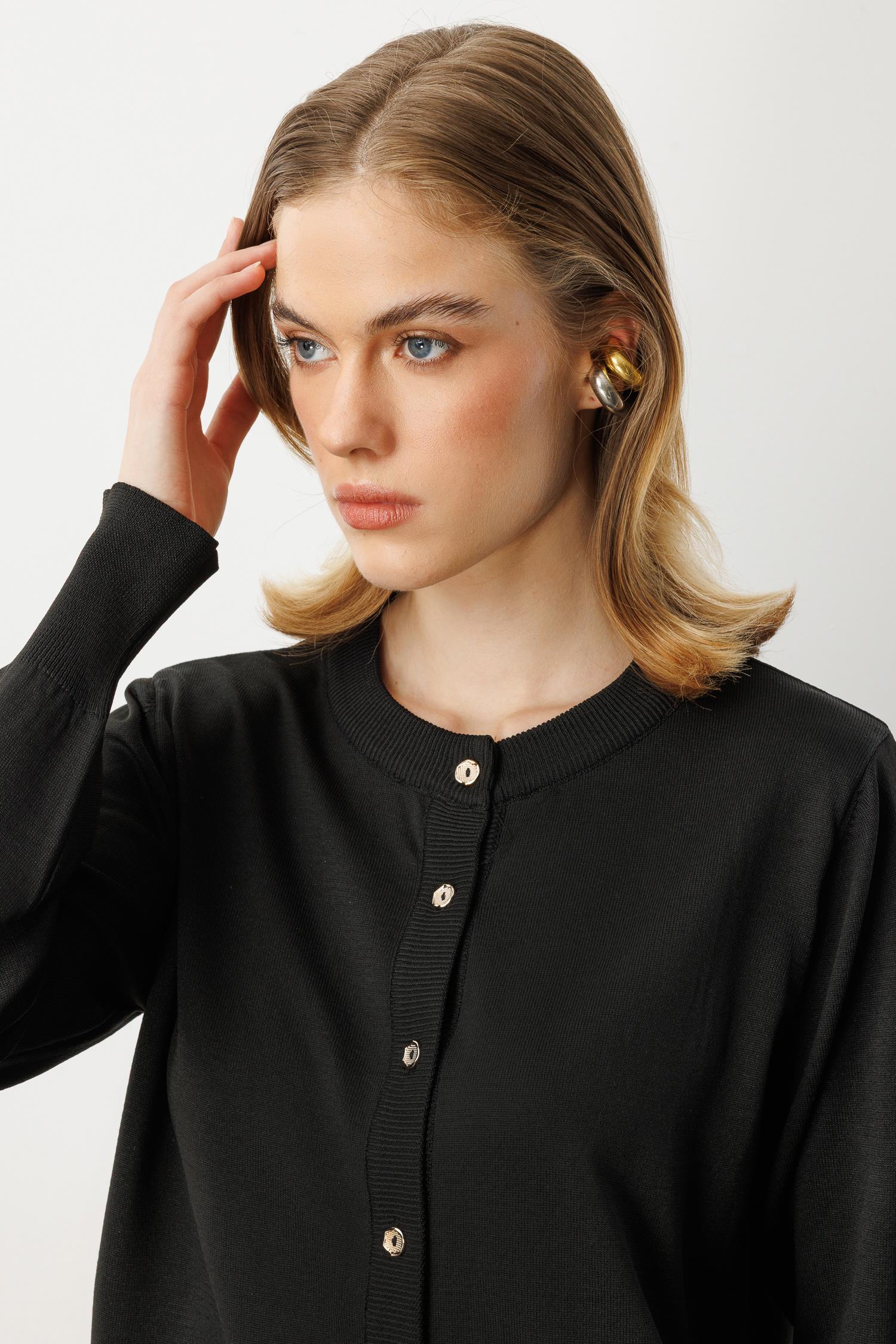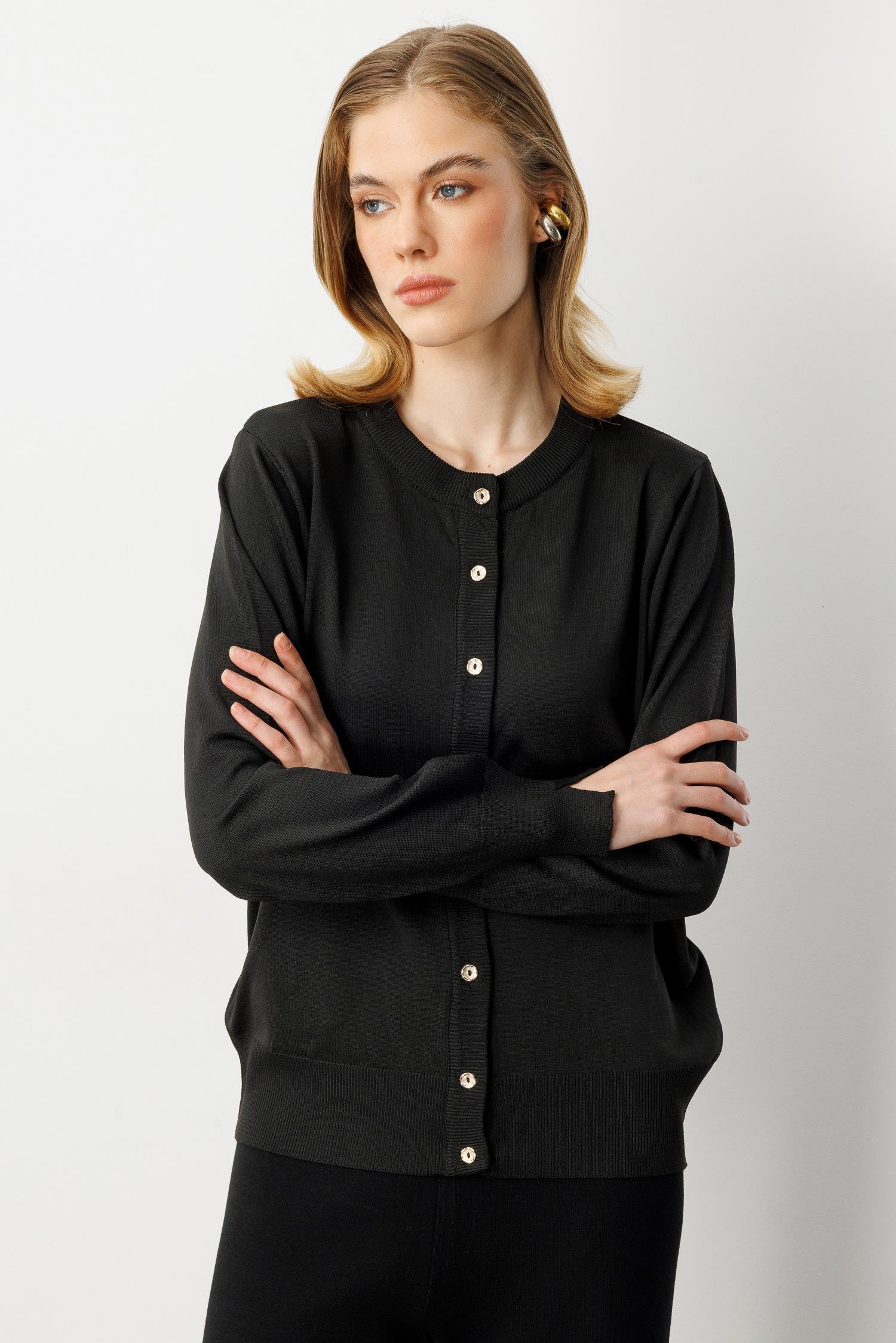 Düğmeli Basic Triko Hırka-SİYAH (5WT00035317_01)