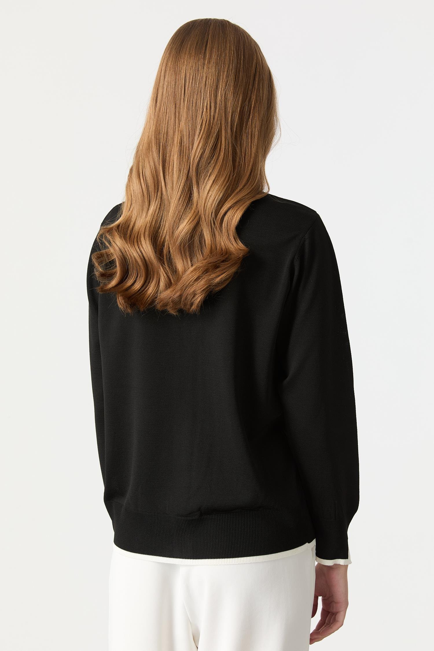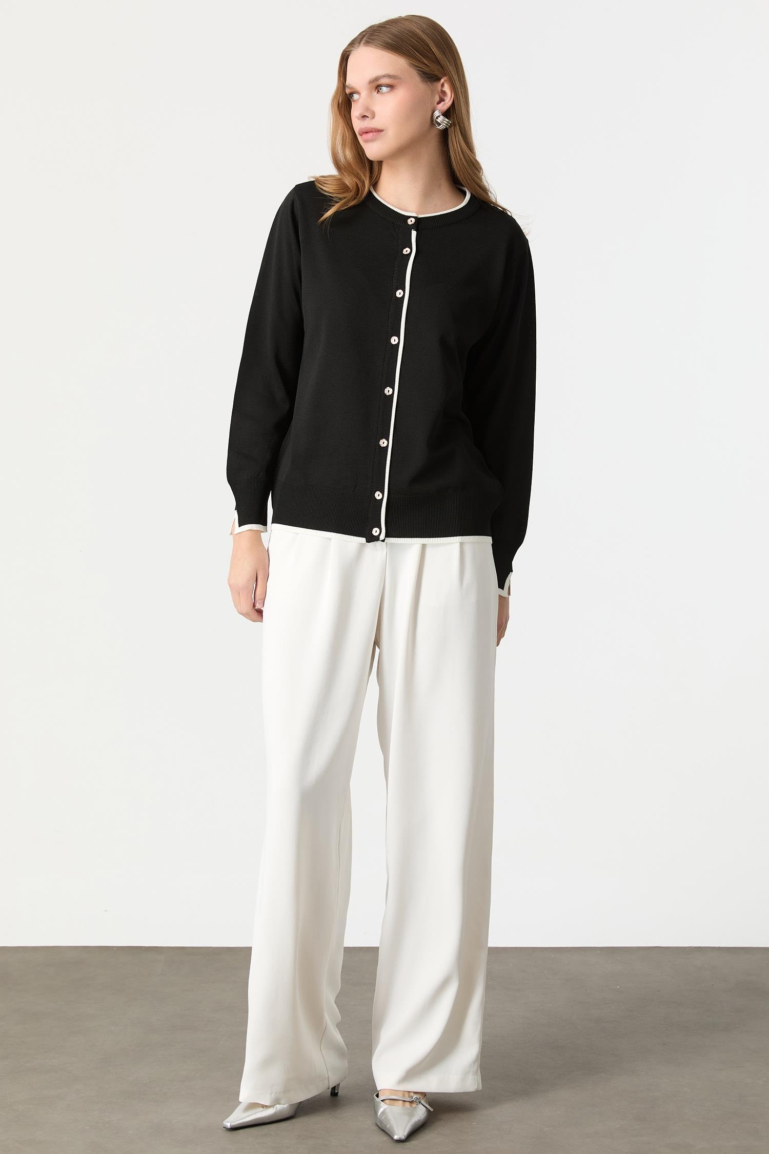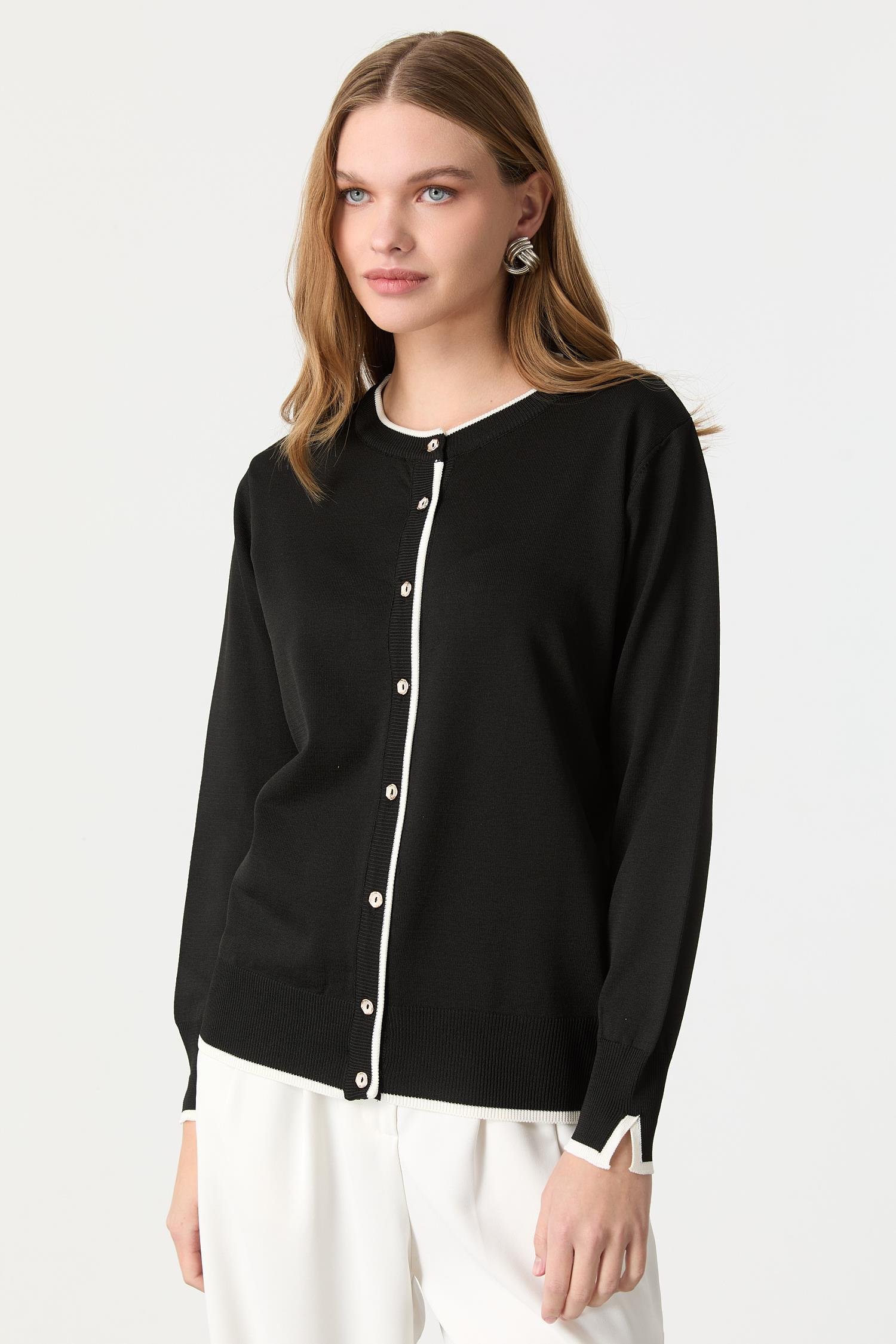 Düğmeli Basic Triko Hırka-SİYAH/KEMİK (5WT0BY35317-55)
