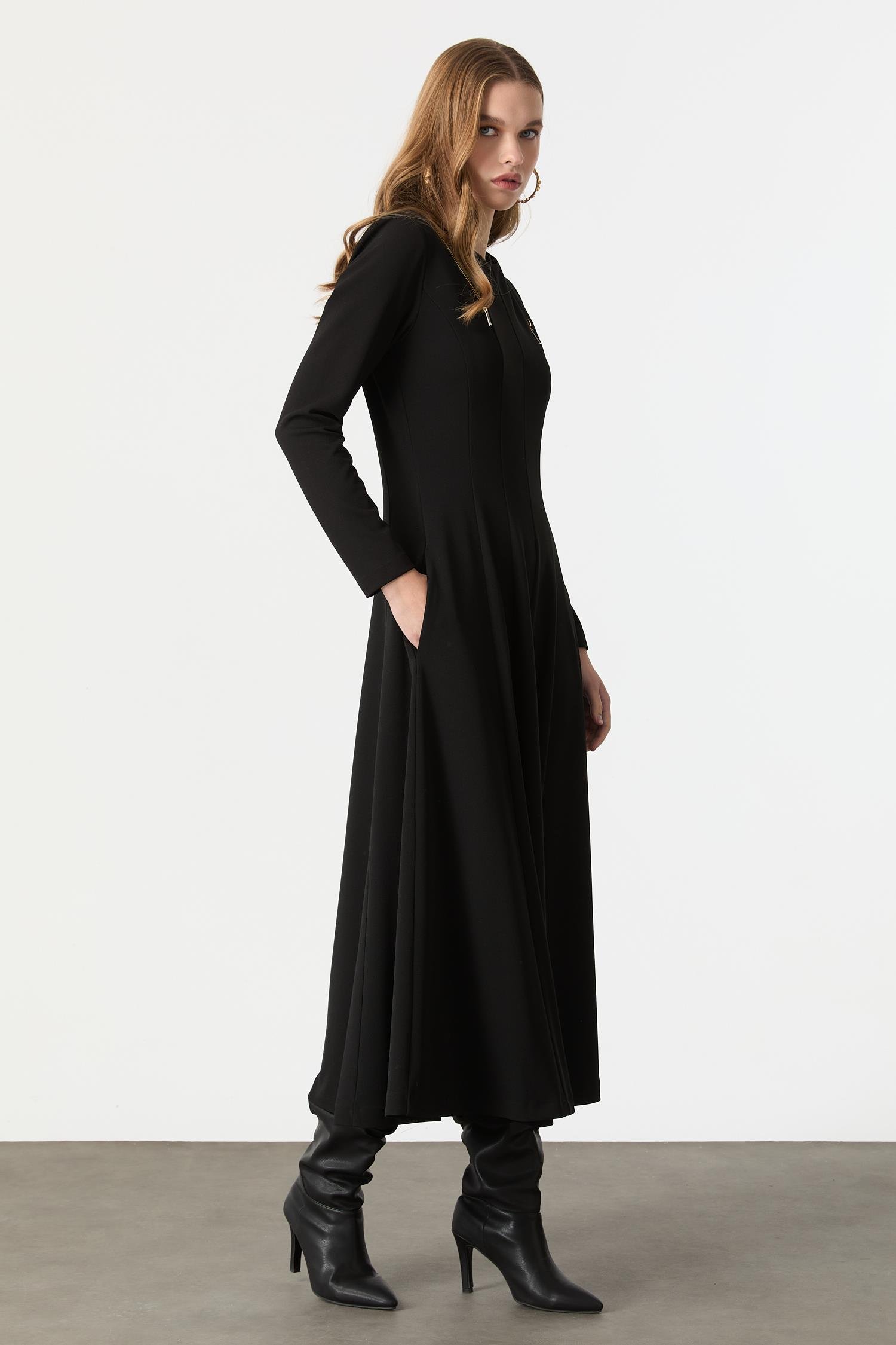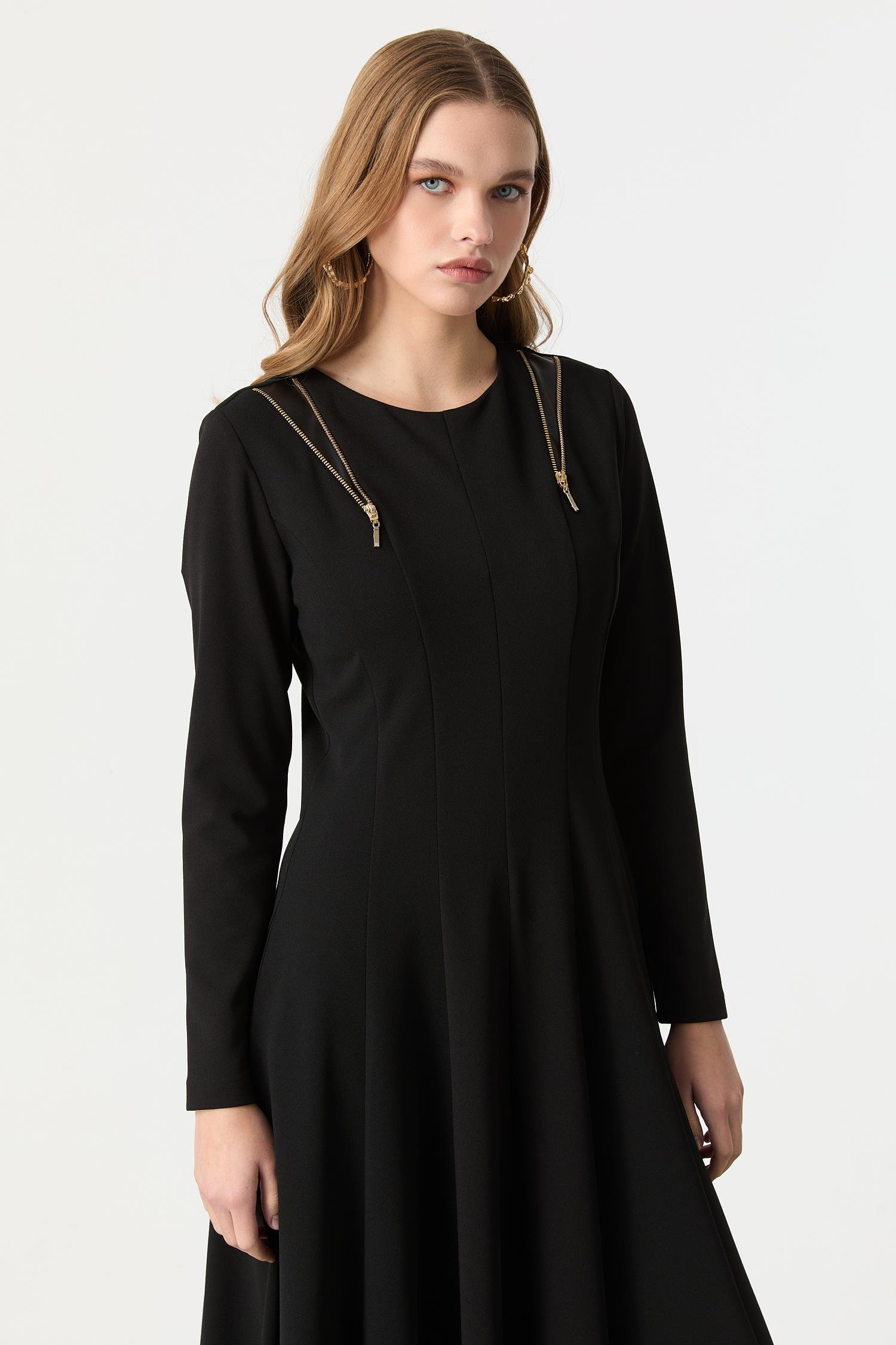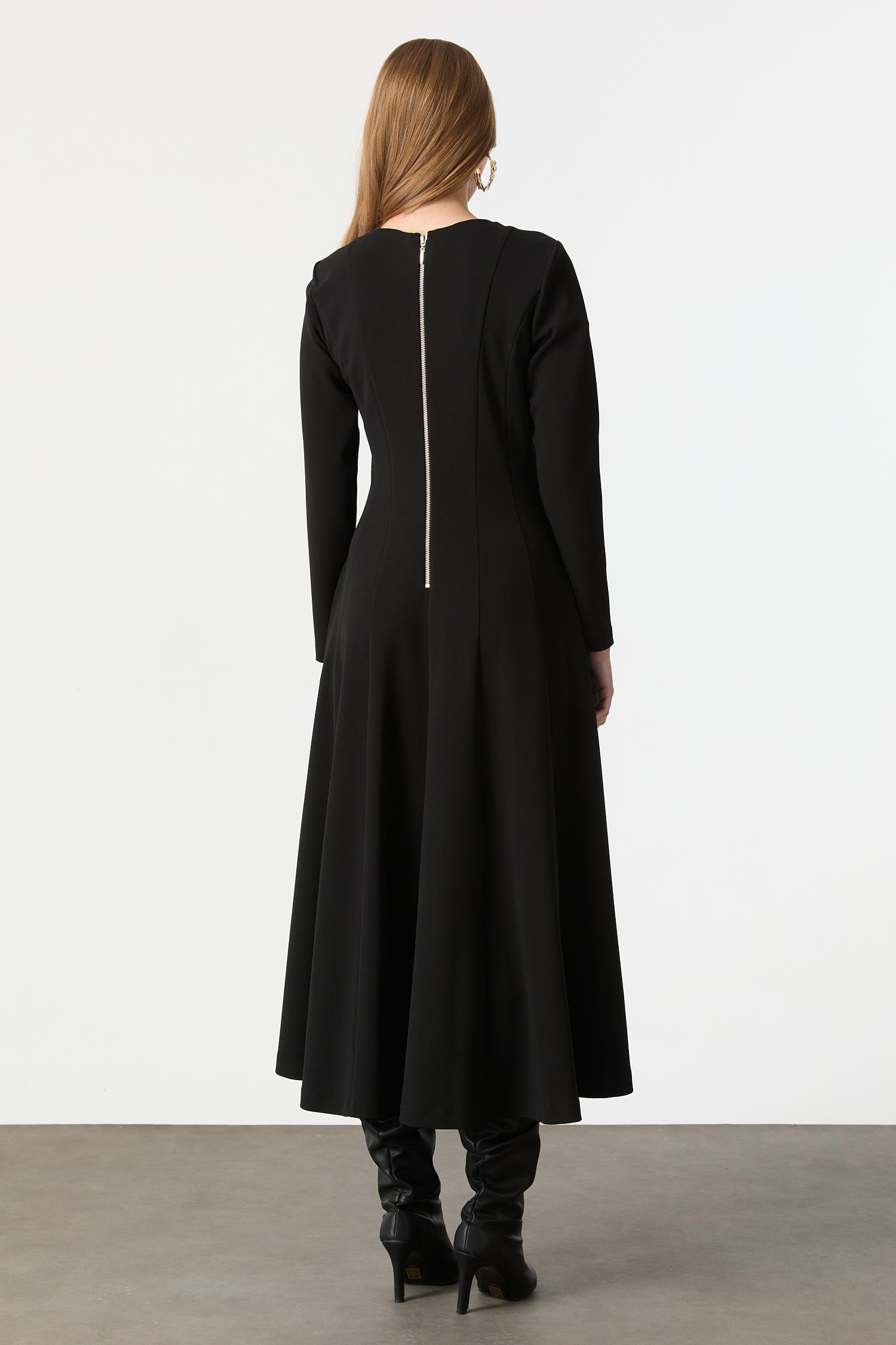 Fermuar Kombinli Krep Elbise-SİYAH (5WKB51K1528_01)