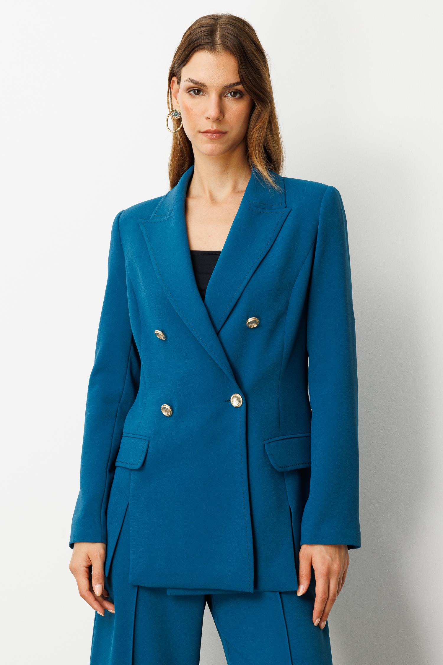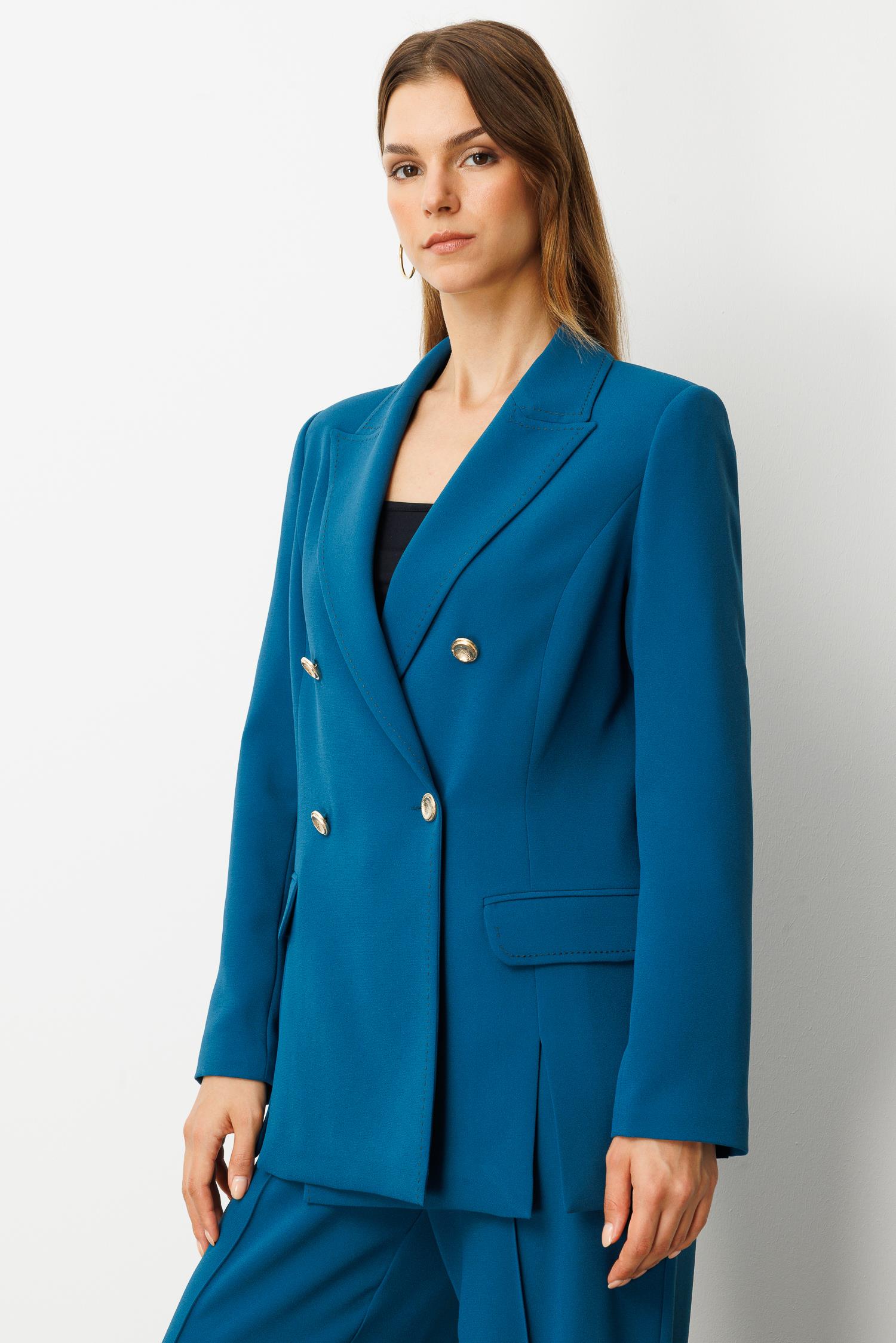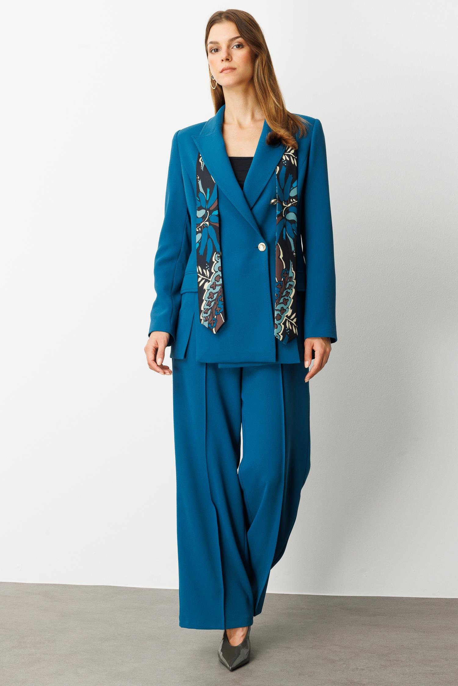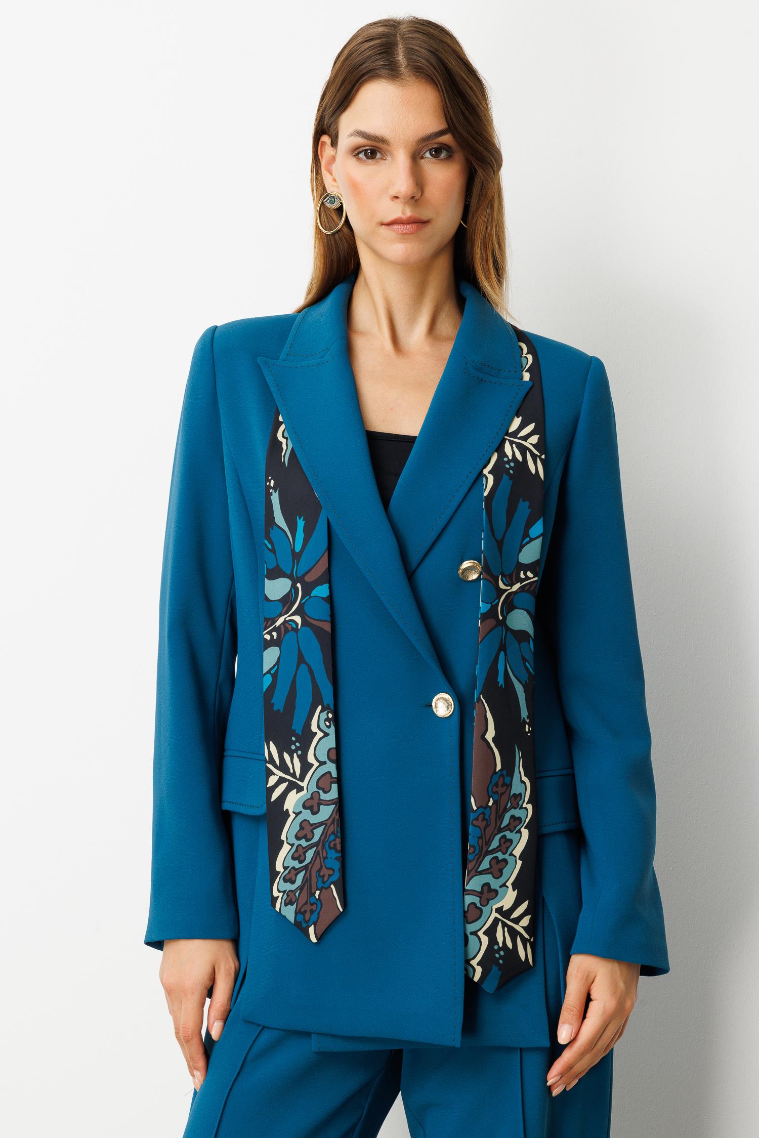 Fular Detaylı Kruvaze Ceket-PETROL (5WKB41K1361_56)
