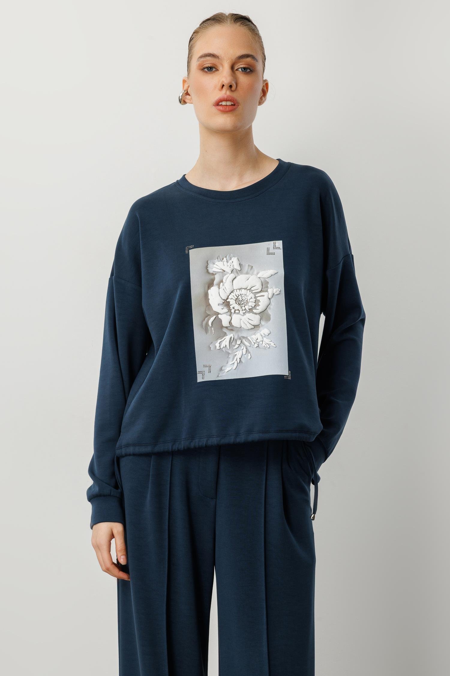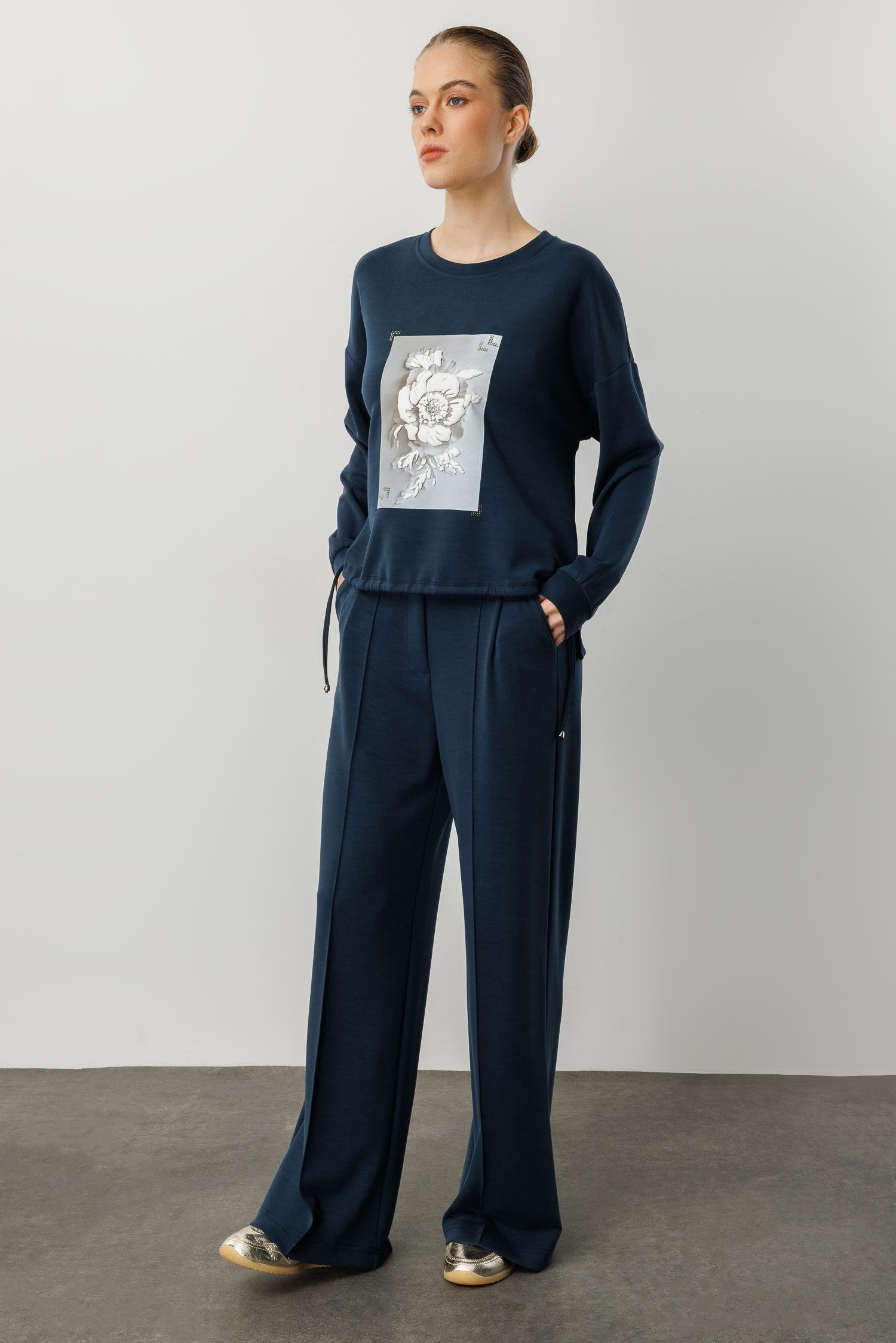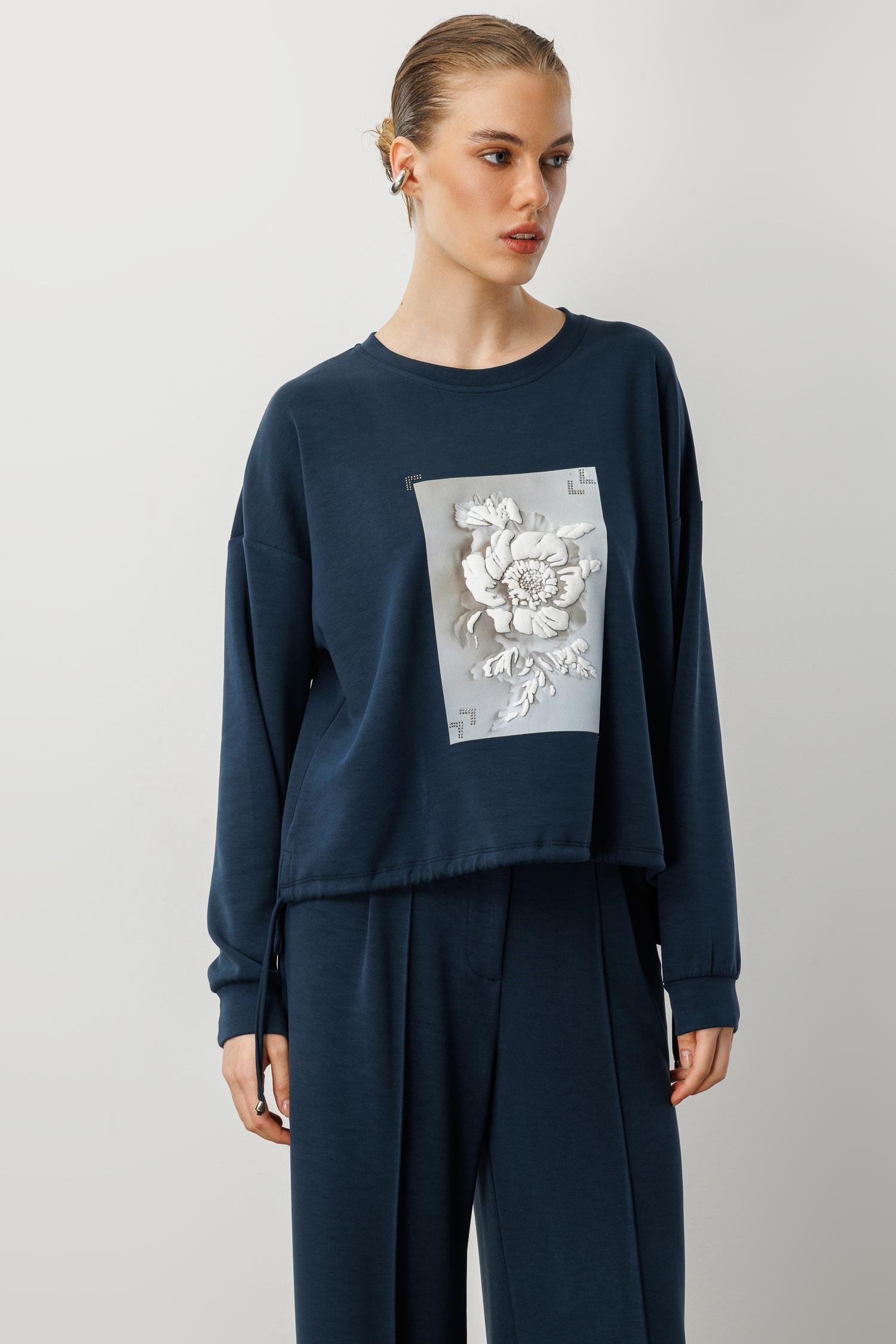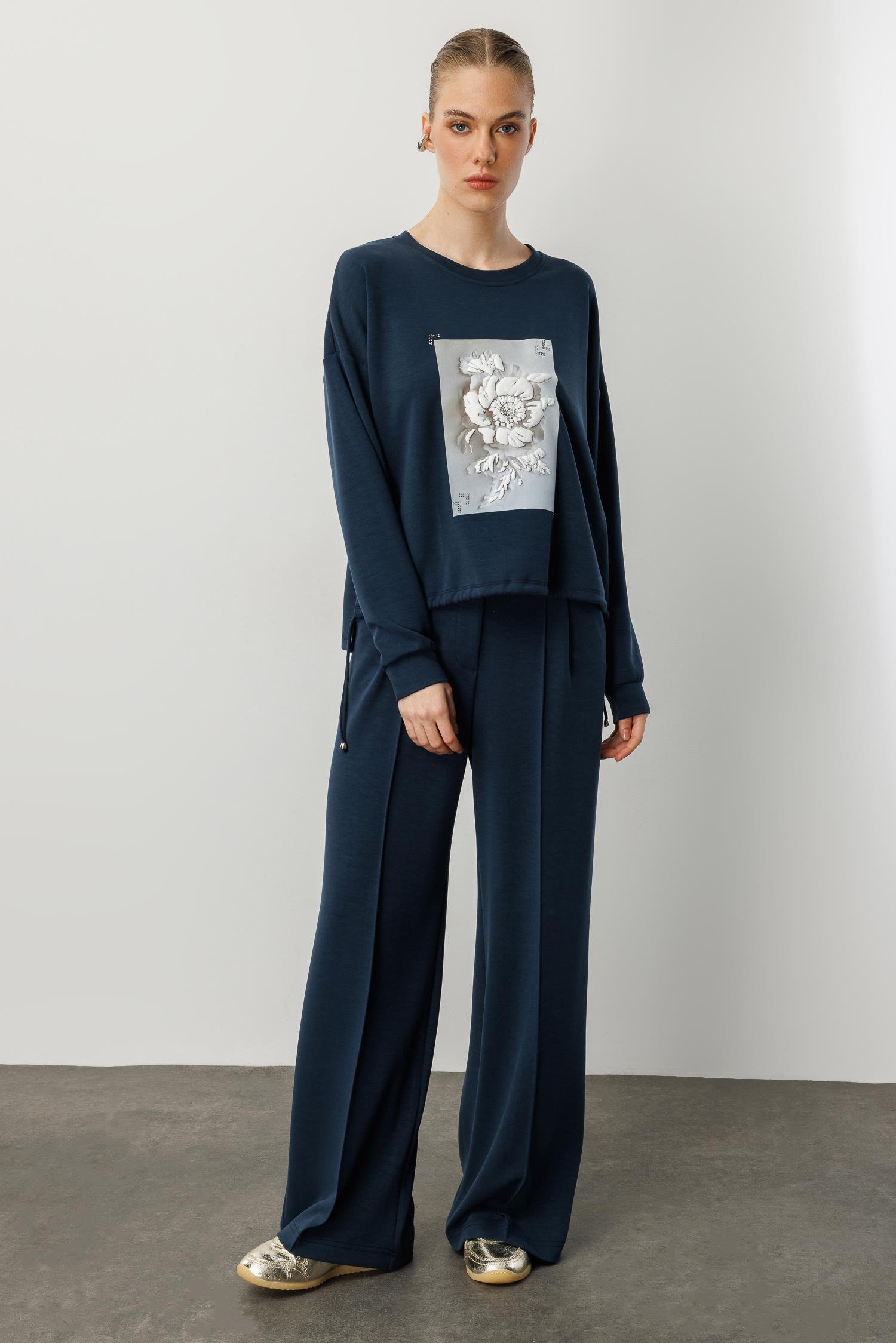 Kabartma Çiçek Desenli Modal Bluz-PETROL (5WKB81K1984_56)