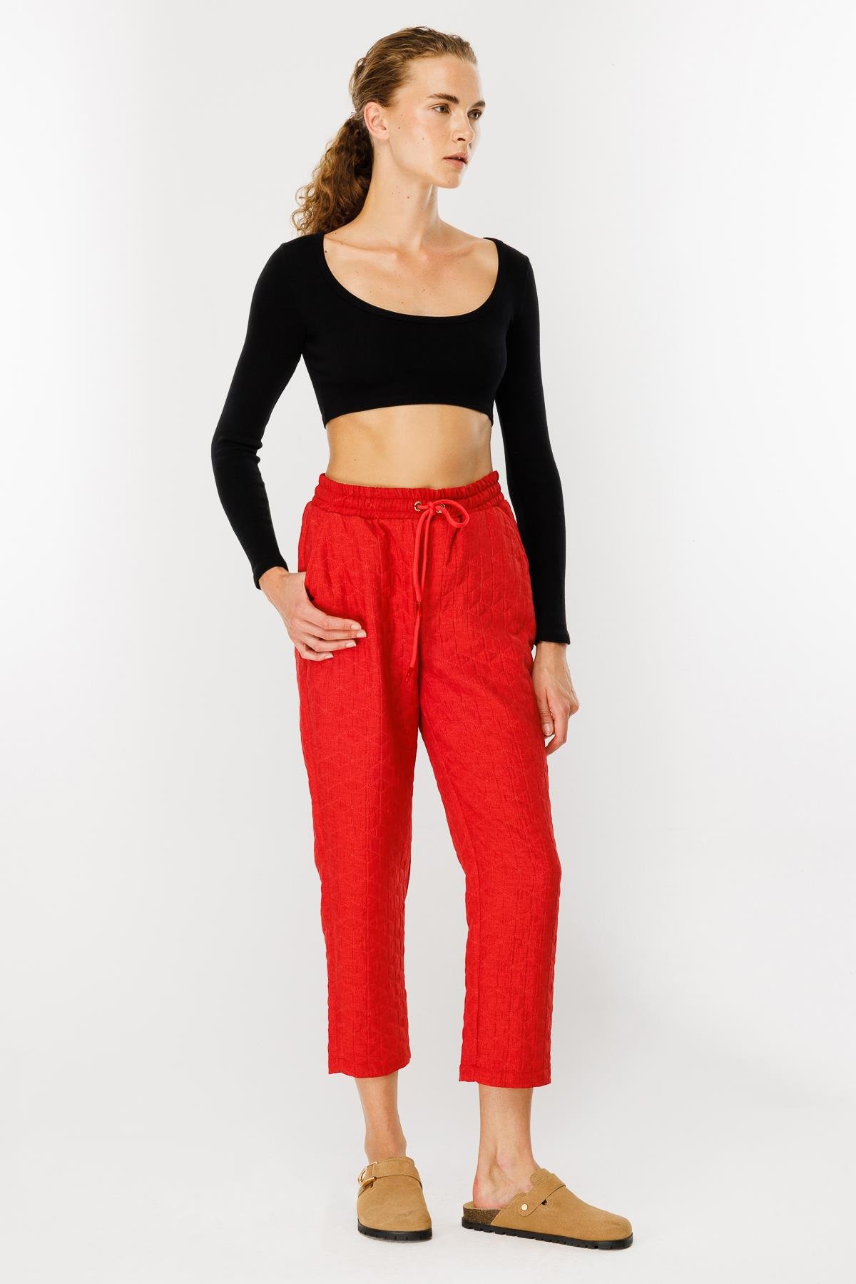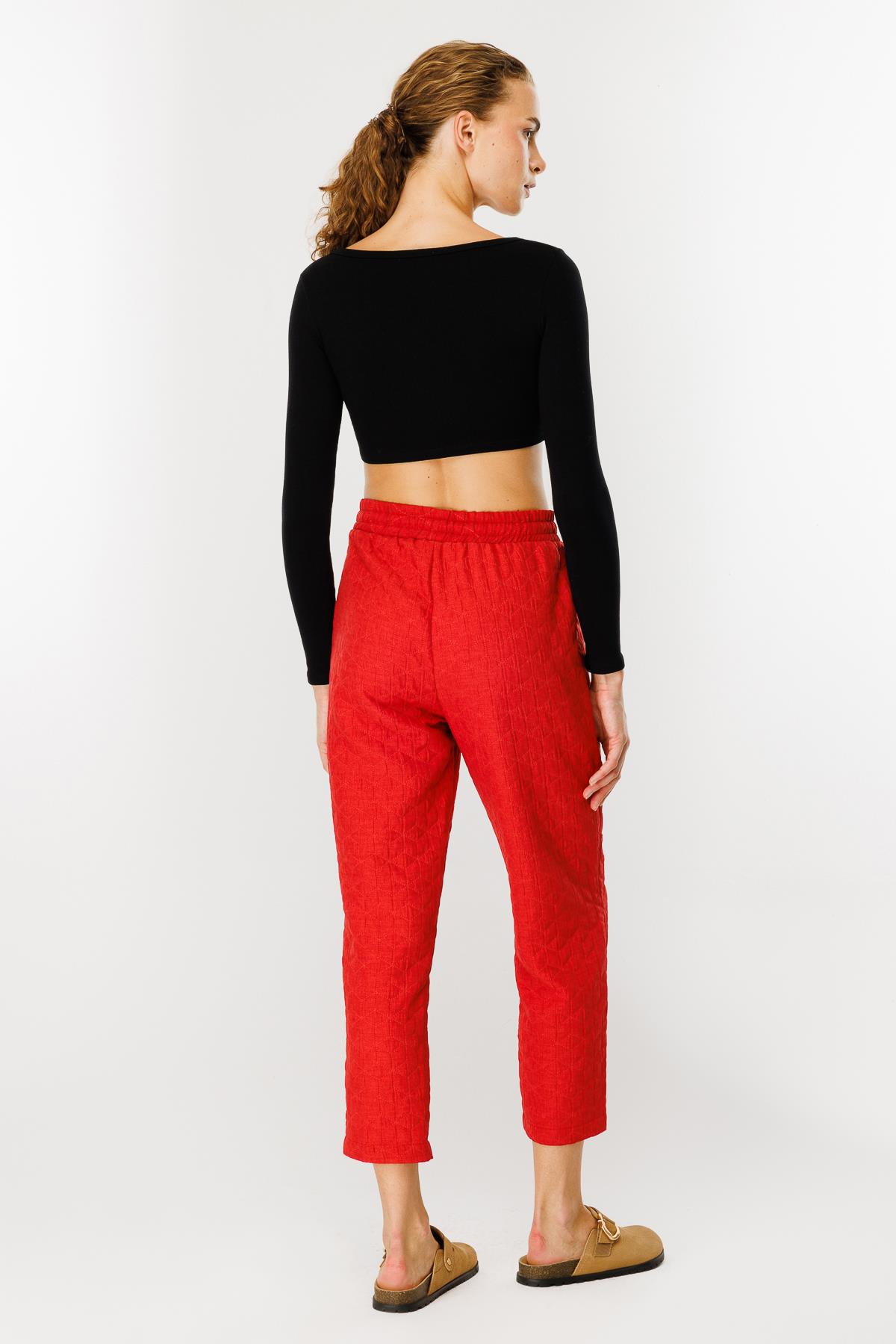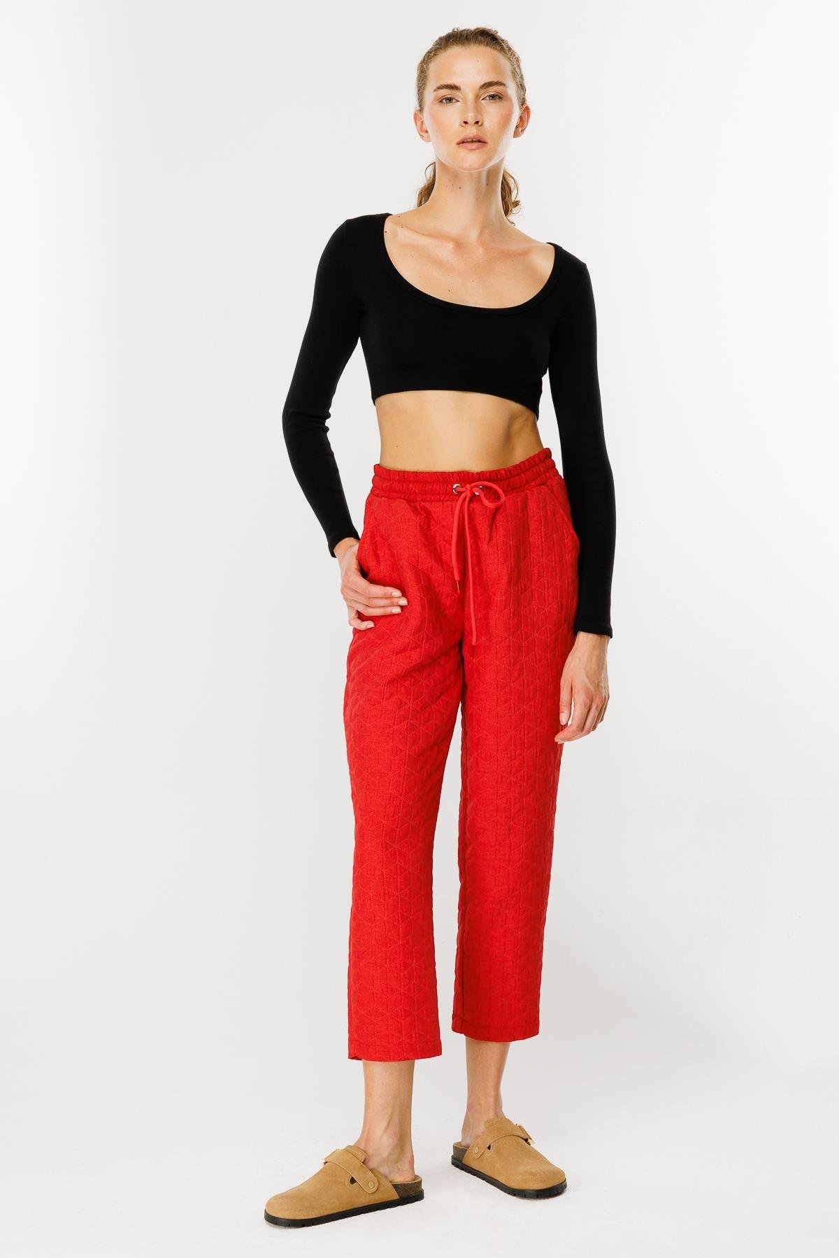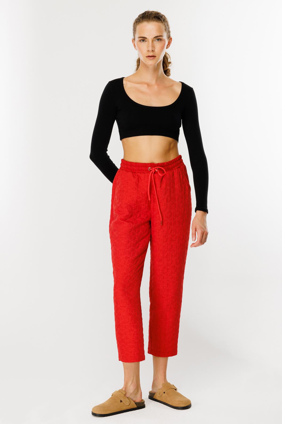 Kapitone Desenli Beli Lastikli Pantolon-KIRMIZI (4WGC21K1724_45)