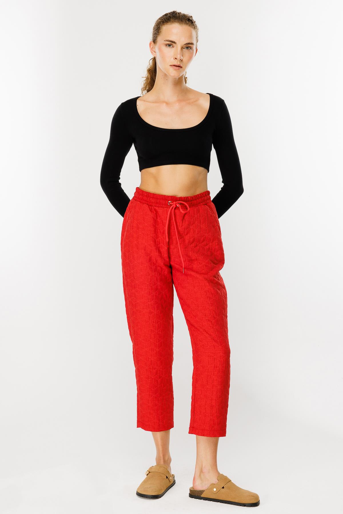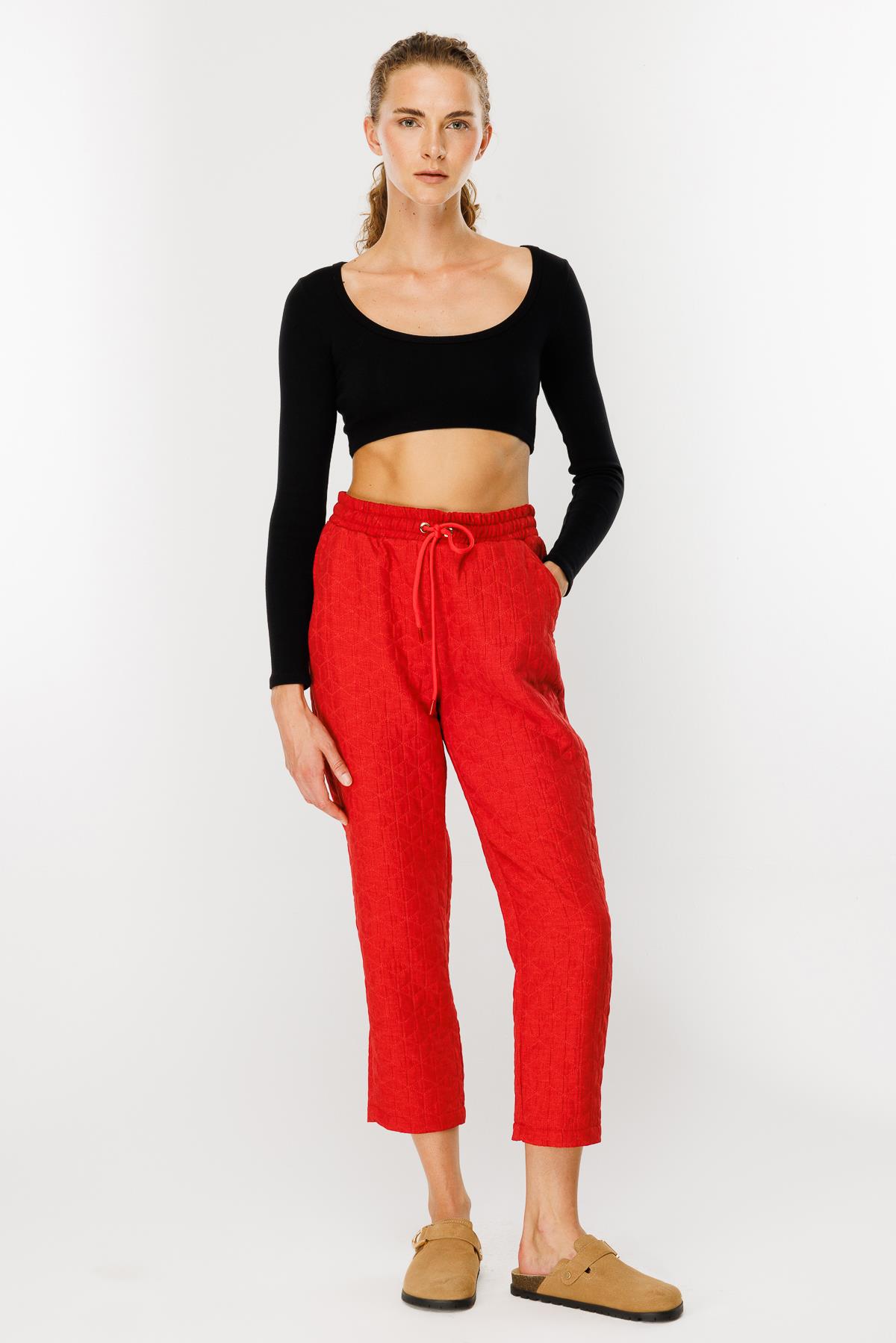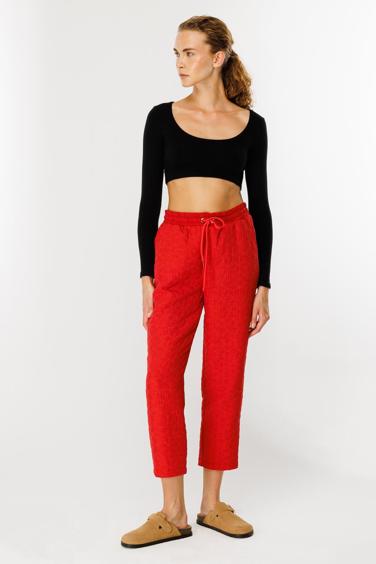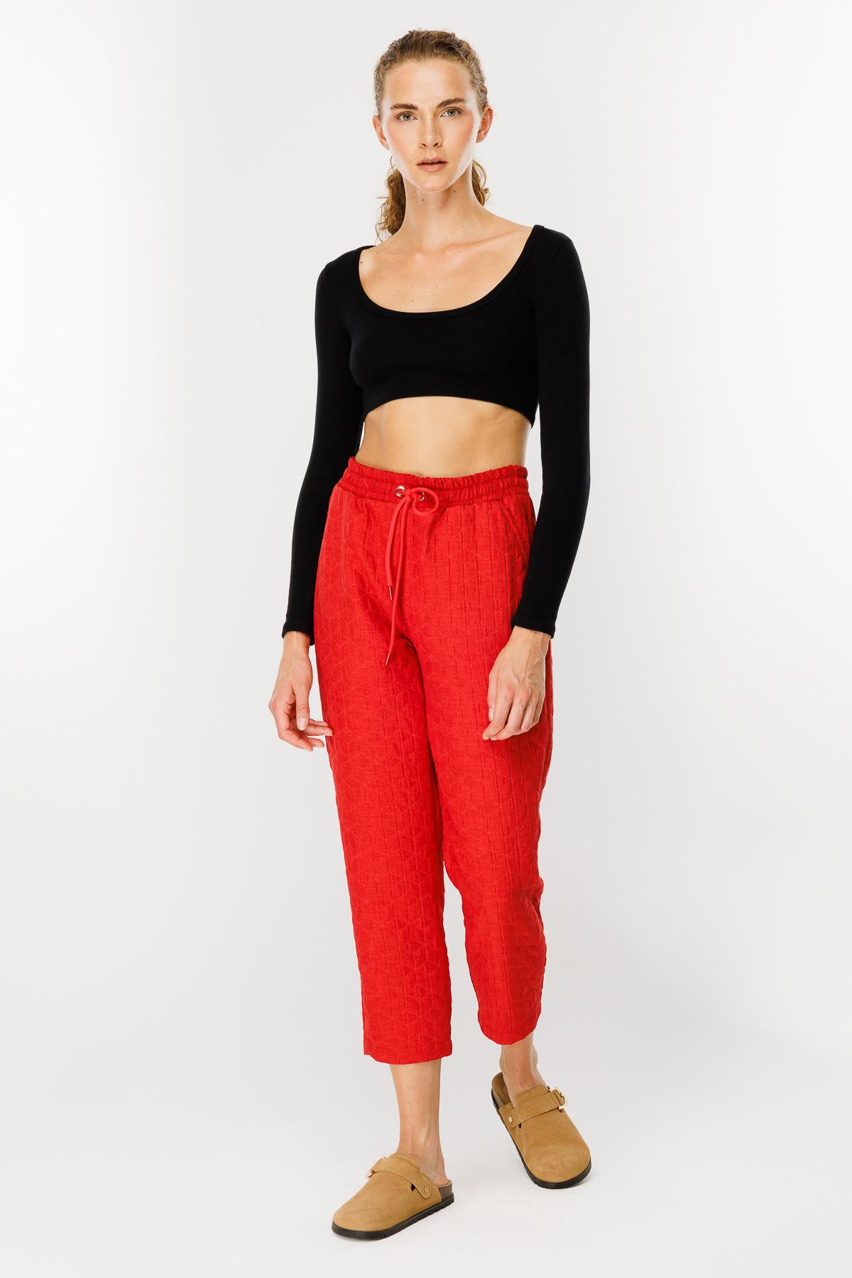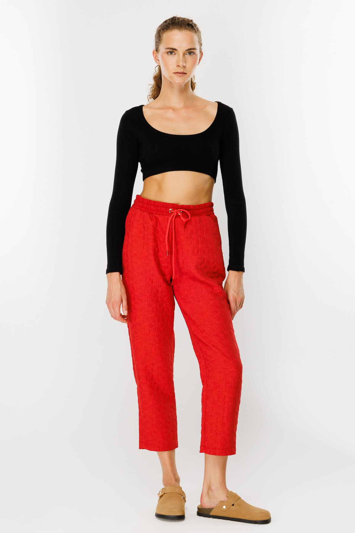 Kapitone Desenli Beli Lastikli Pantolon-KIRMIZI (4WGC21K1724_45)