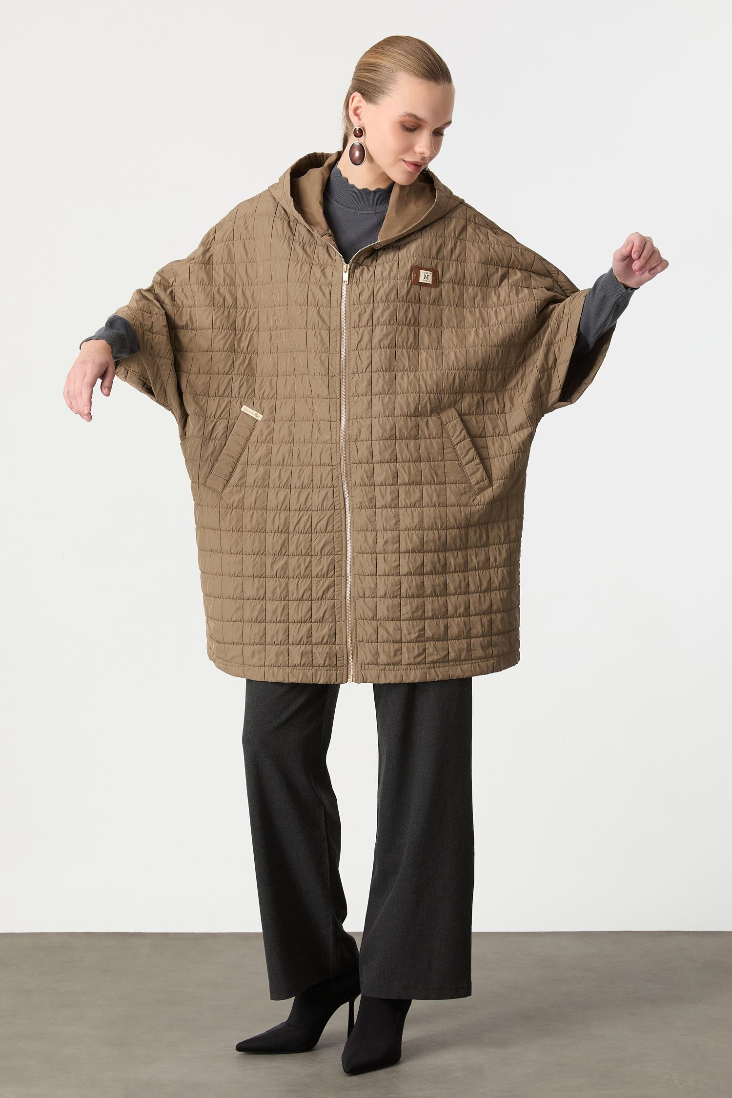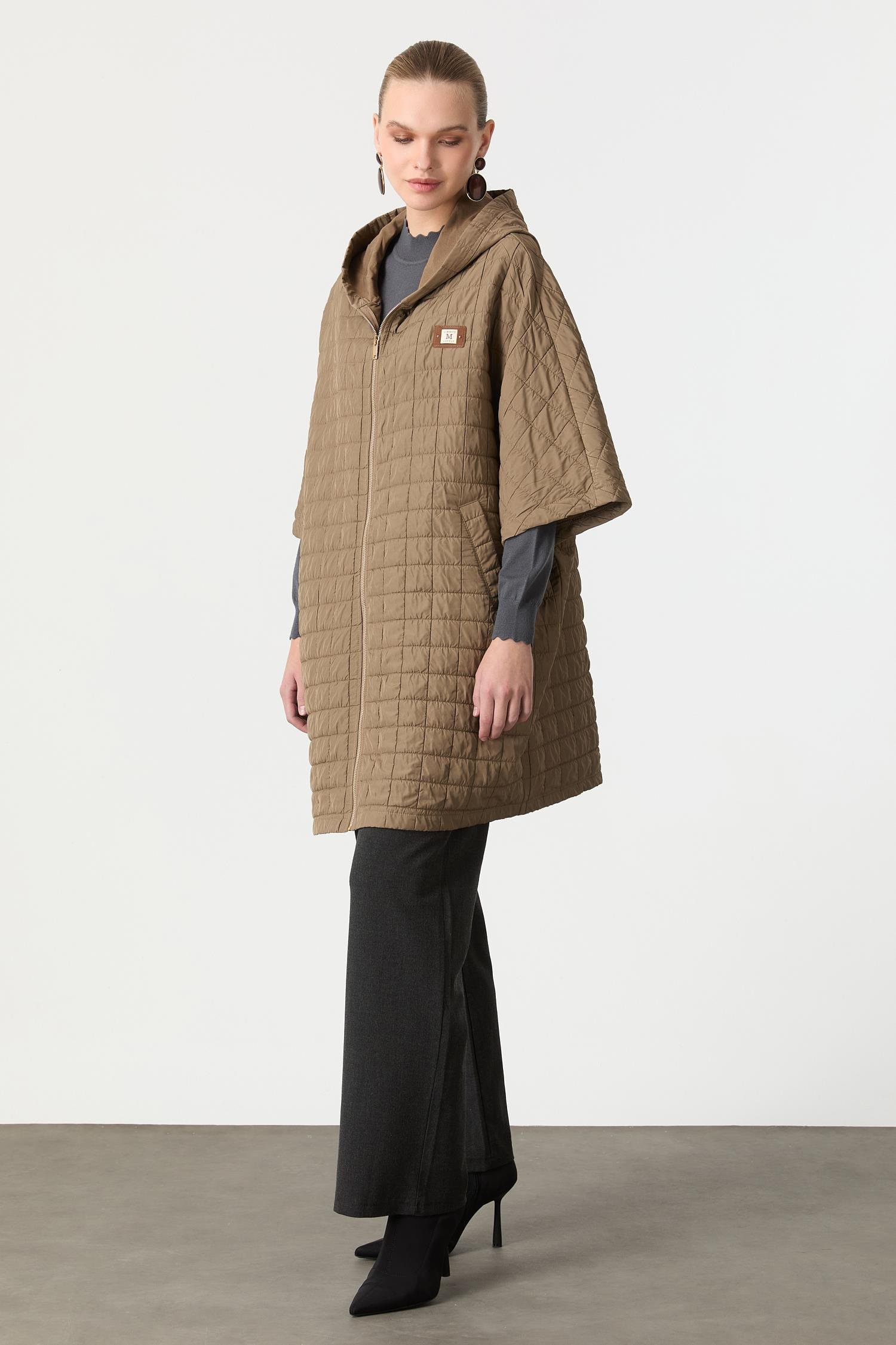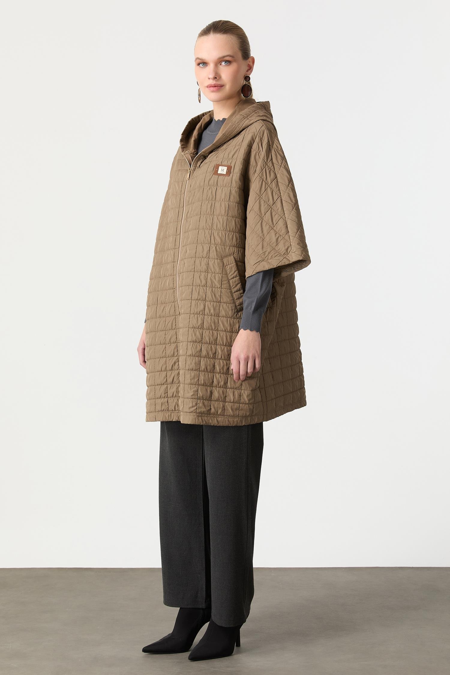 Kapitone Kapüşonlu Yelek-CAMEL (5WKB90K1320-24)