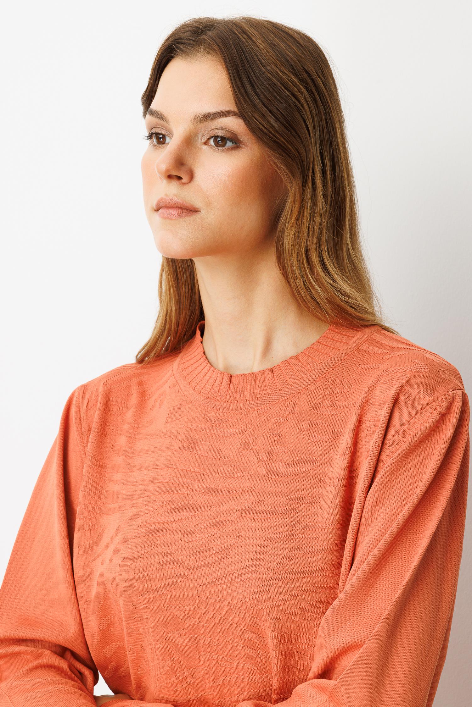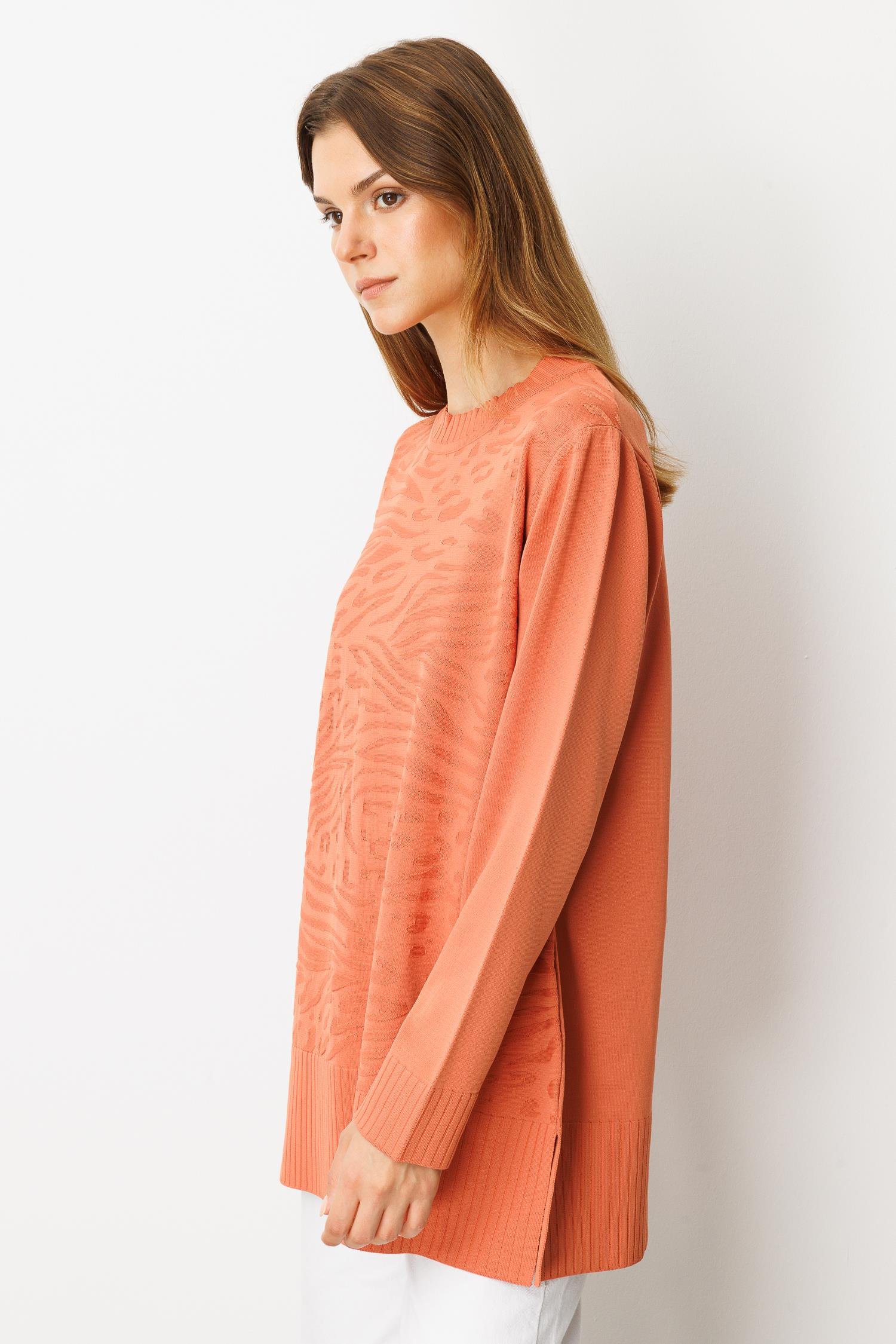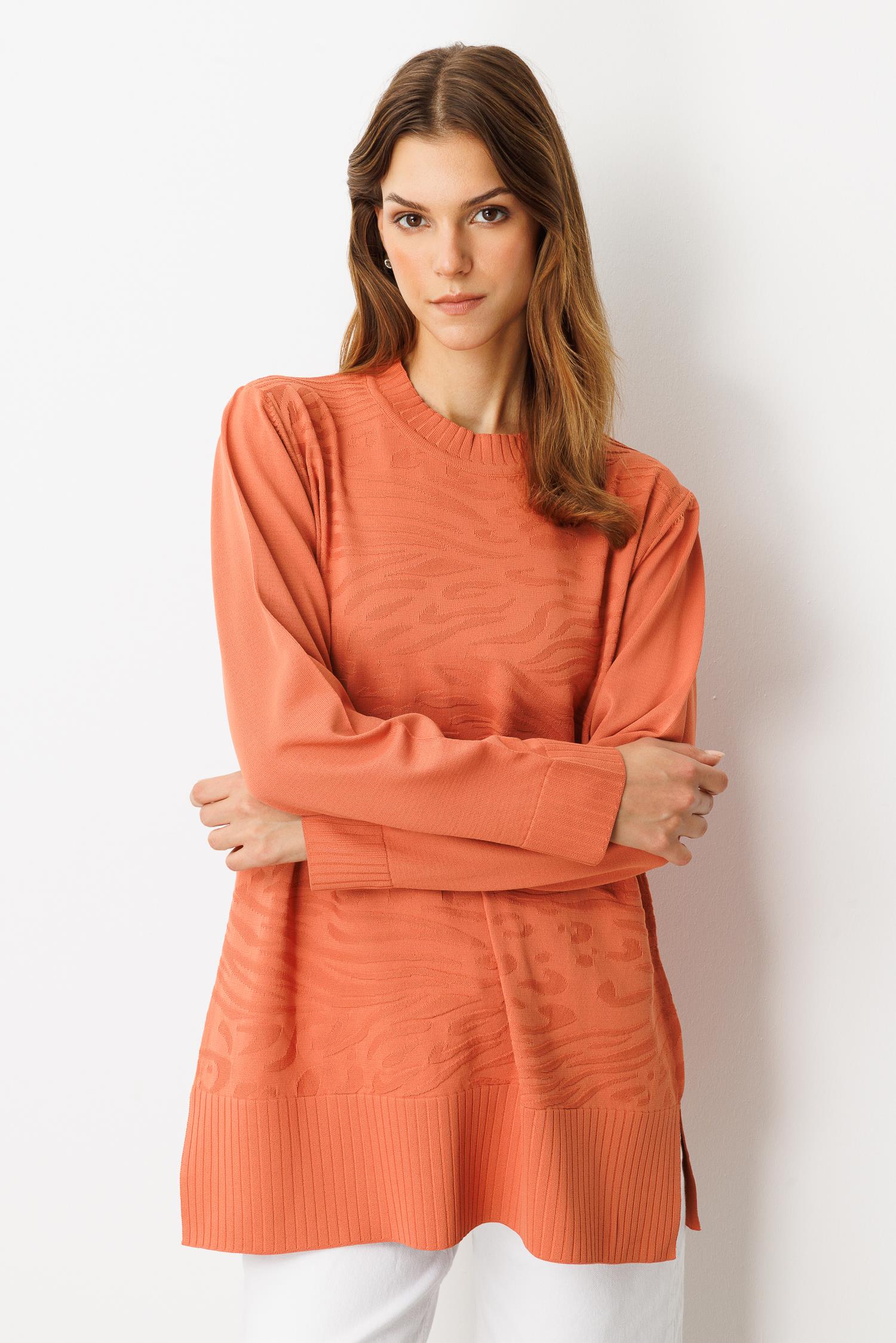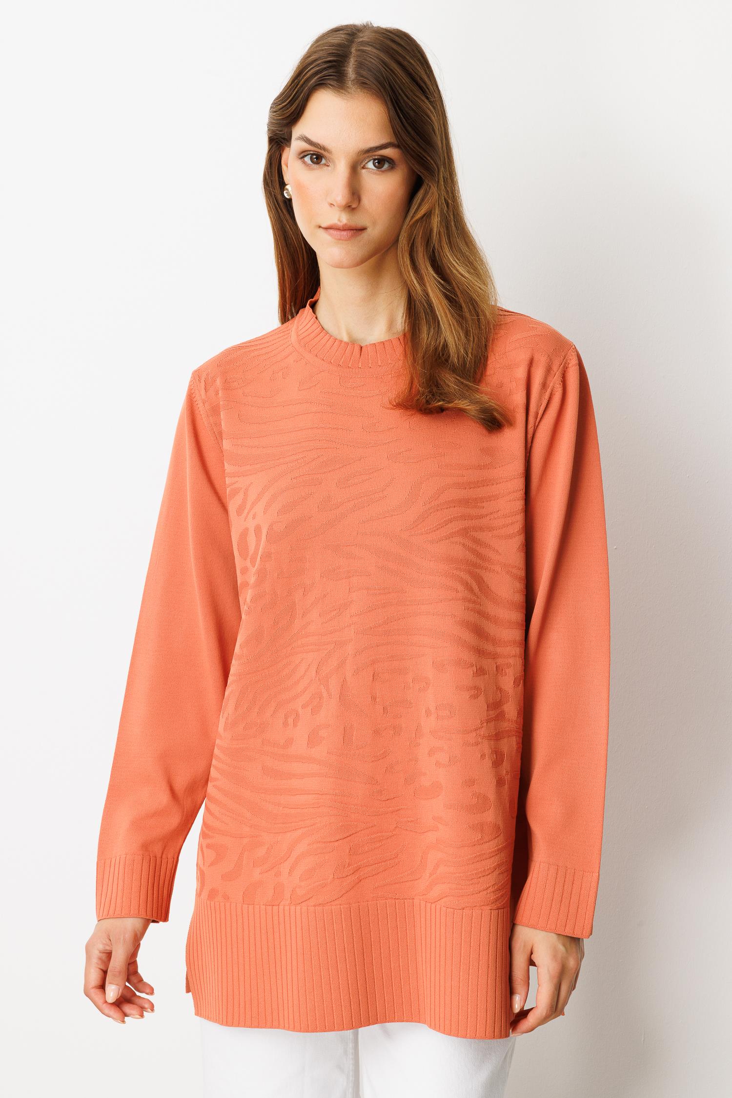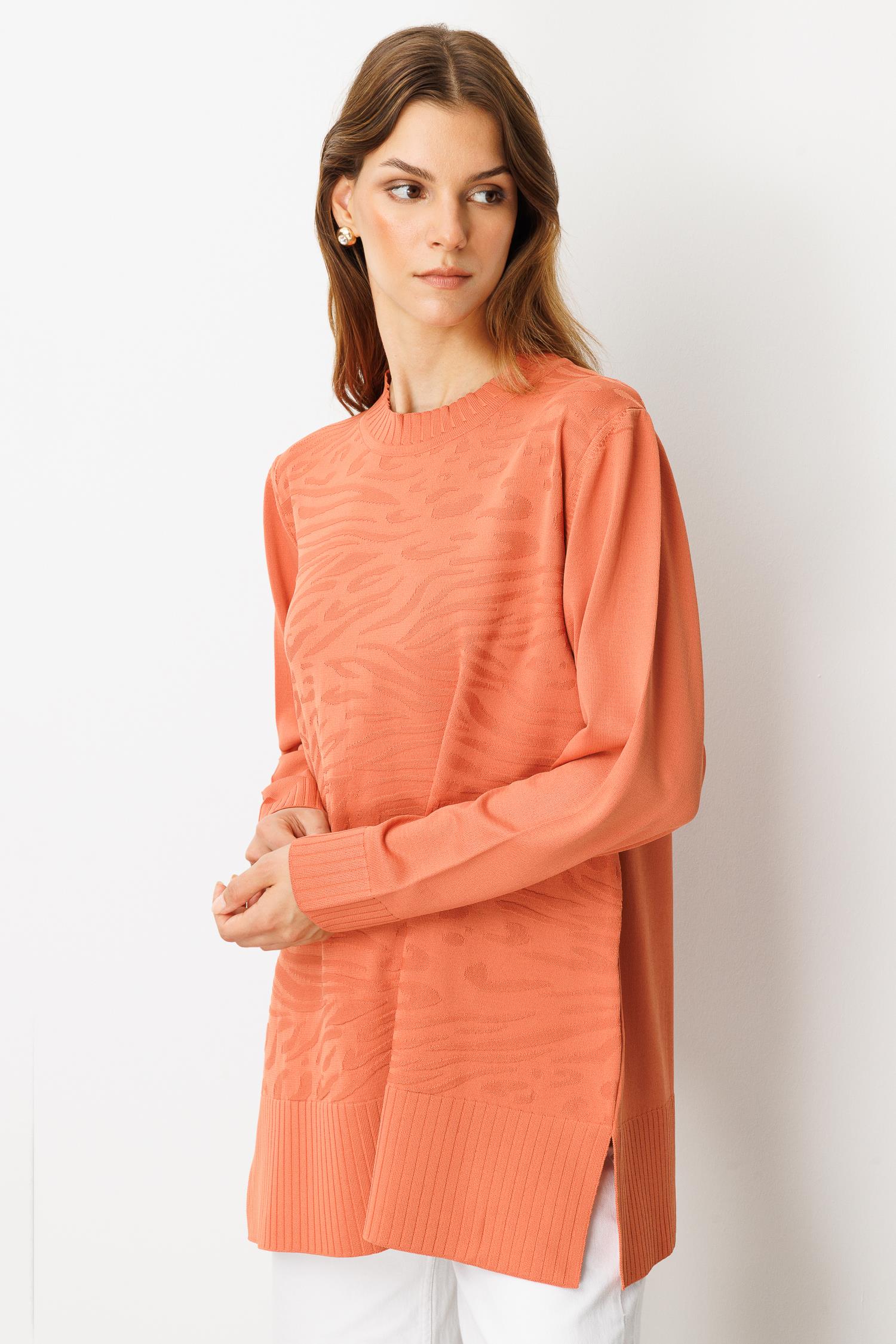 Kendinden Desenli Triko Tunik-ŞEFTALİ (5WT00035358/88)