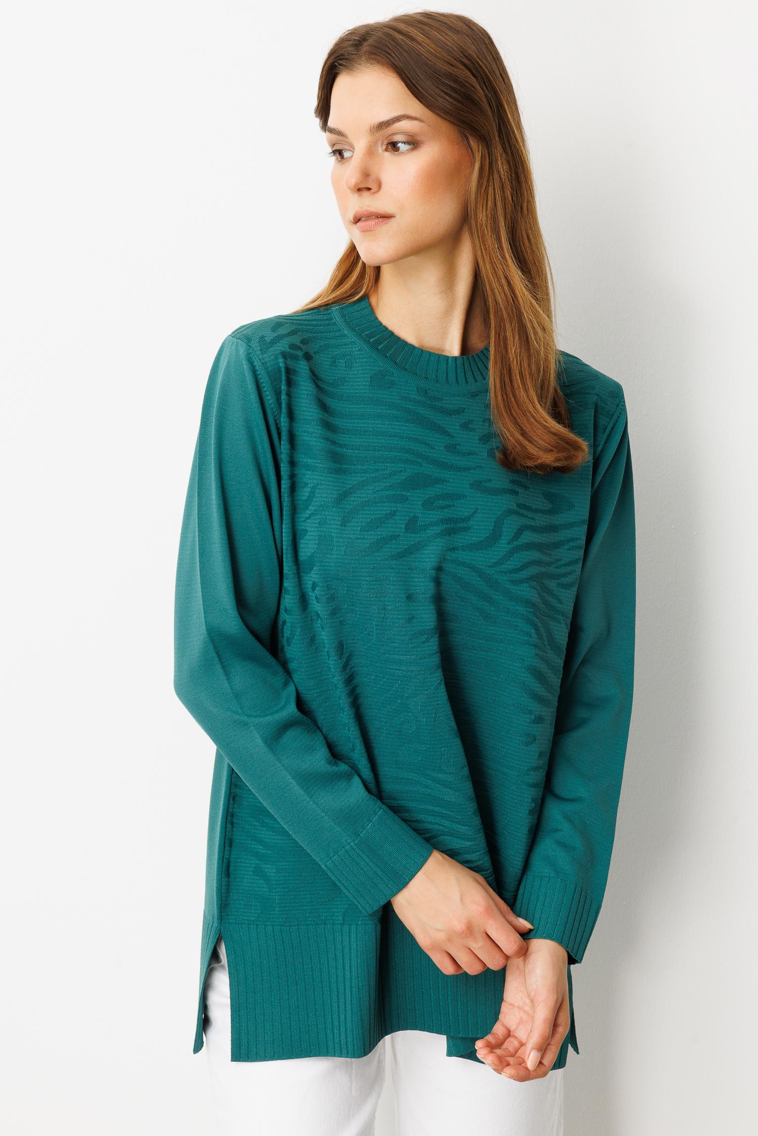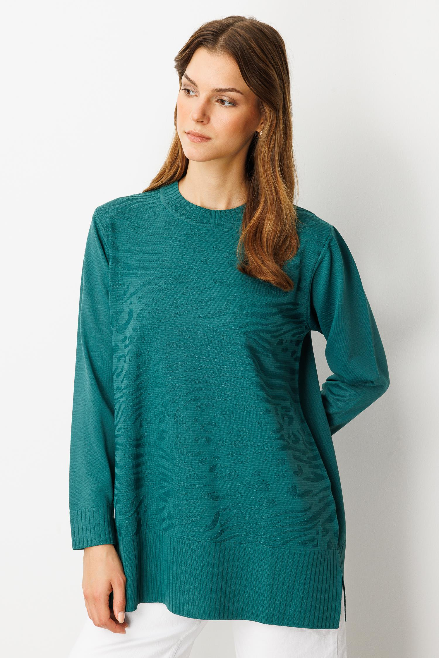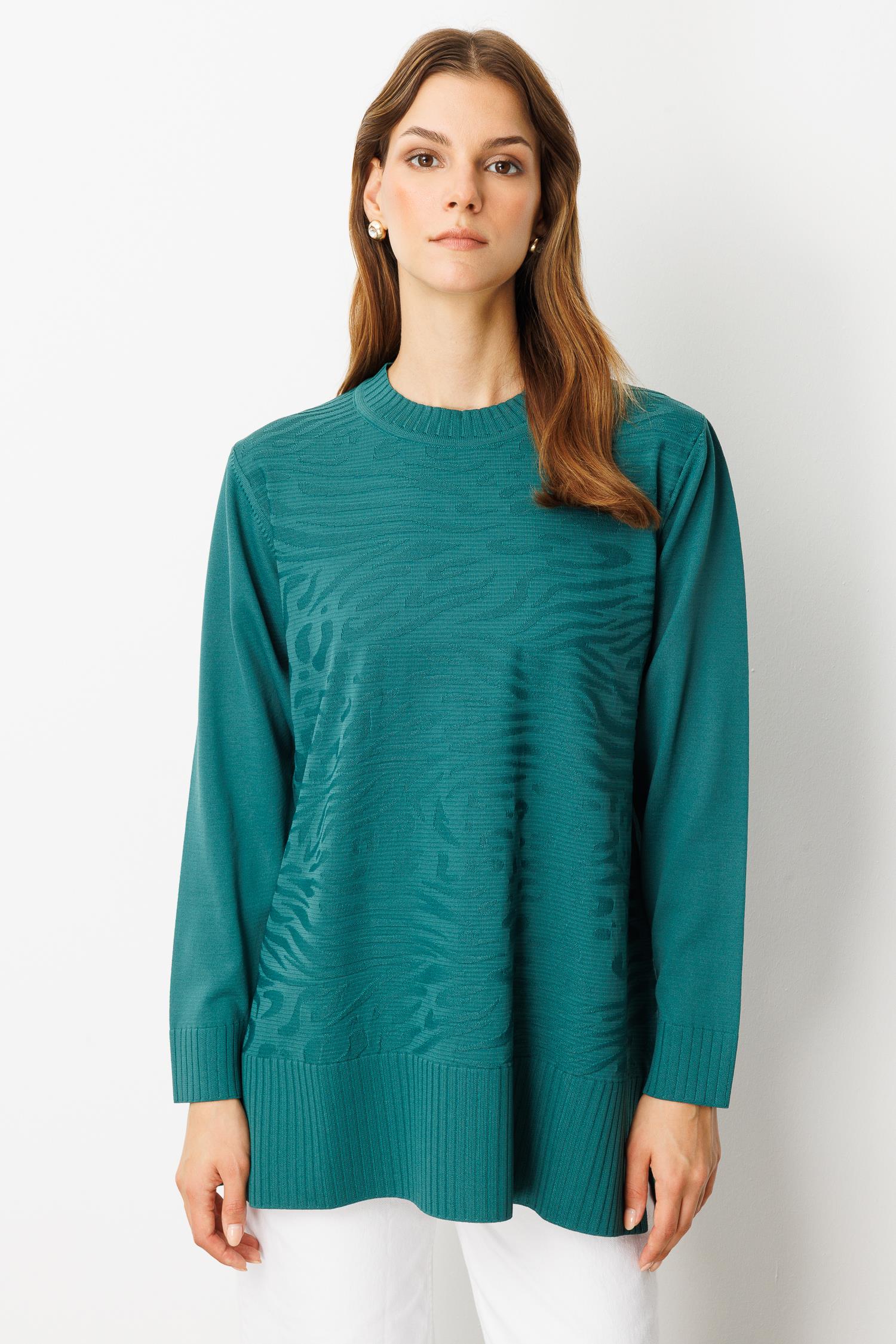 Kendinden Desenli Triko Tunik-ZÜMRÜT (5WT00035358_73)