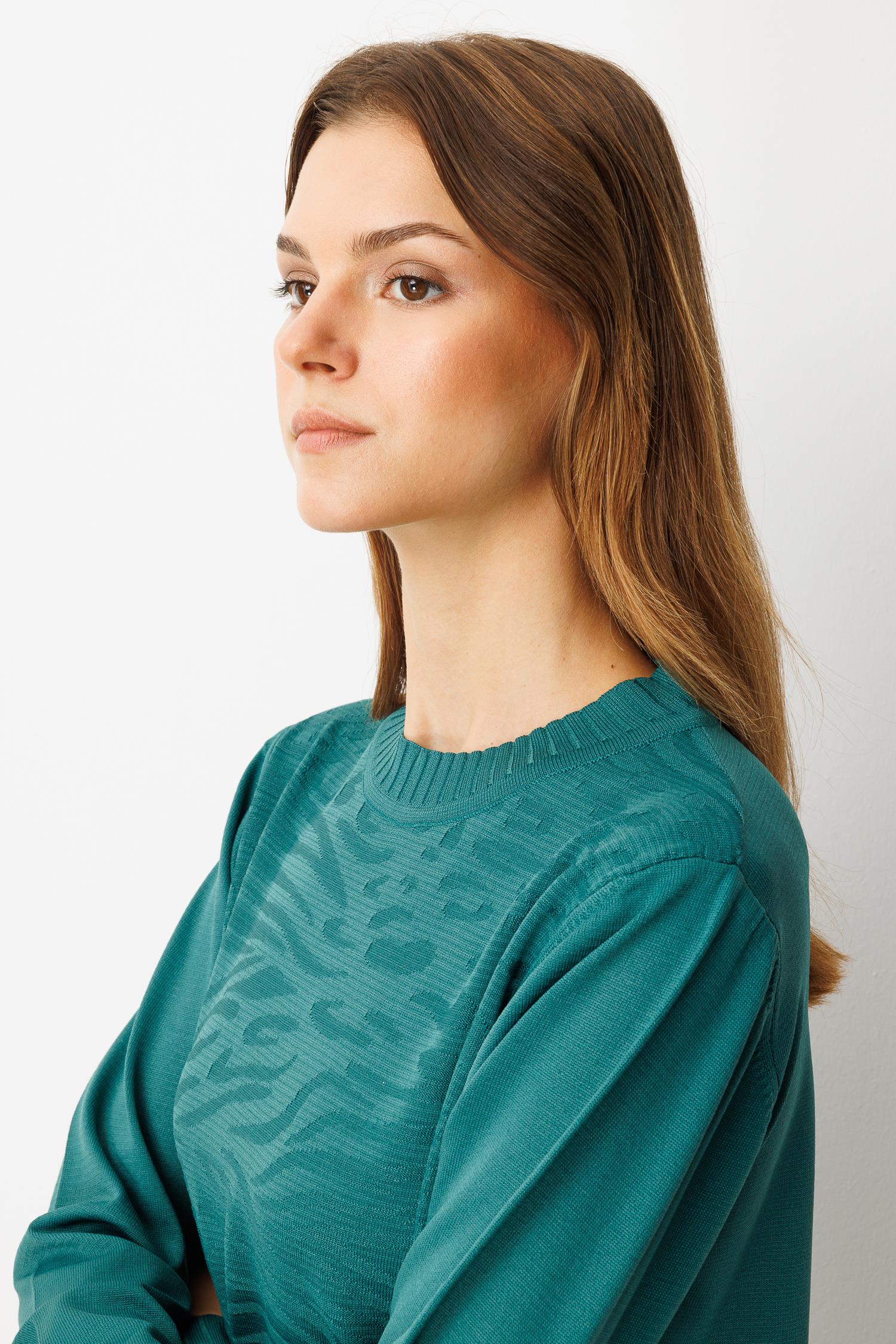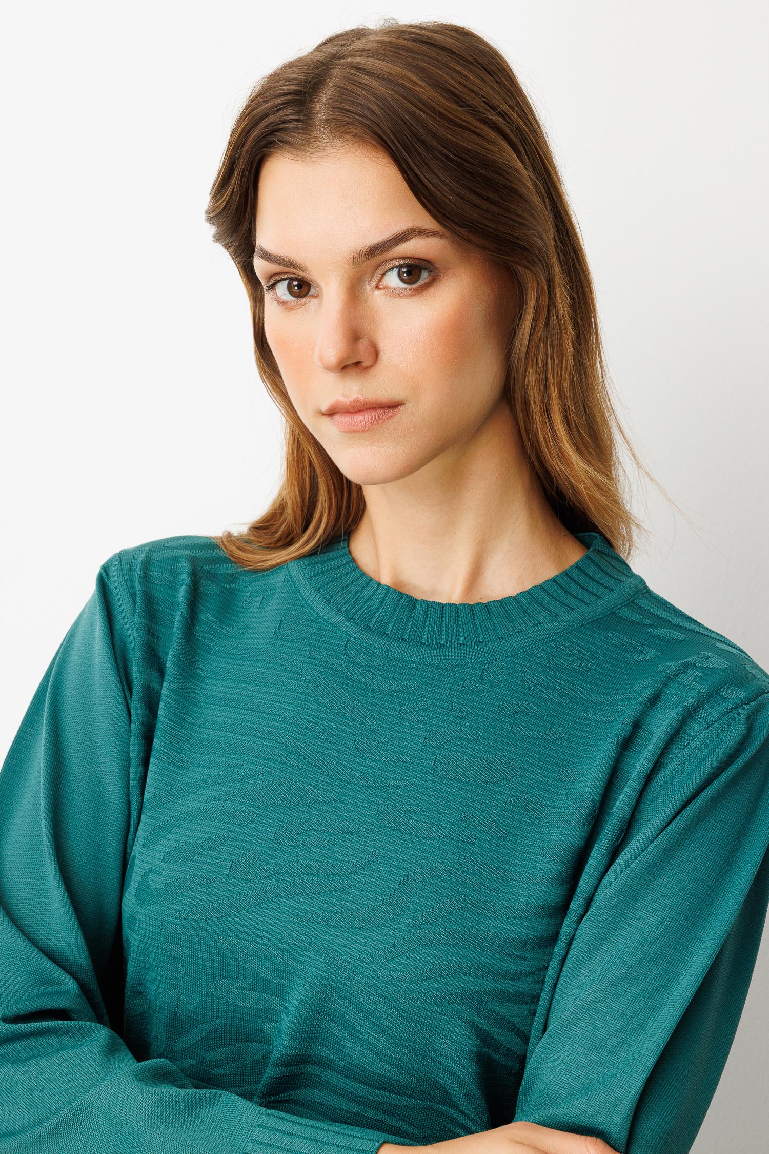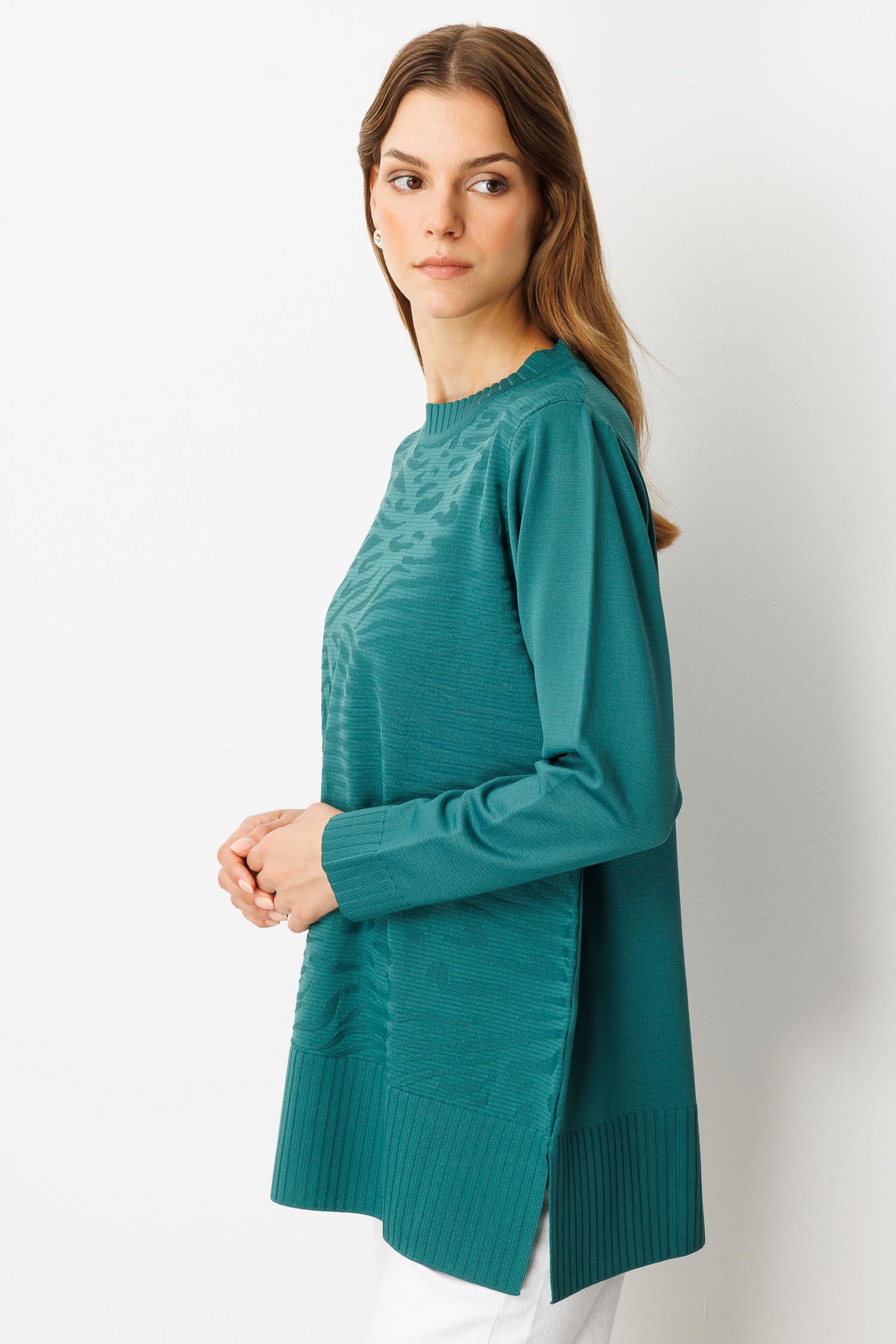 Kendinden Desenli Triko Tunik-ZÜMRÜT (5WT00035358_73)