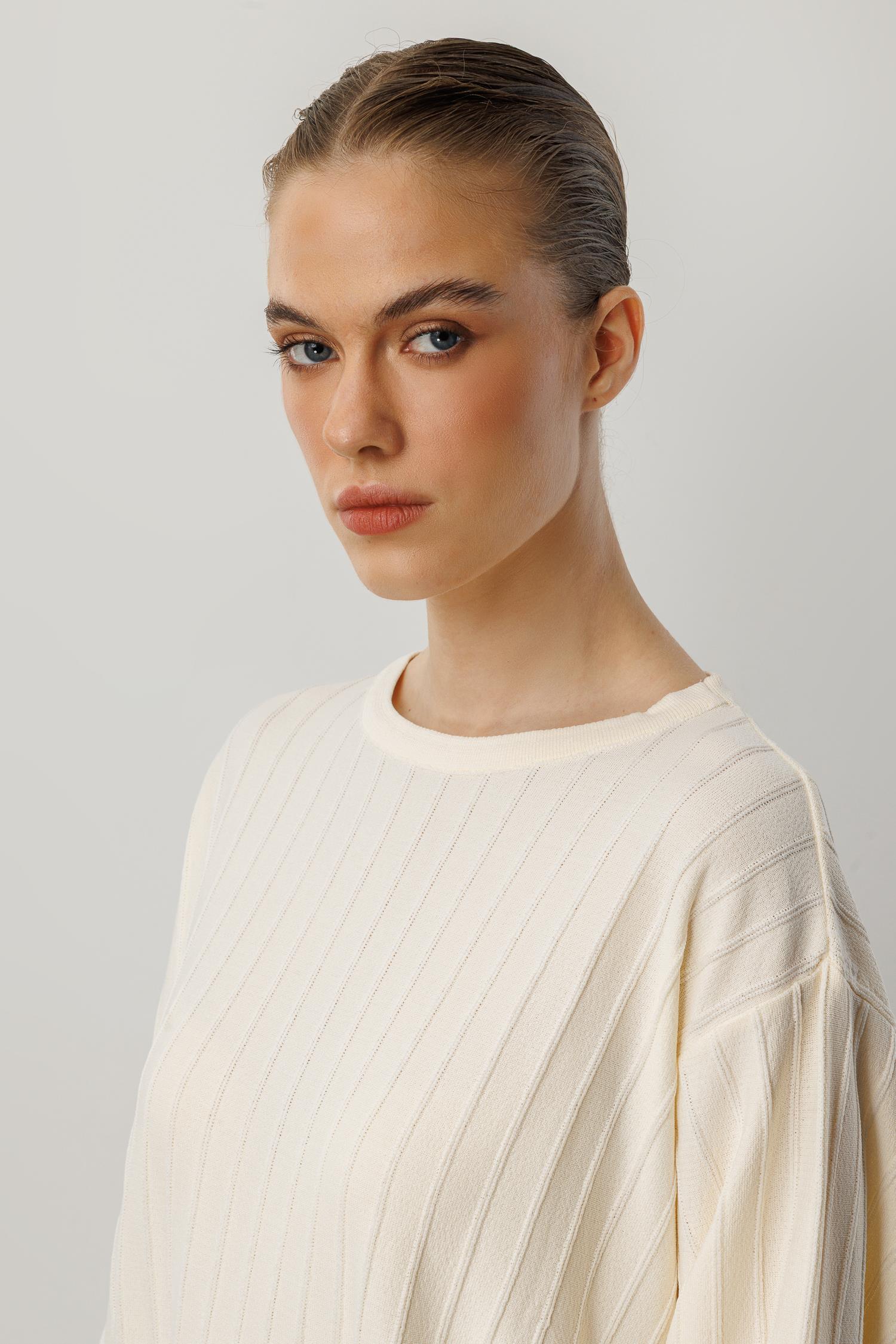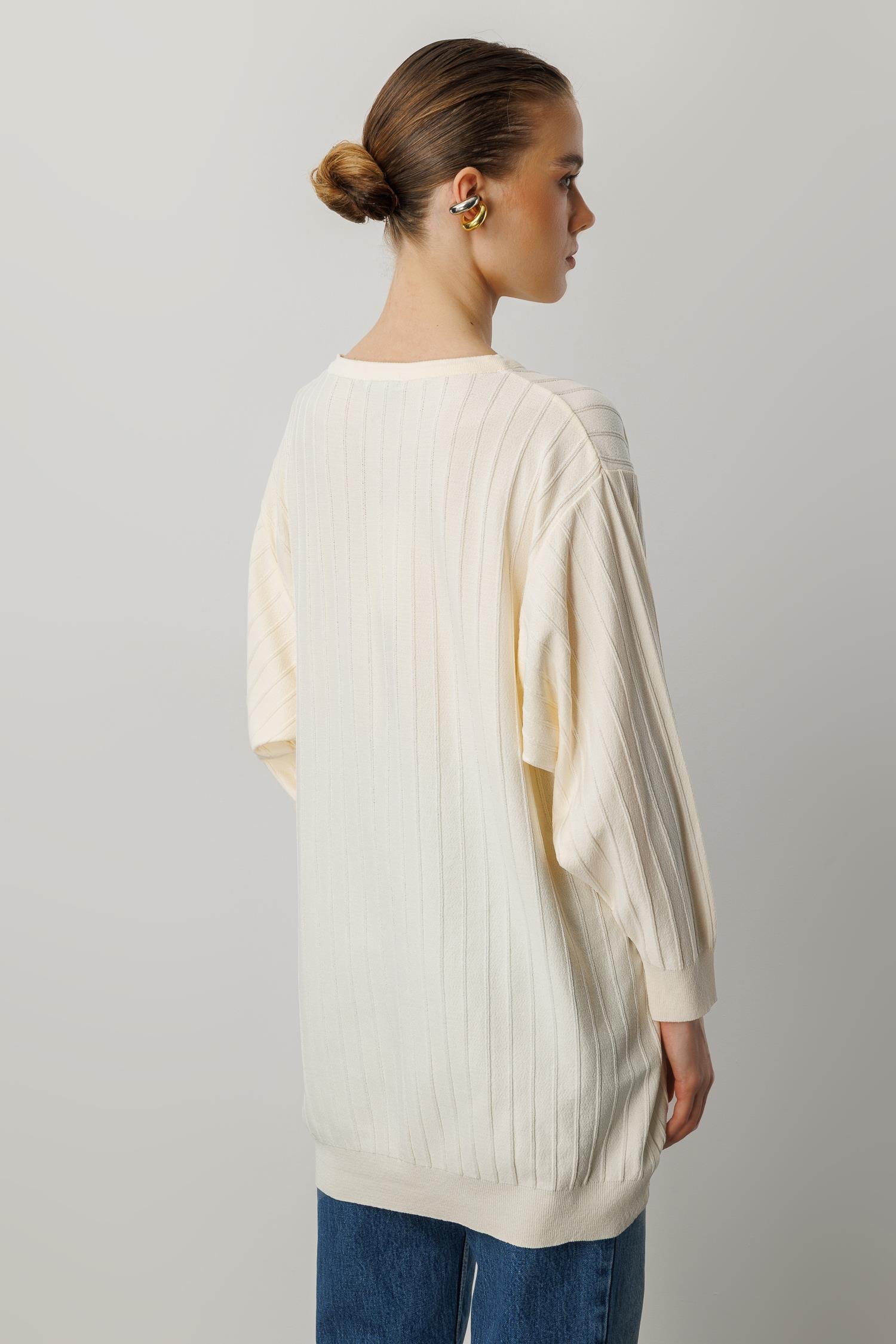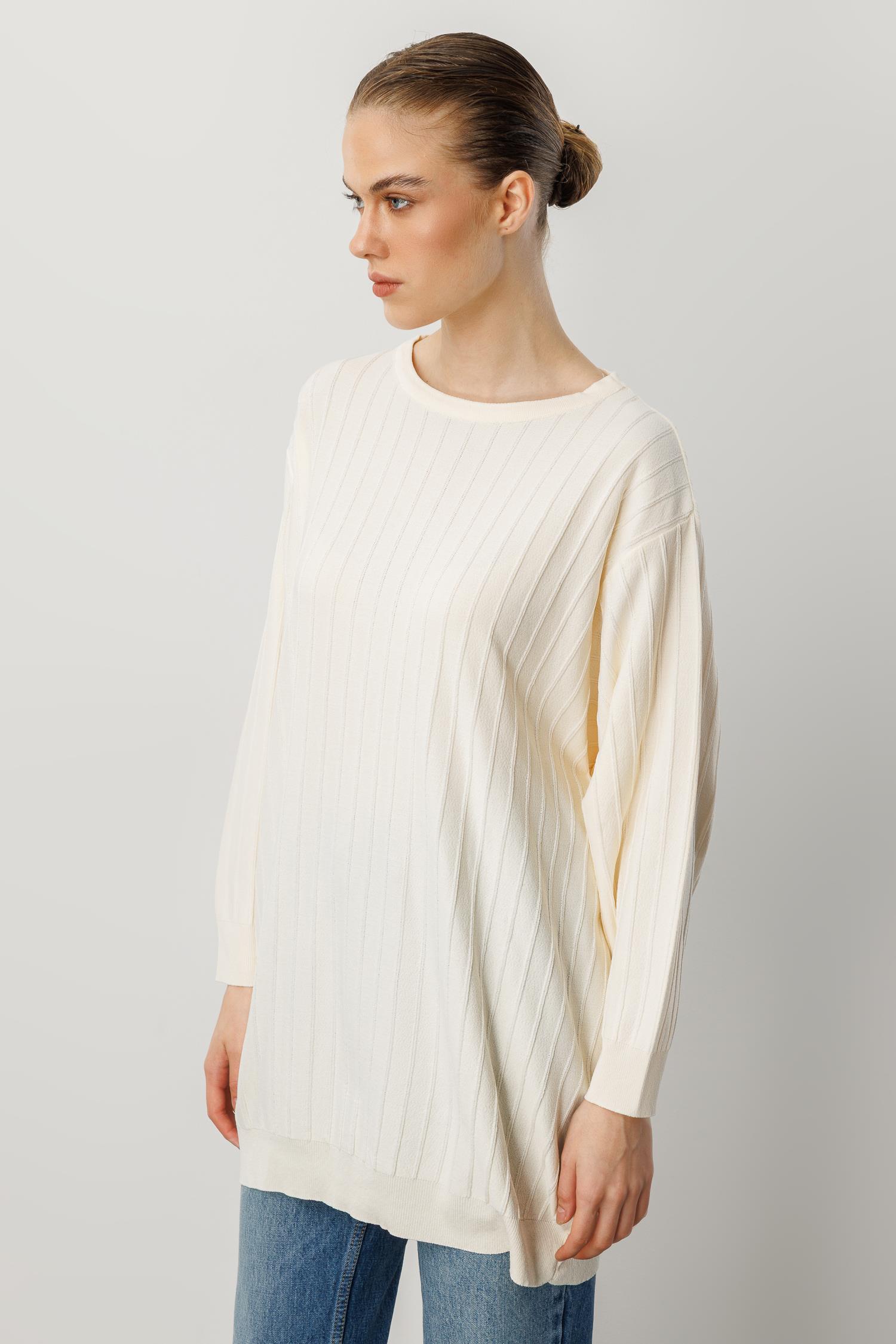 Çizgi Desen Pamuklu Triko Tunik-KREM (5WERN006560_13)