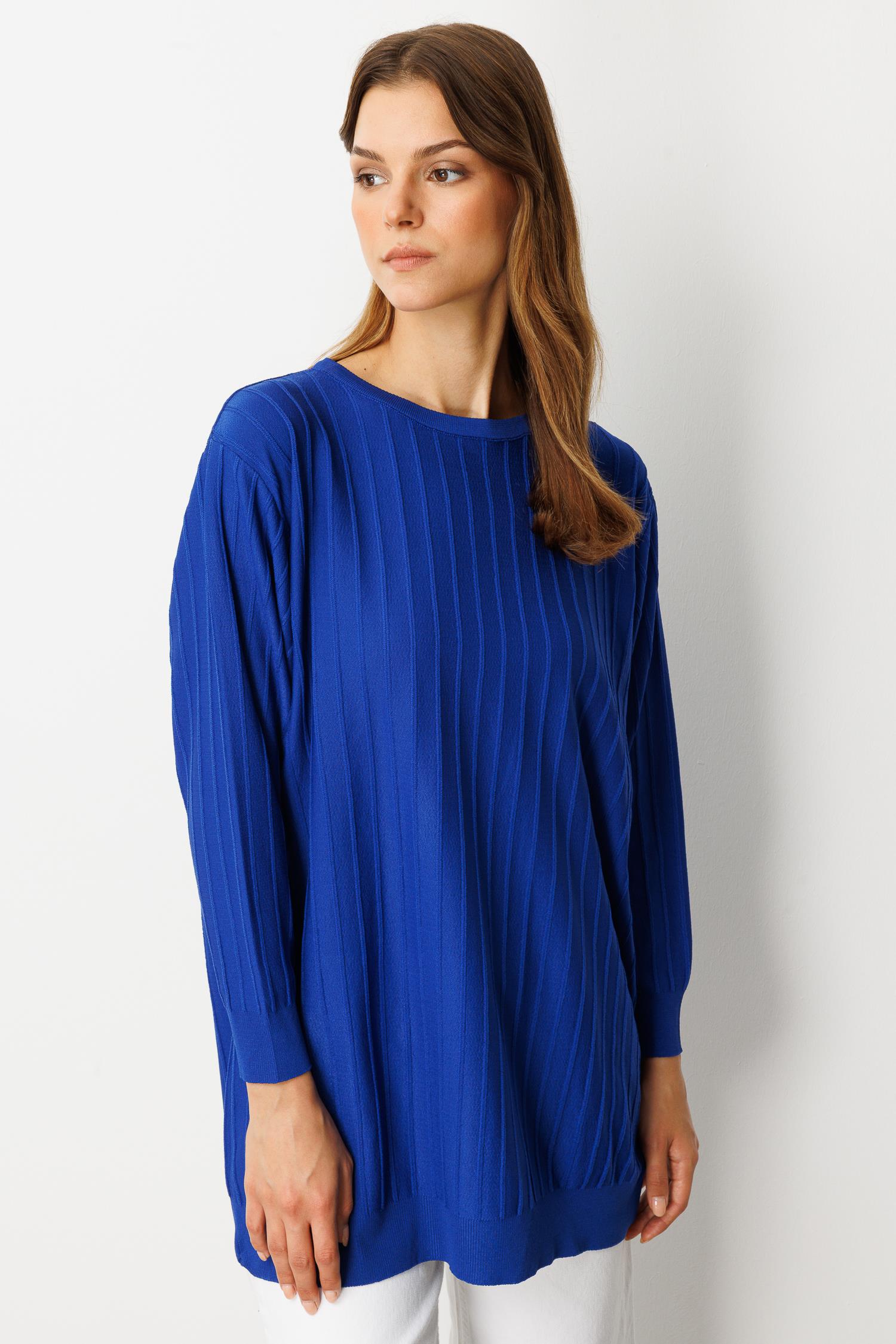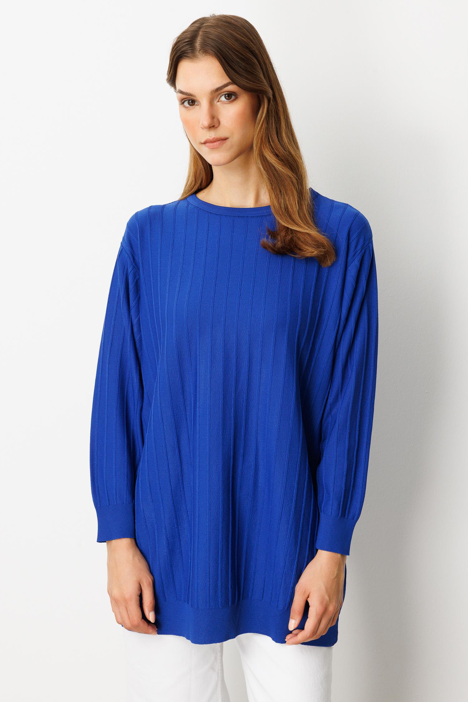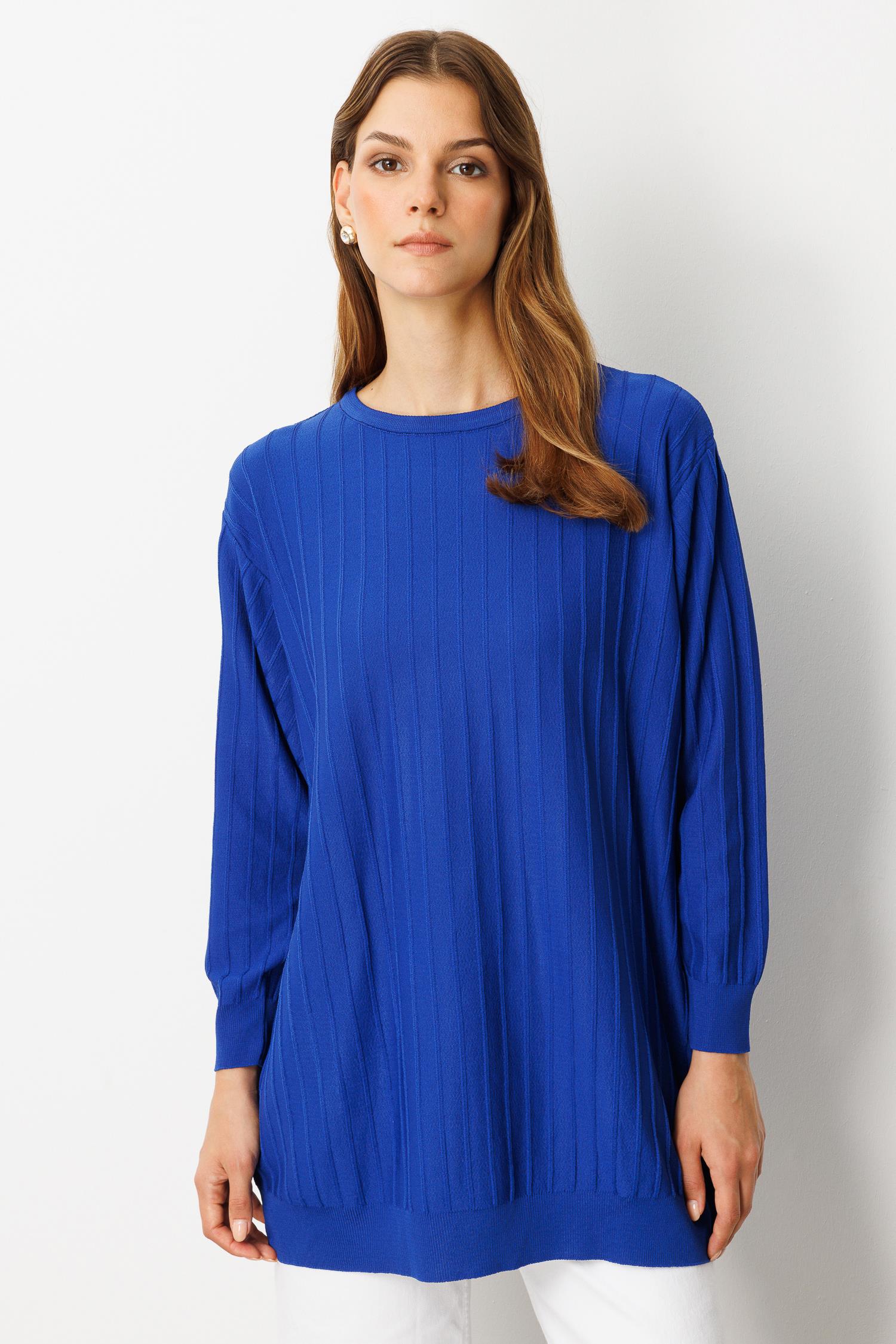 Çizgi Desen Pamuklu Triko Tunik-SAX (5WERN006560_59)