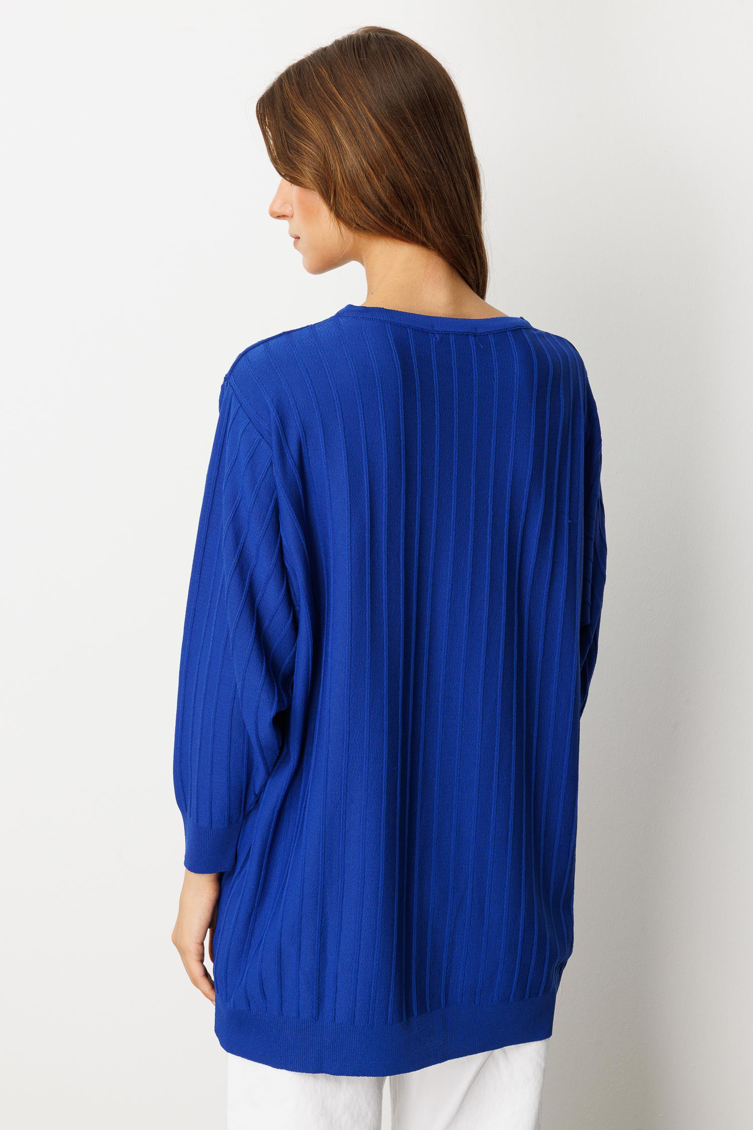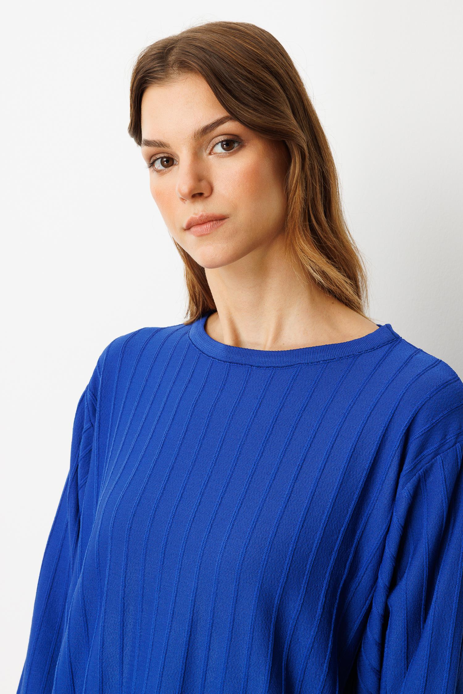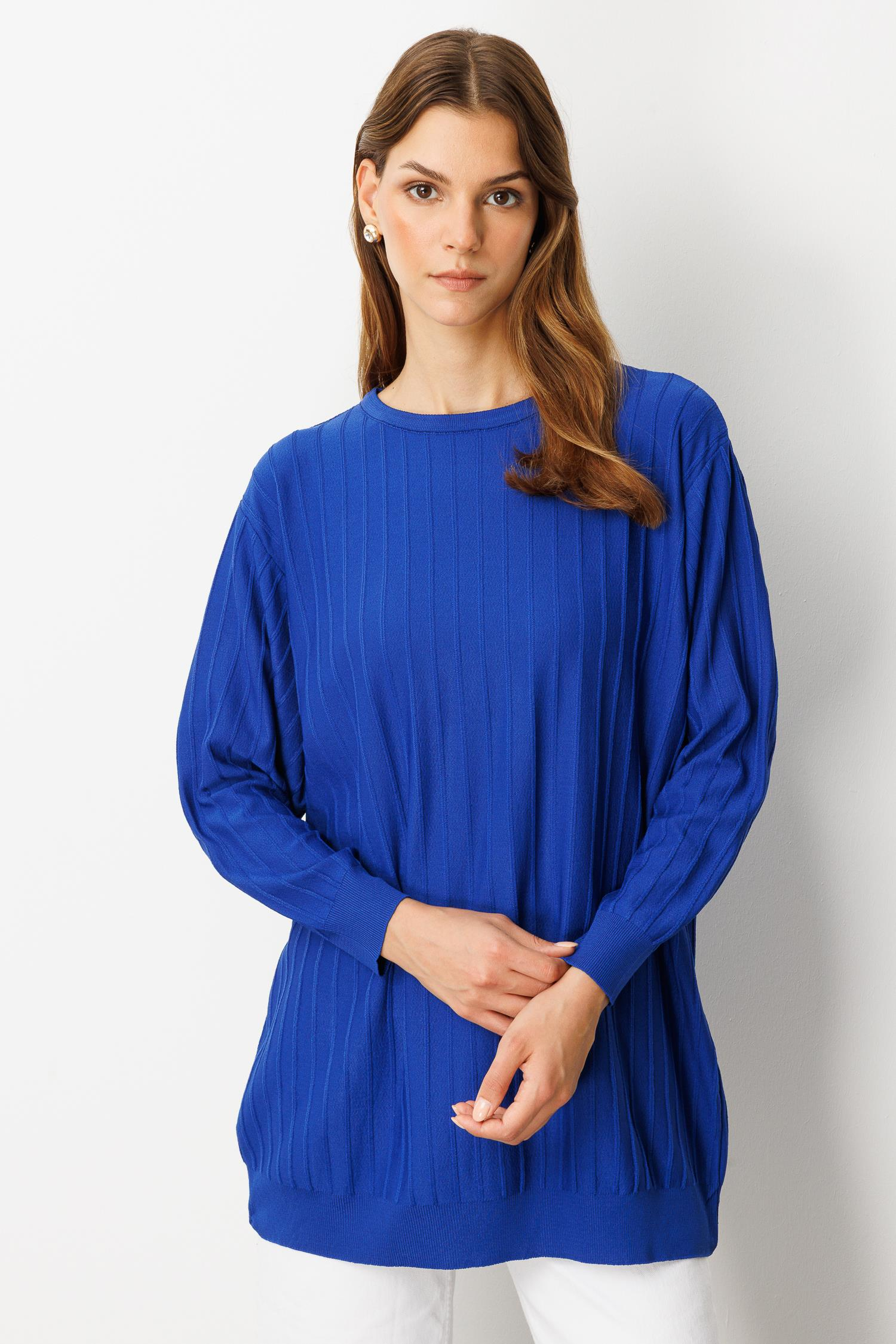 Çizgi Desen Pamuklu Triko Tunik-SAX (5WERN006560_59)