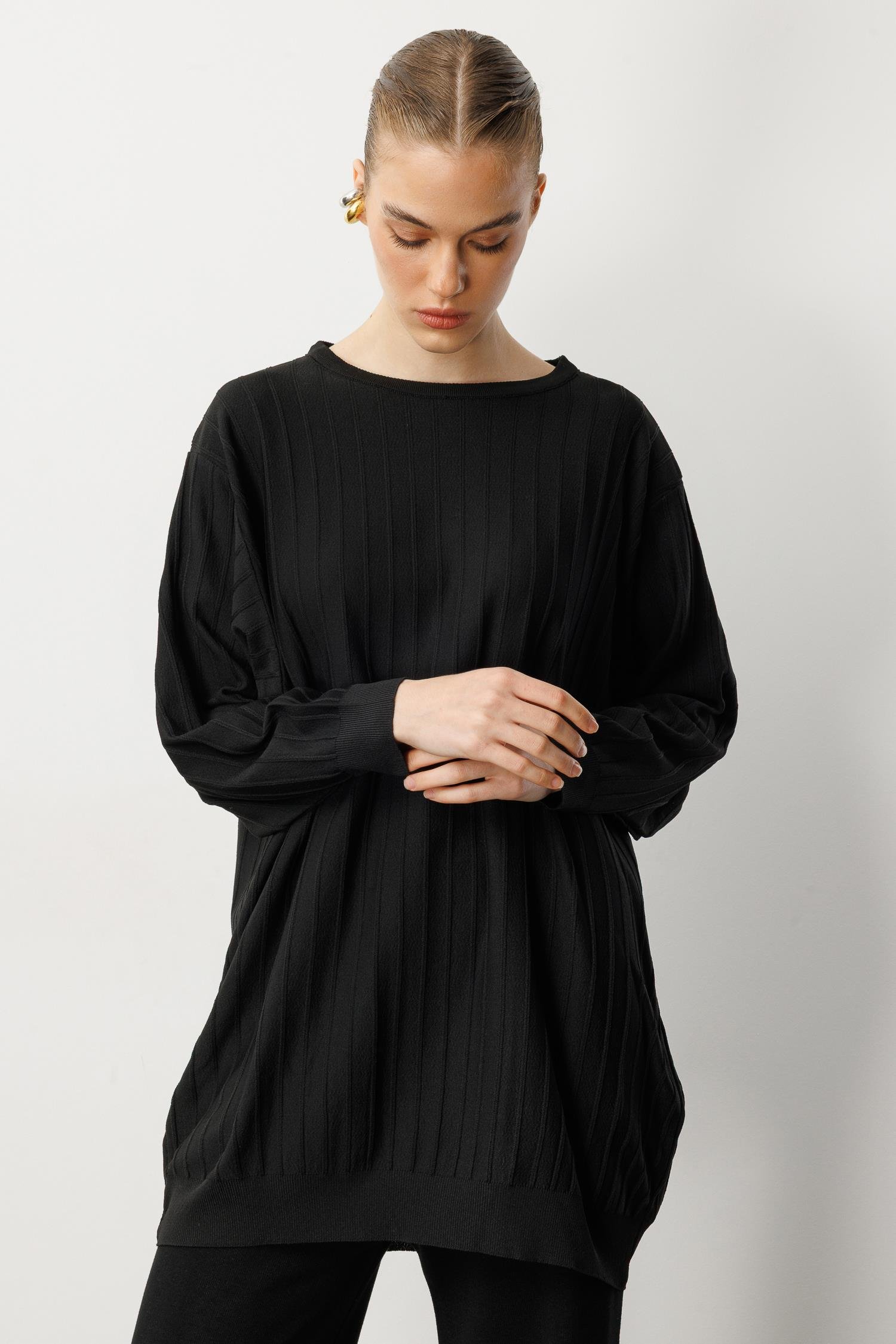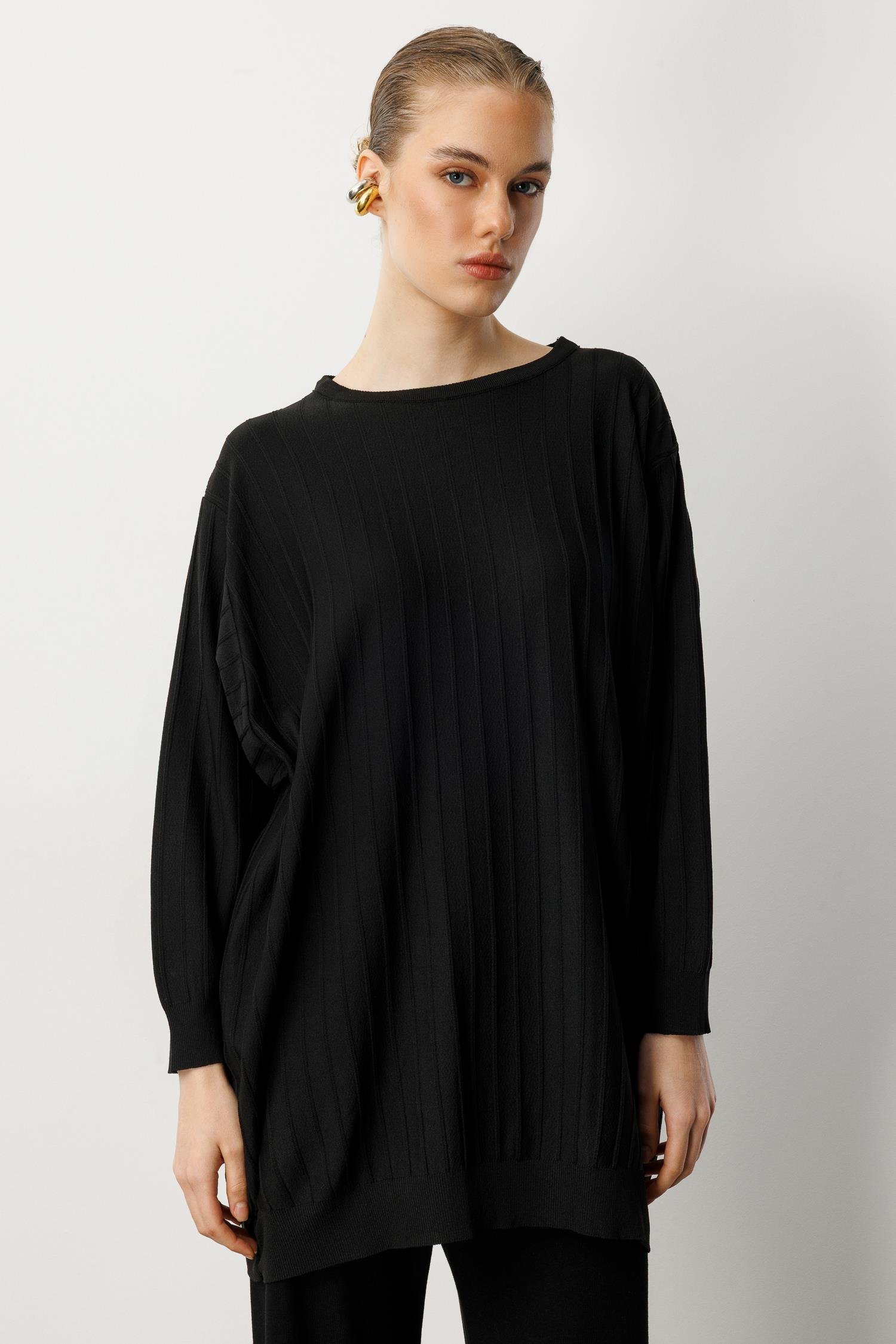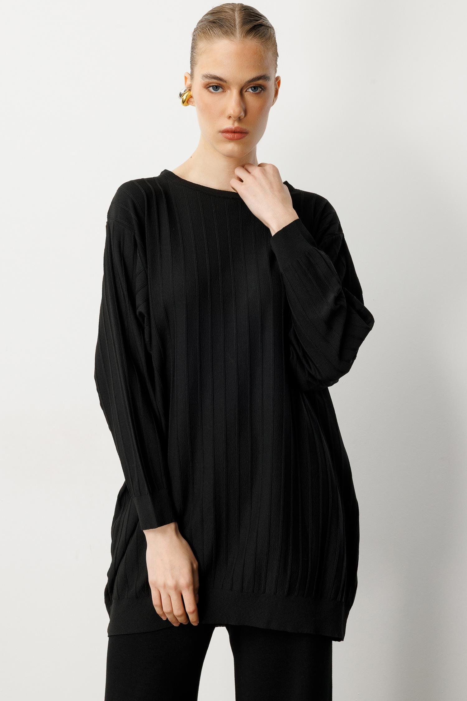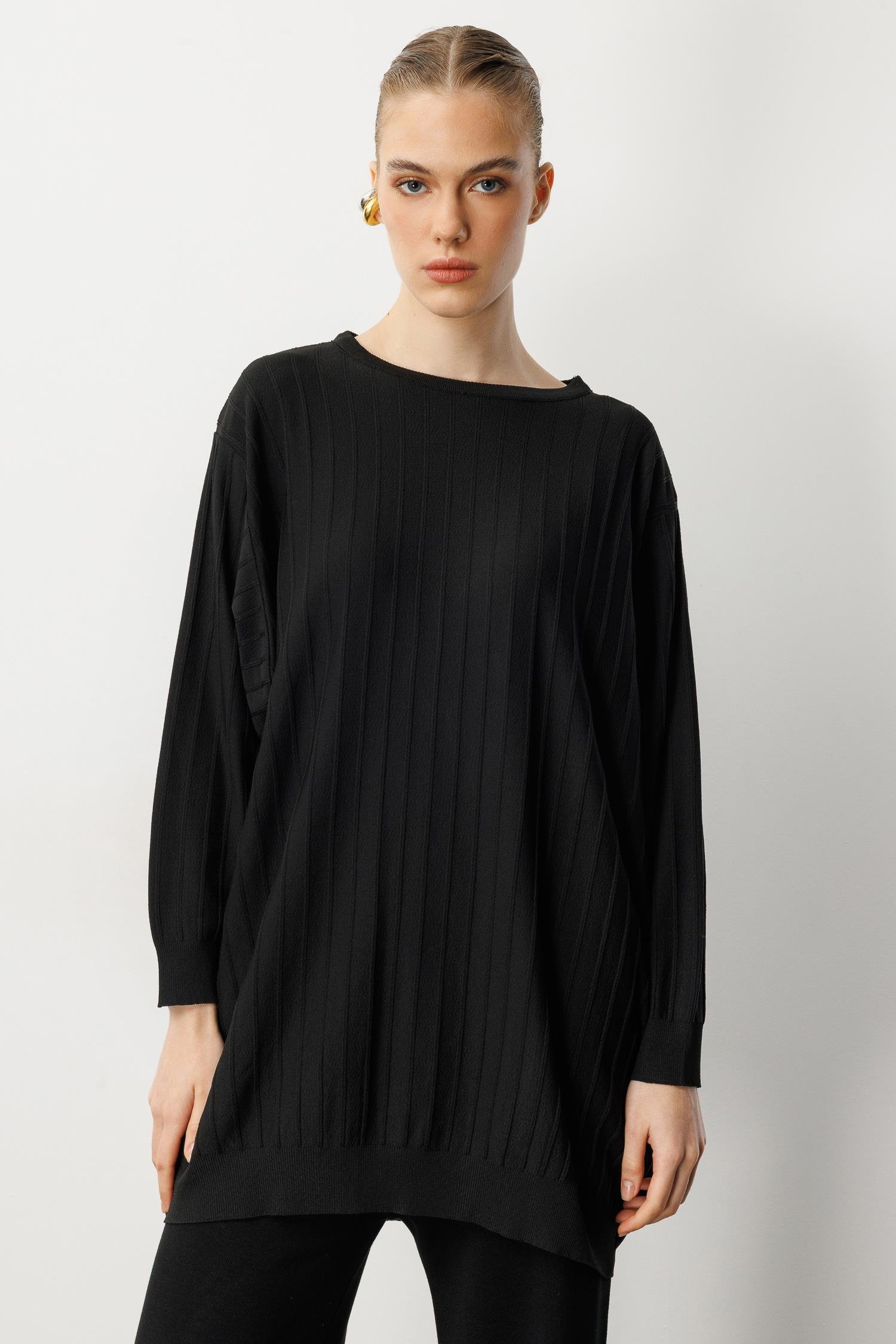 Çizgi Desen Pamuklu Triko Tunik-SİYAH (5WERN006560_01)