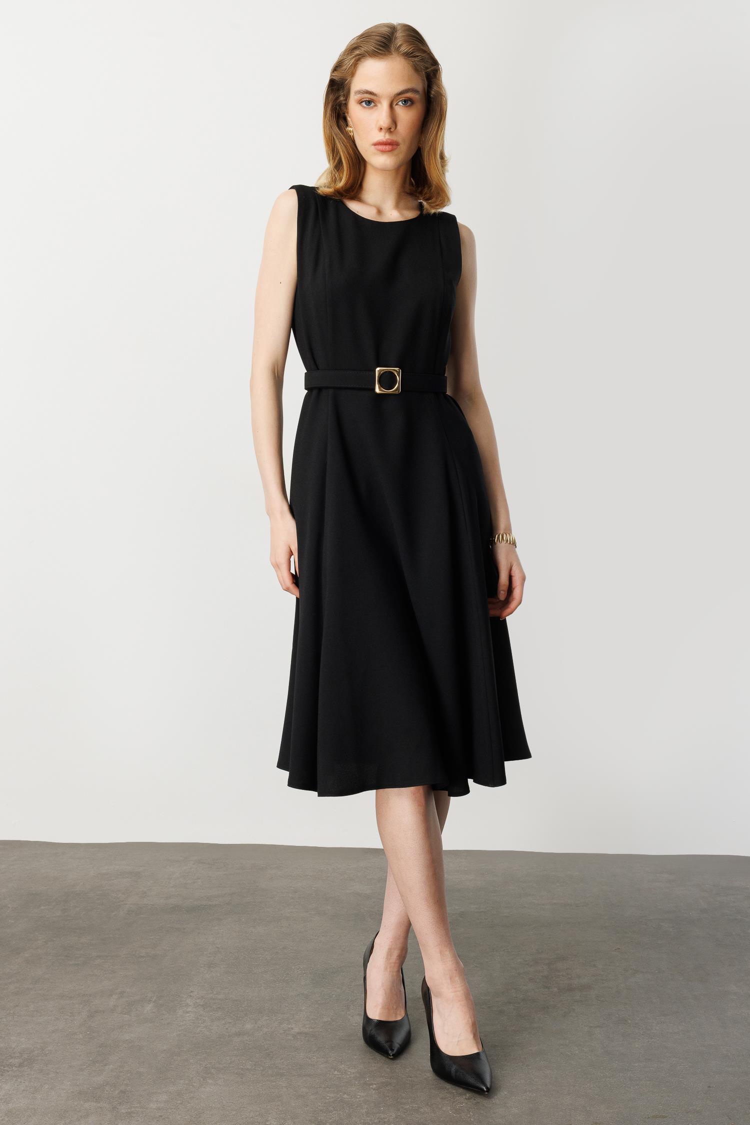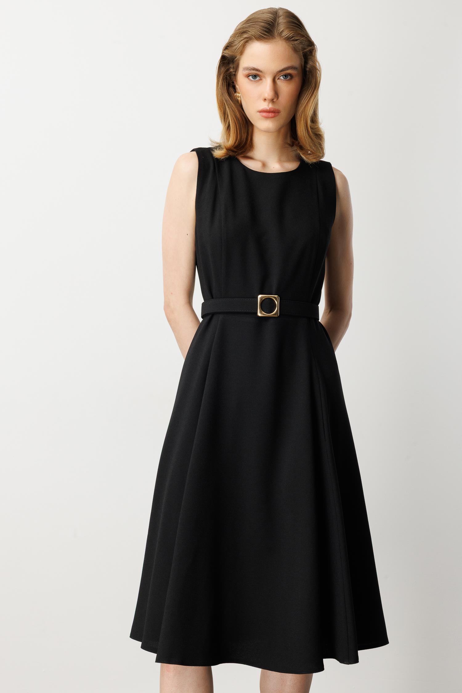 Cep Detaylı Kolsuz Krep Elbise-SİYAH (5WKB51K1520_01)