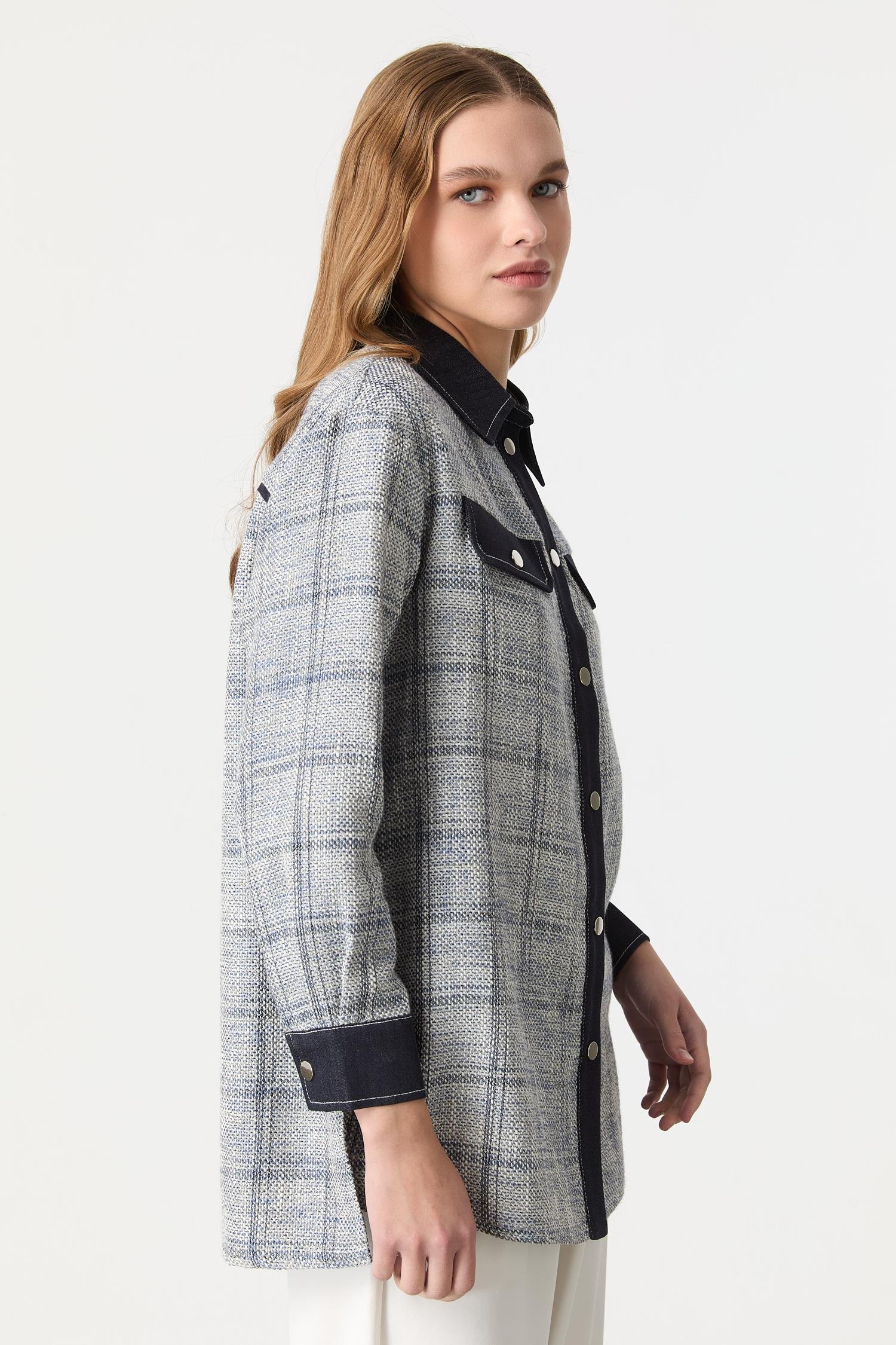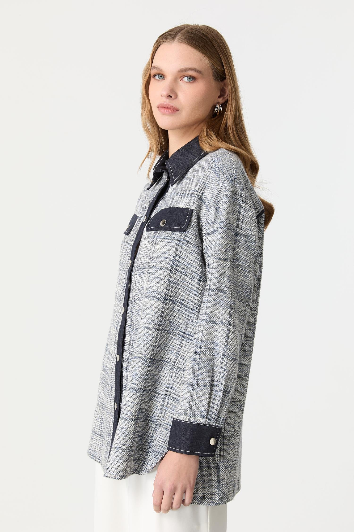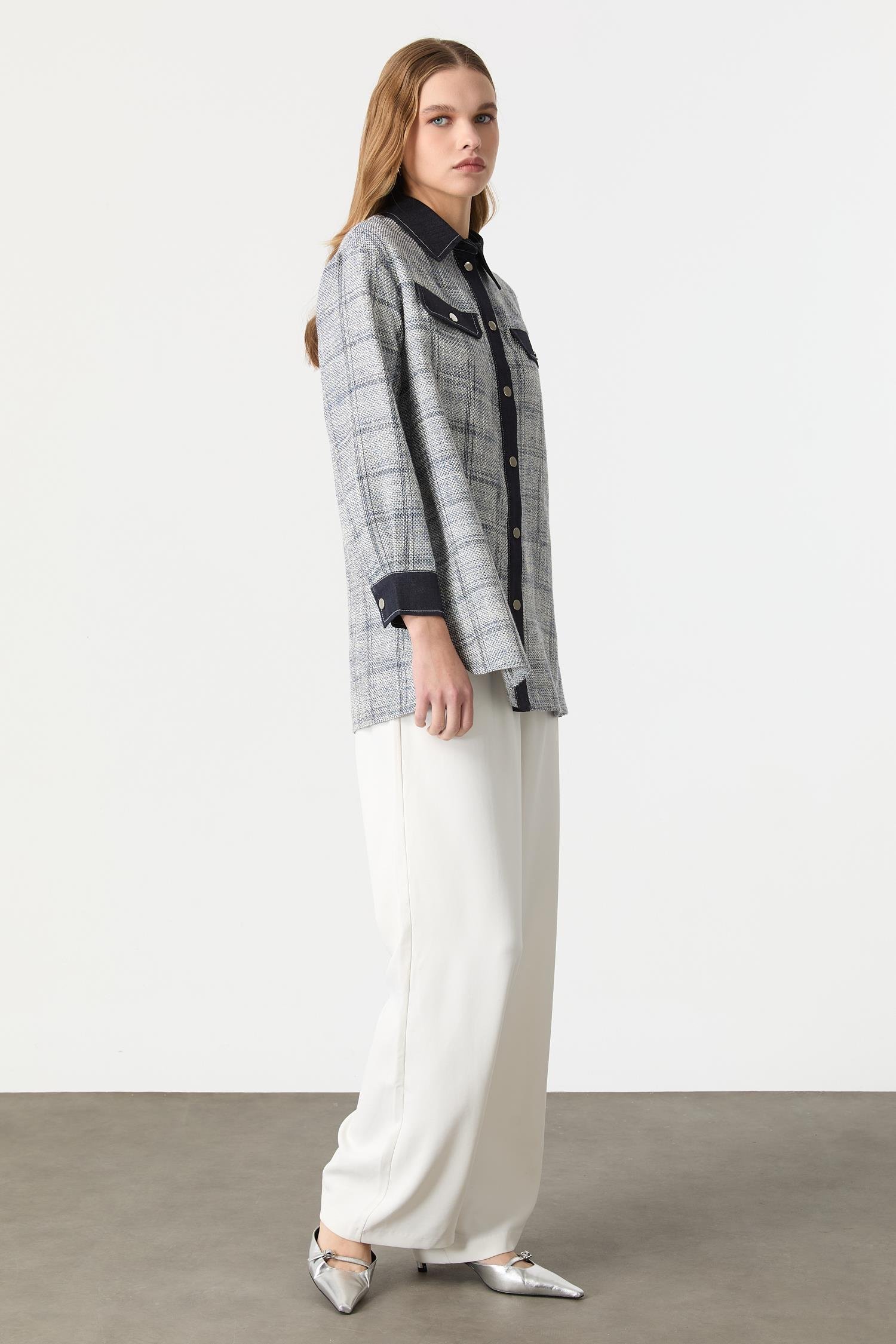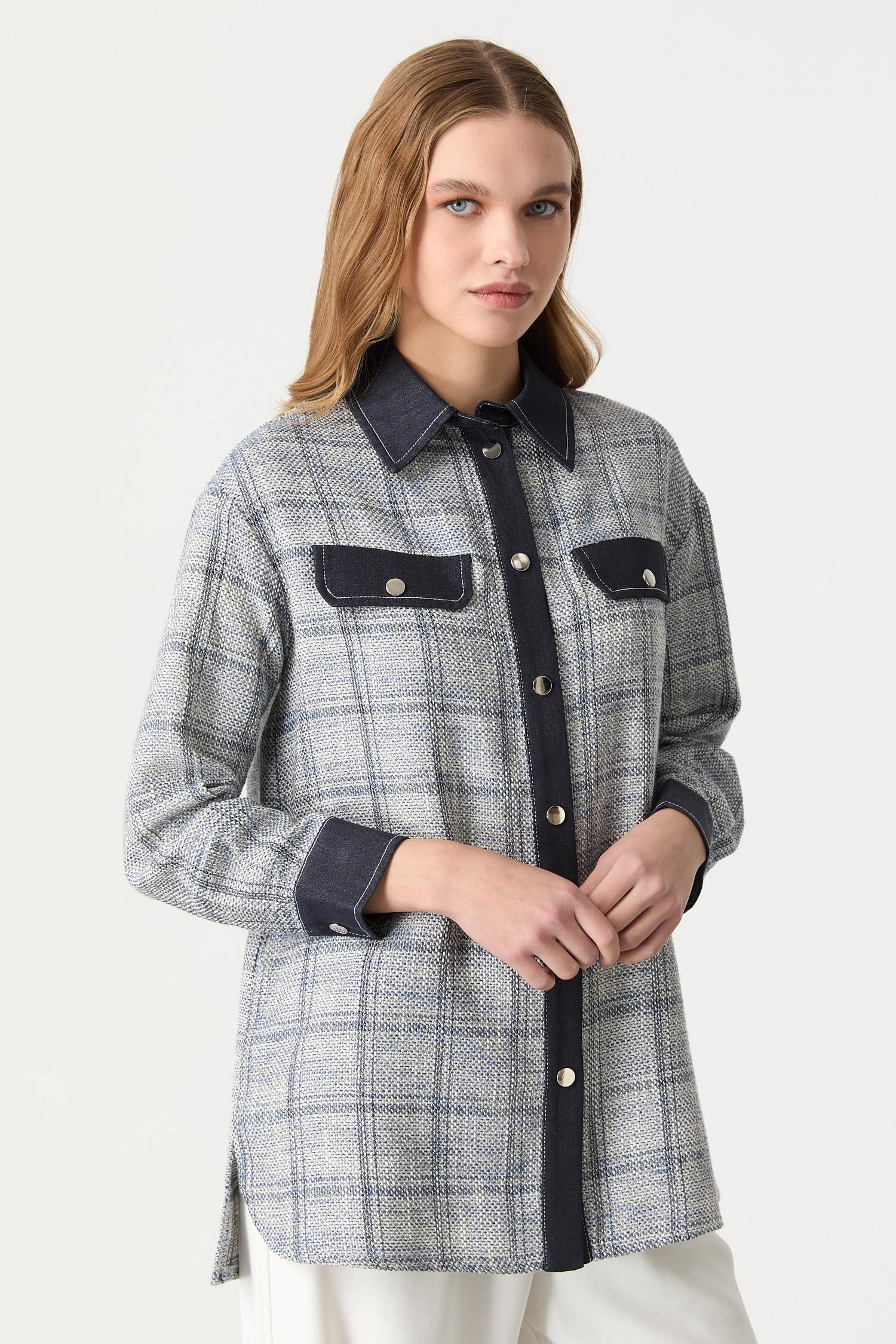 Kot Detaylı Ekose Gömlek-MAVİ (5WKB81K1986_15)