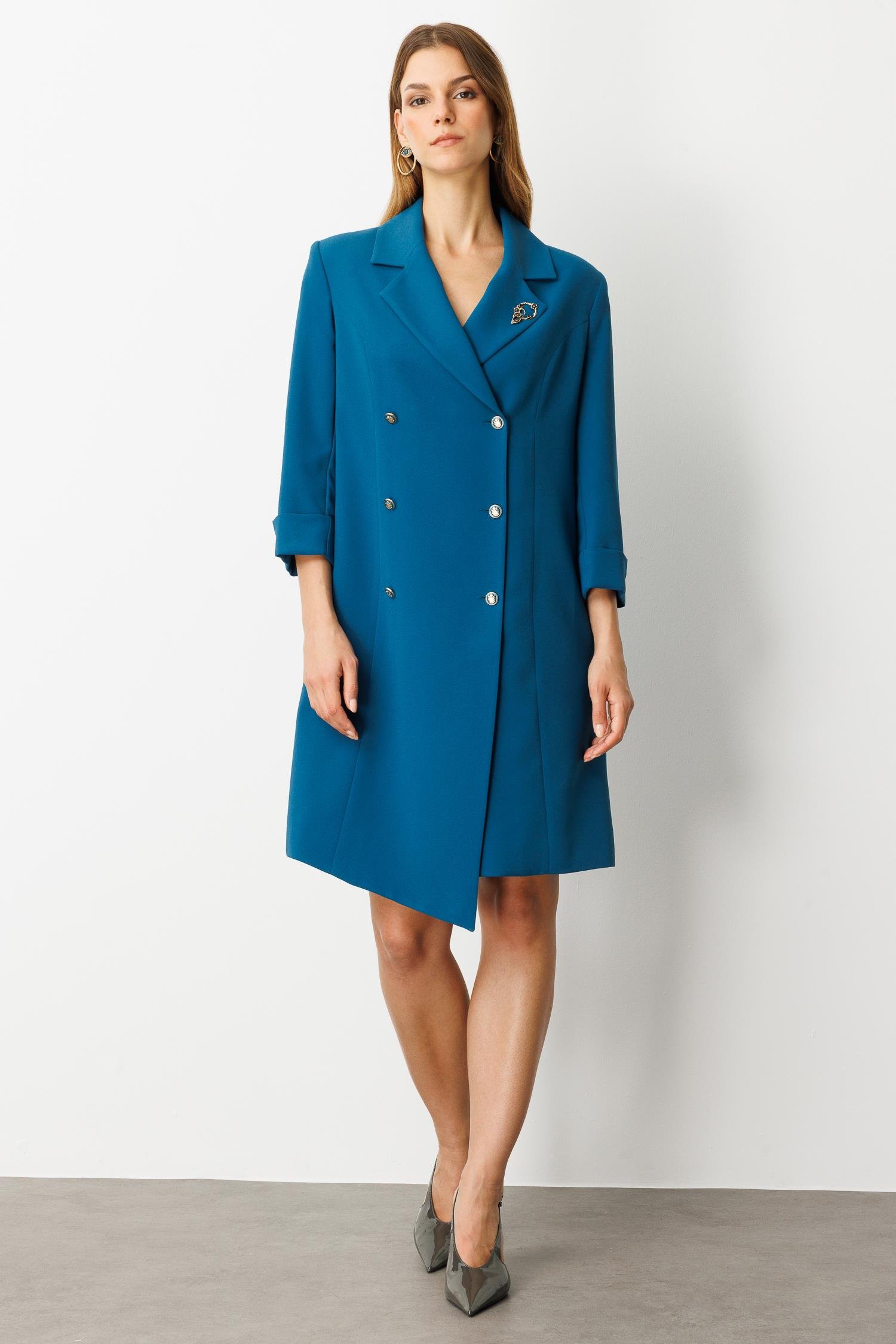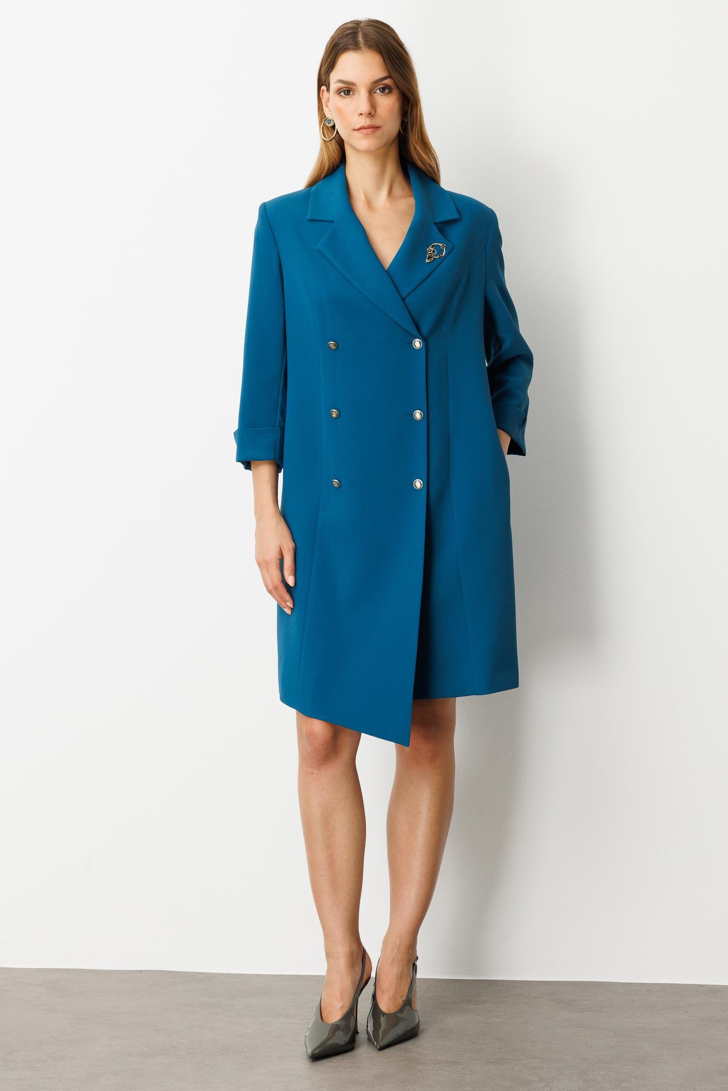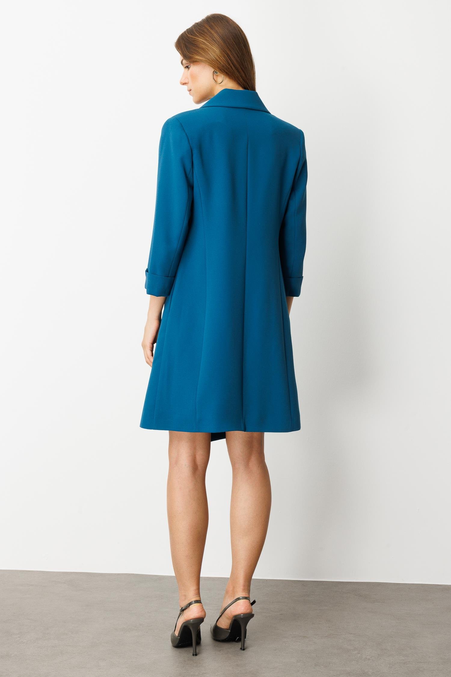 Kruvaze Yaka Düğmeli Ceket Elbise-SİYAH-PETROL (5WKB41K1516_56)