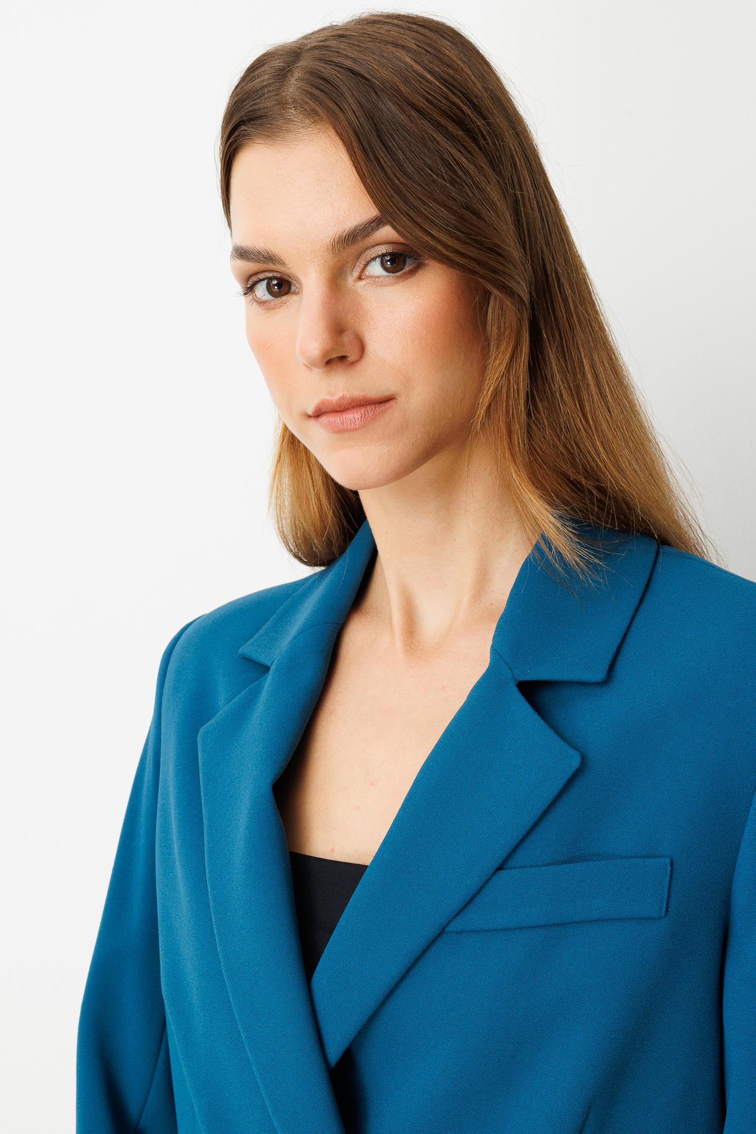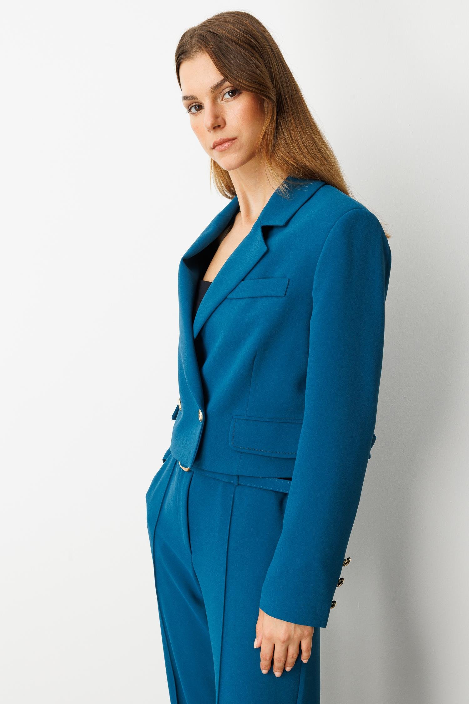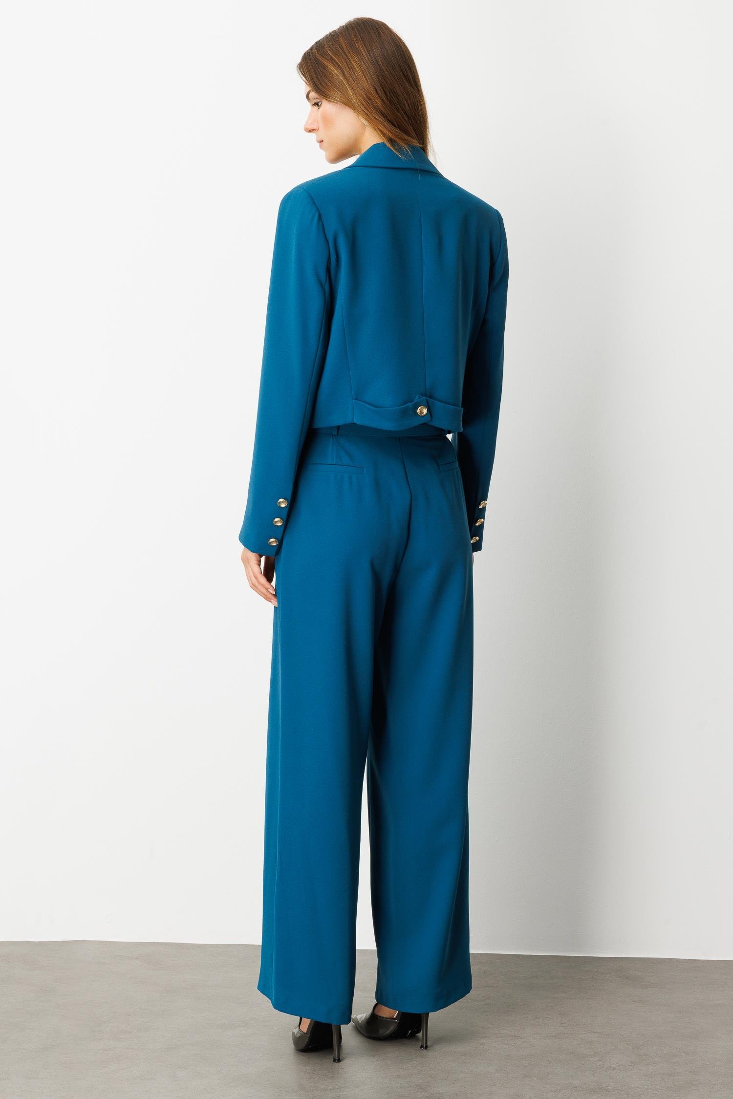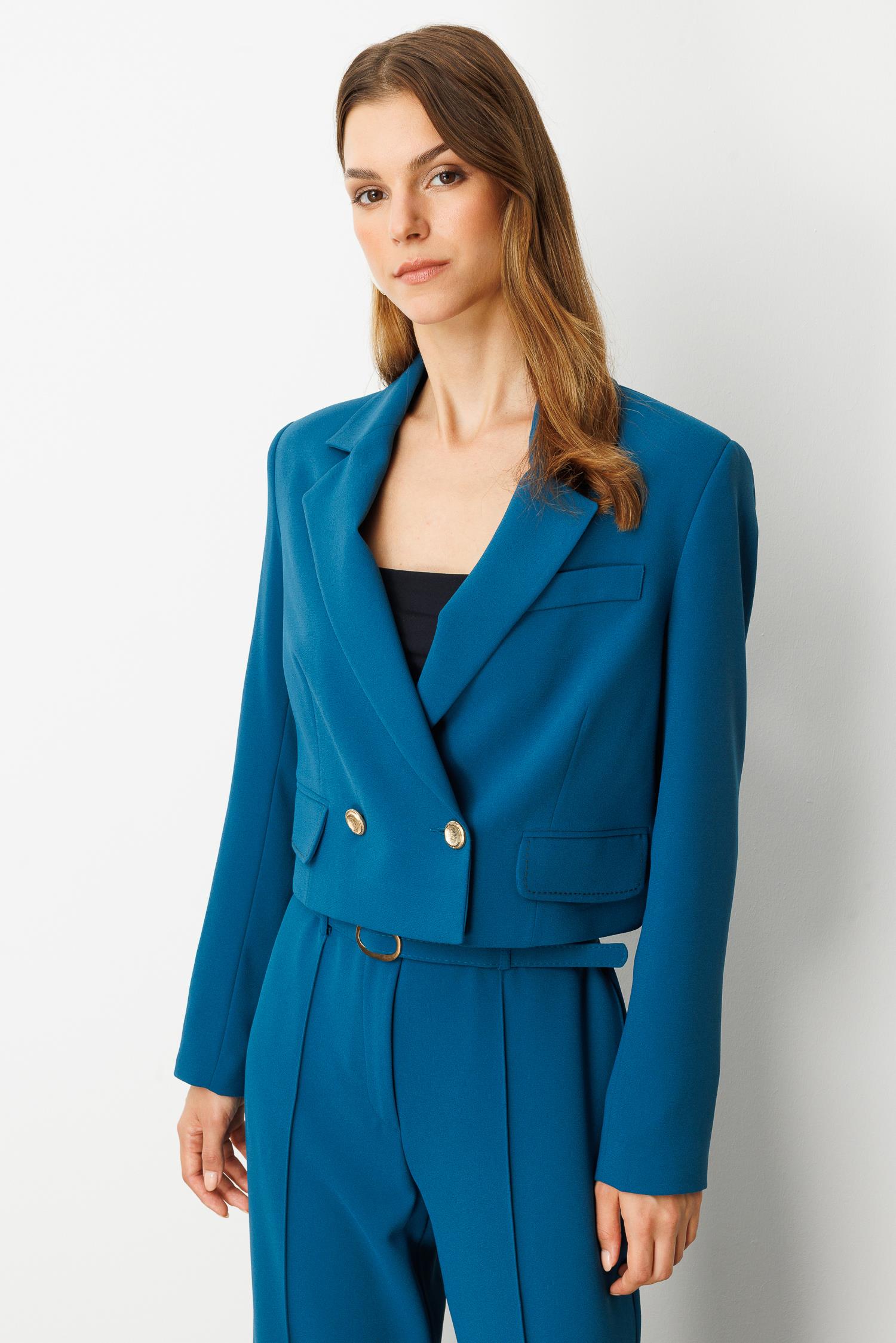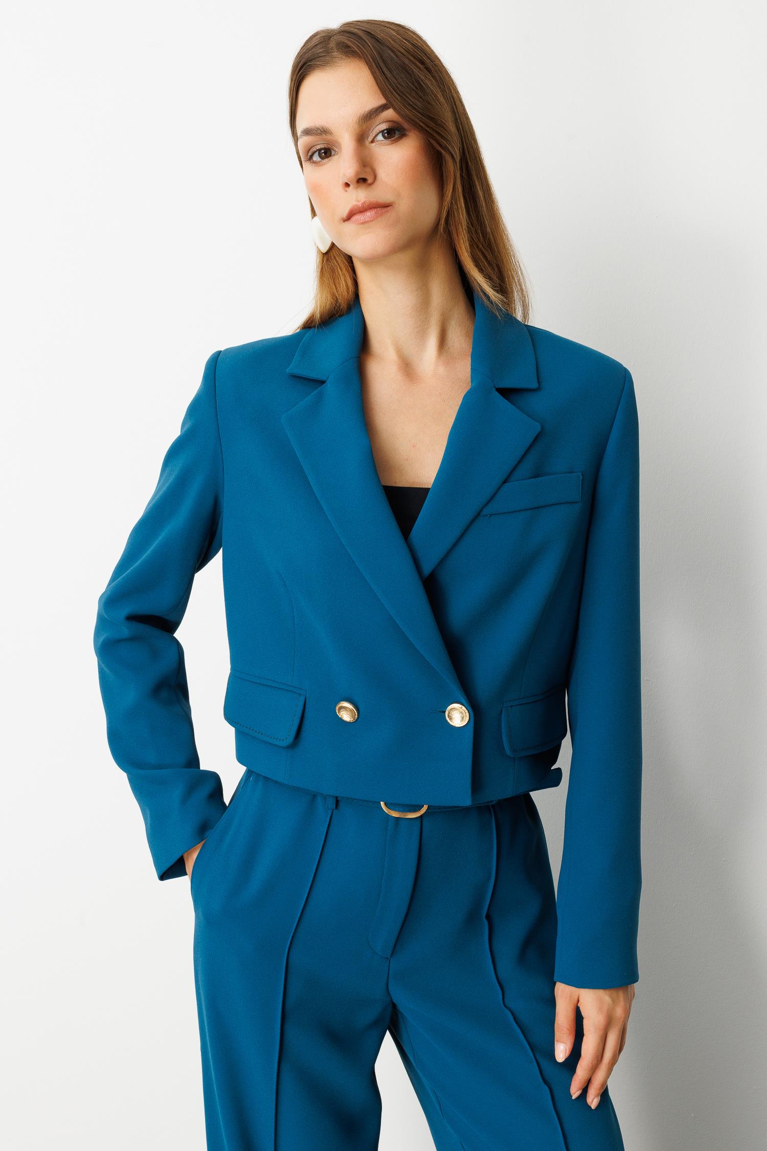 Kruvaze Yaka Kısa Ceket-PETROL (5WKB41K1360_56)