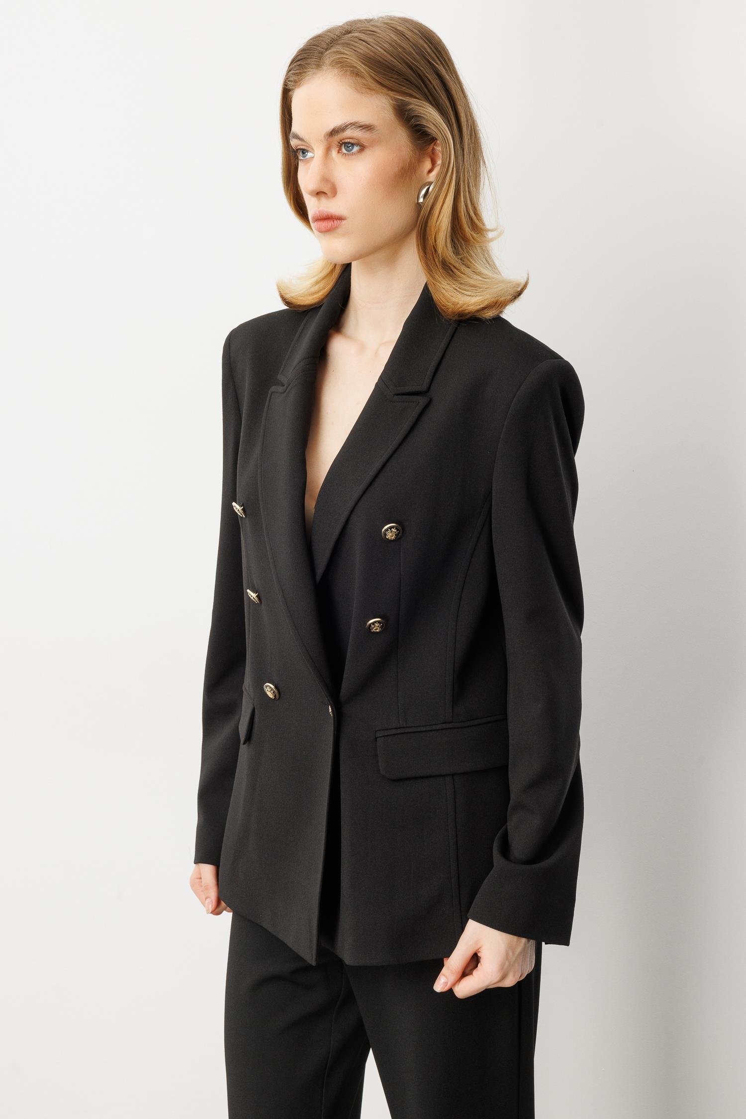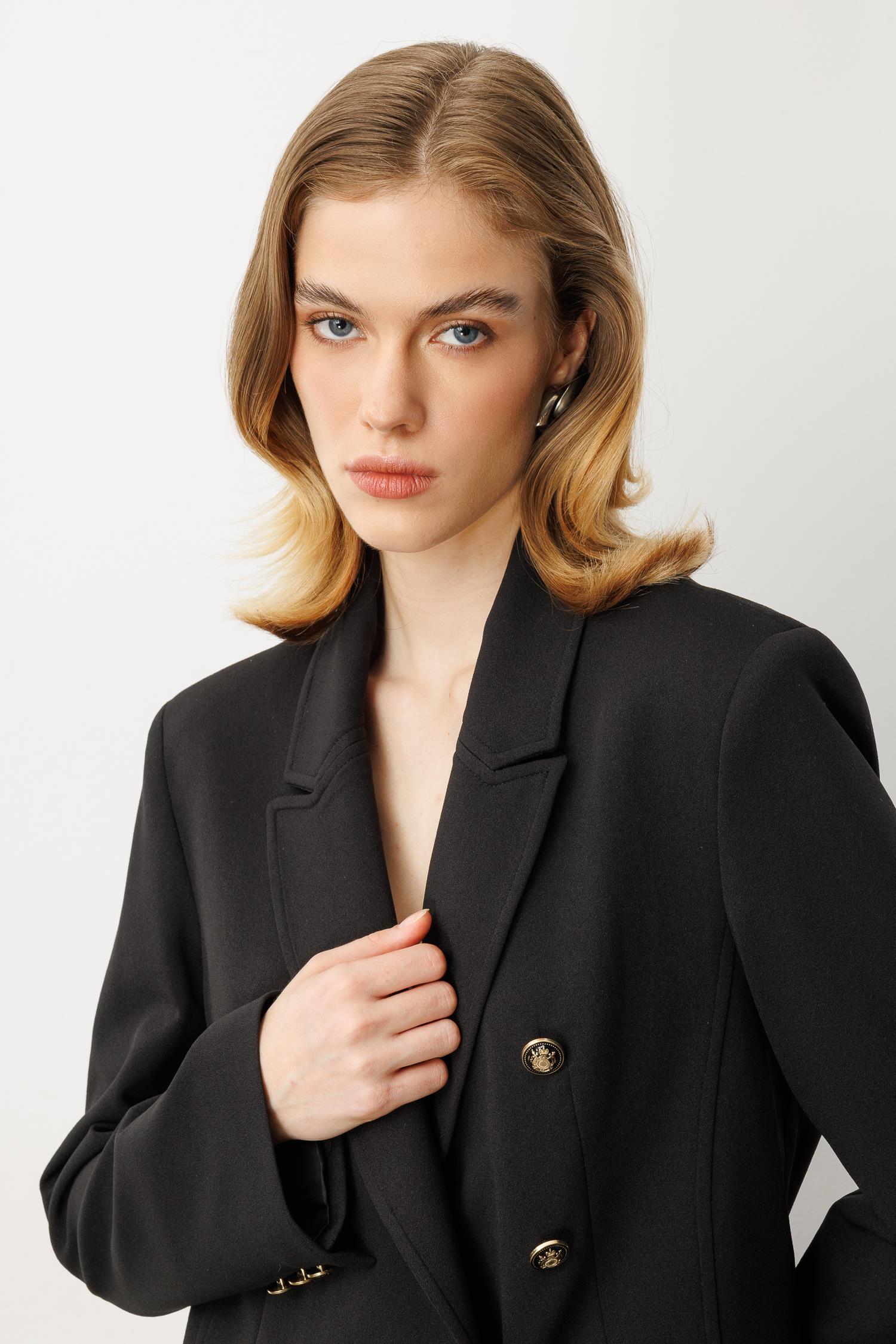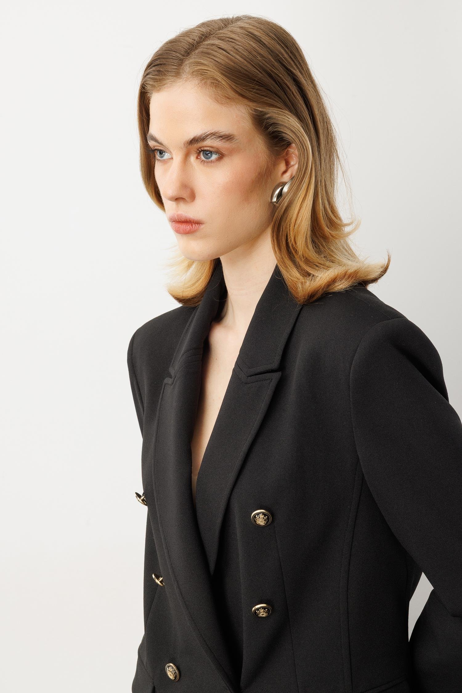 Kruvaze Yaka Krep Ceket-SİYAH (5WKB41K1517_01)