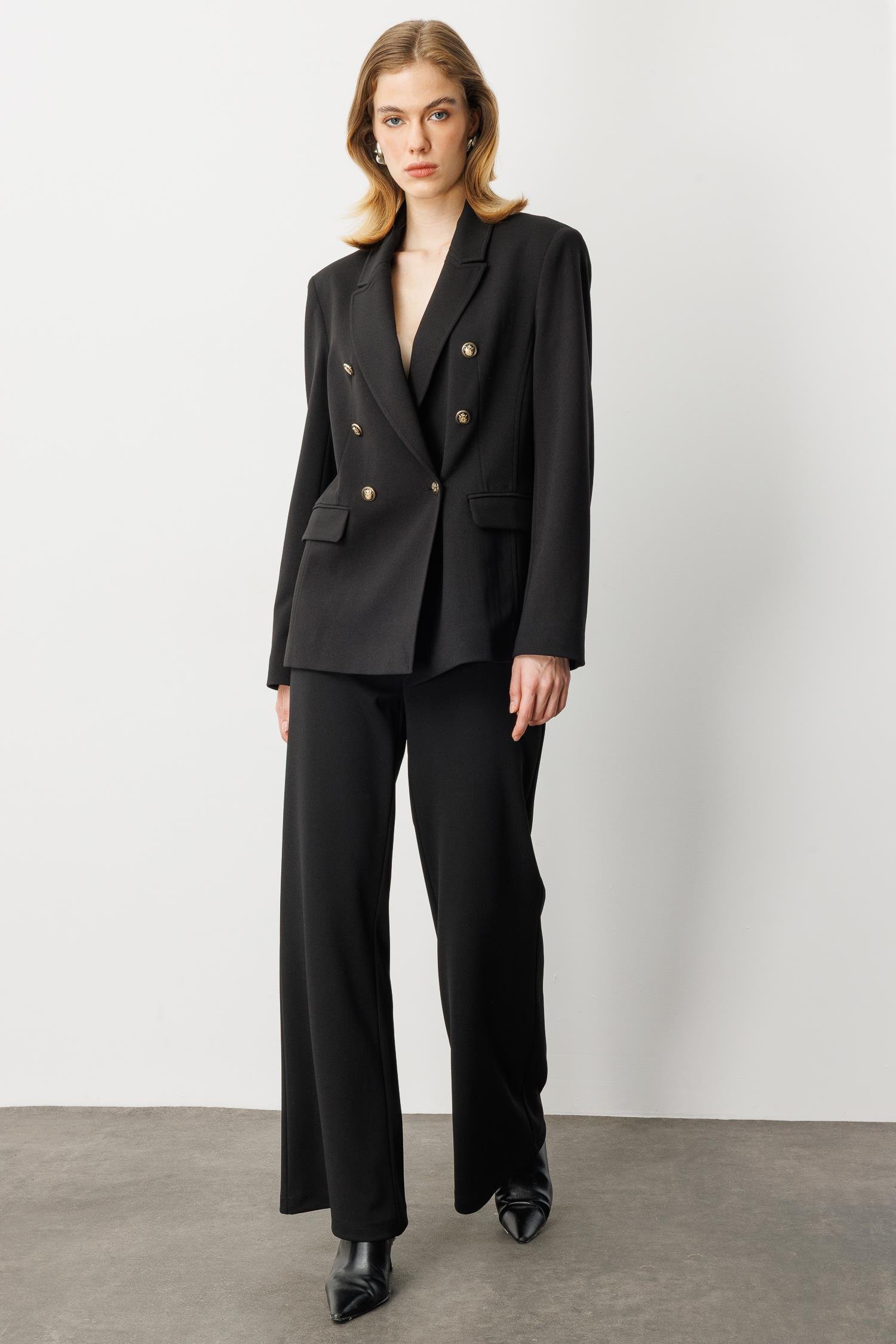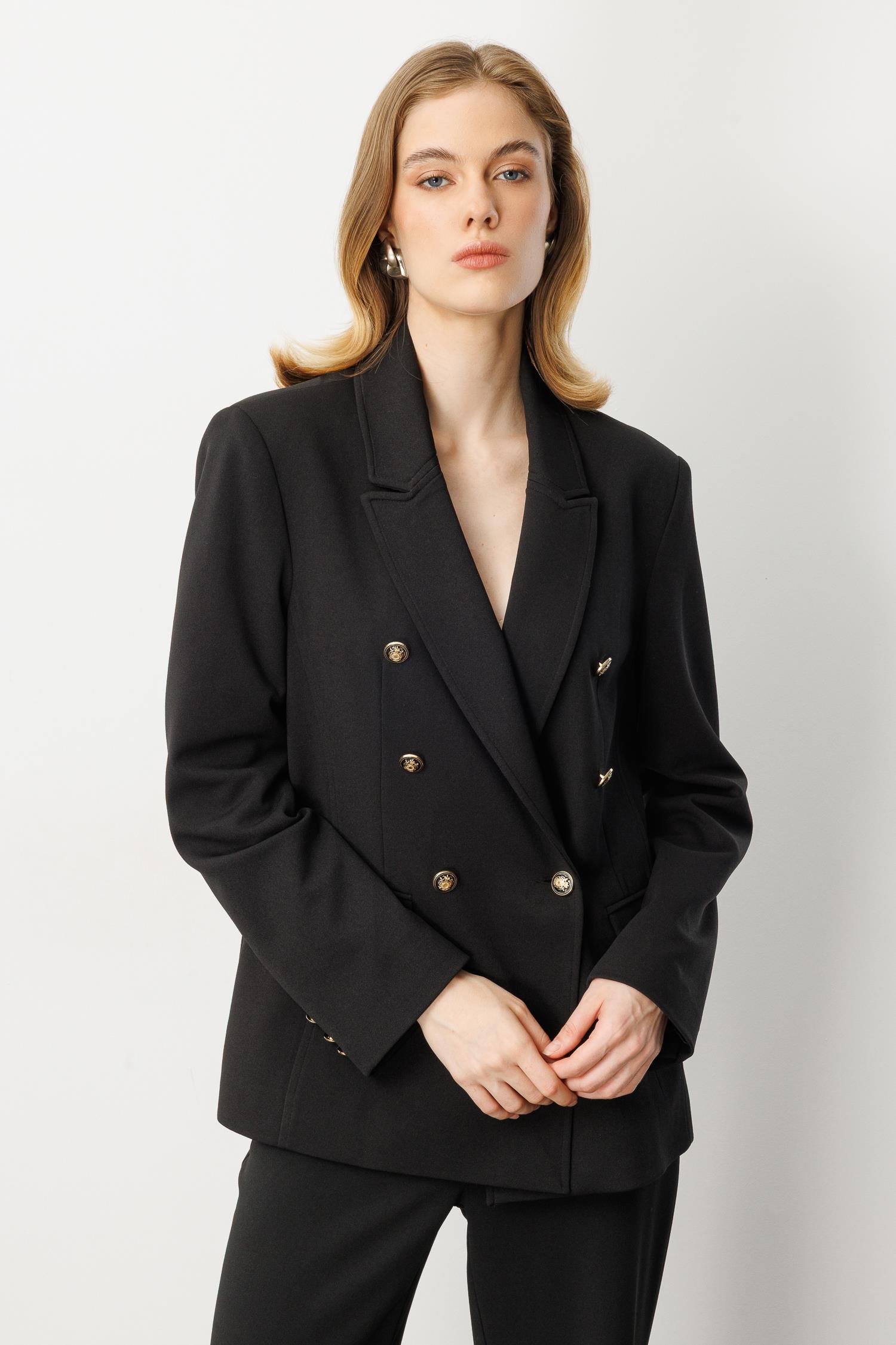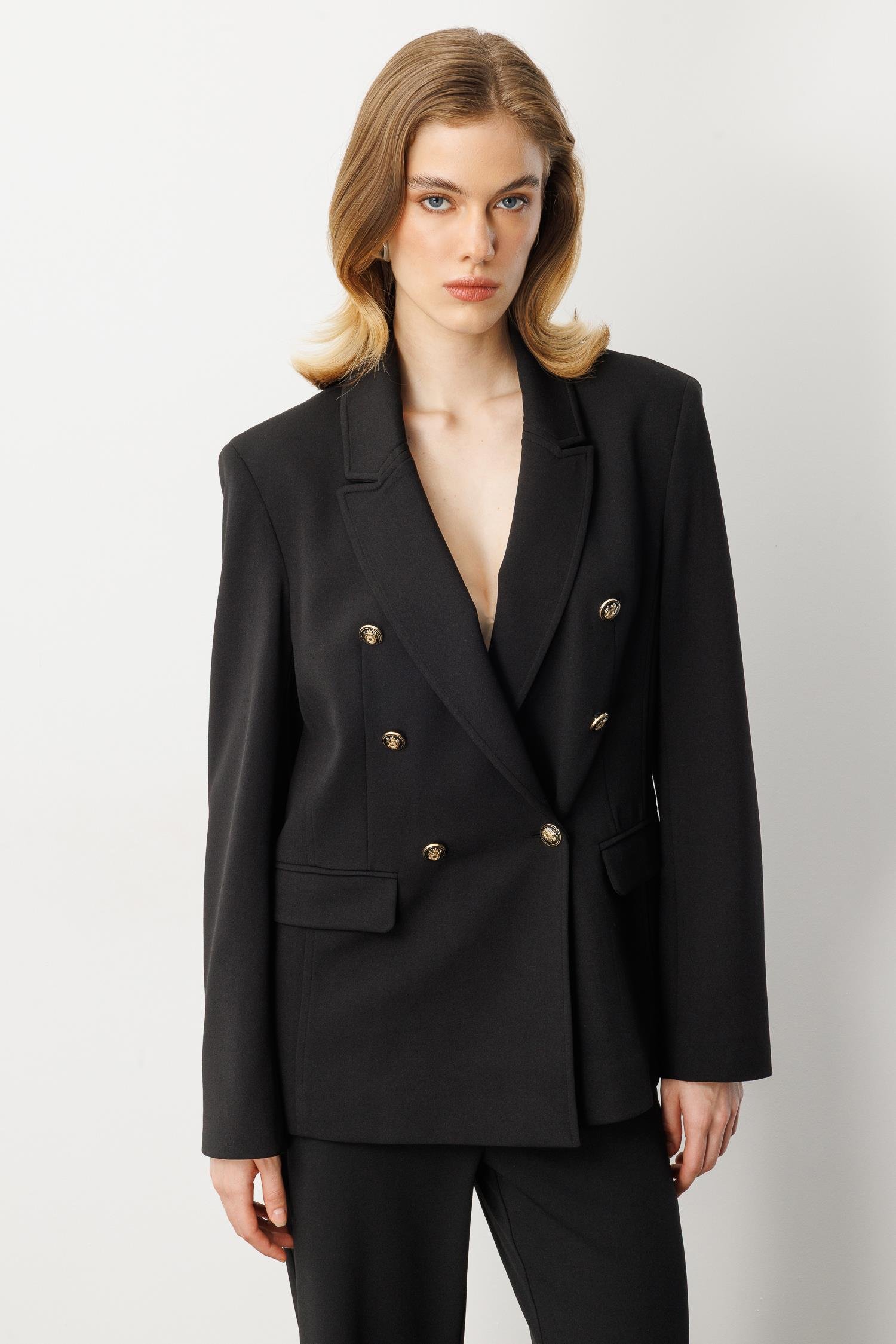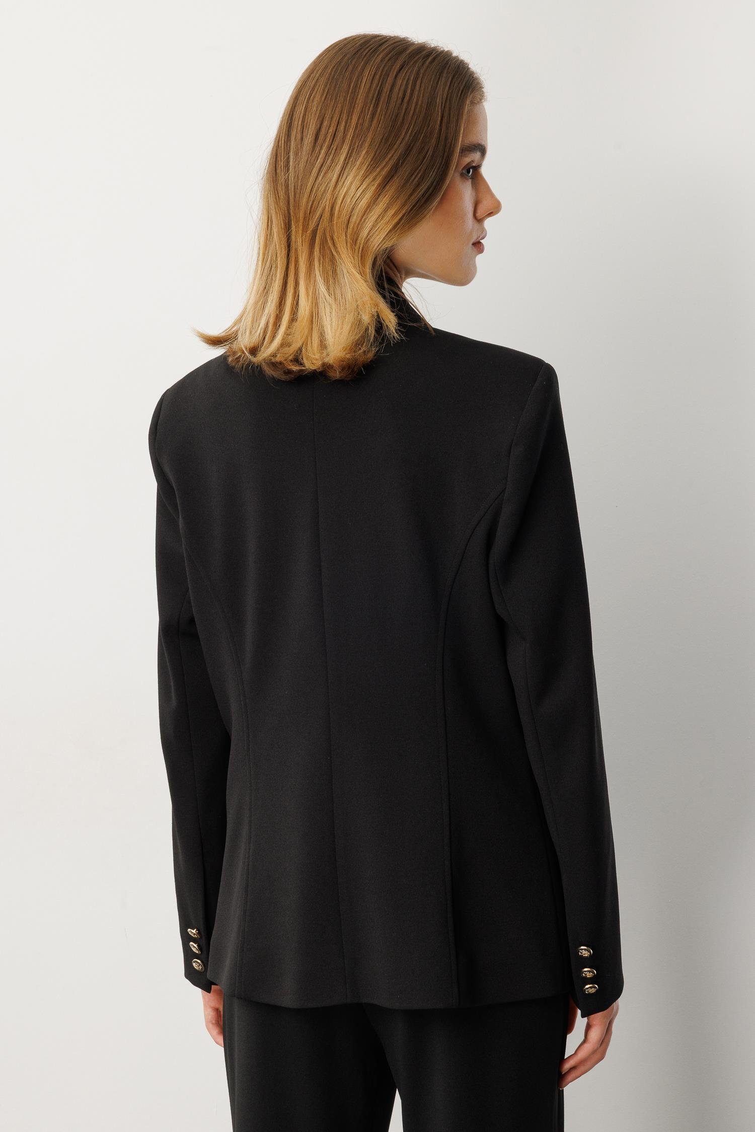 Kruvaze Yaka Krep Ceket-SİYAH (5WKB41K1517_01)
