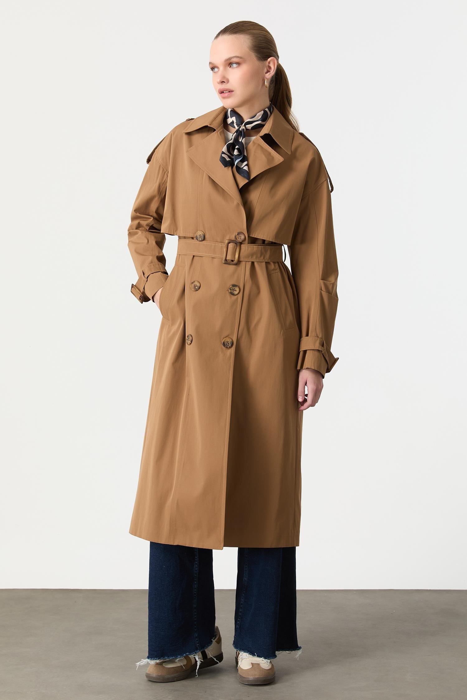 Kruvaze Yaka Uzun Kaşe Kaban-CAMEL (5WKB72K1387-24)
