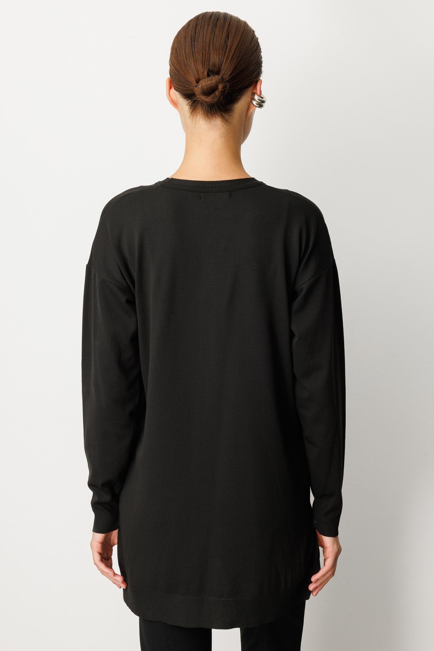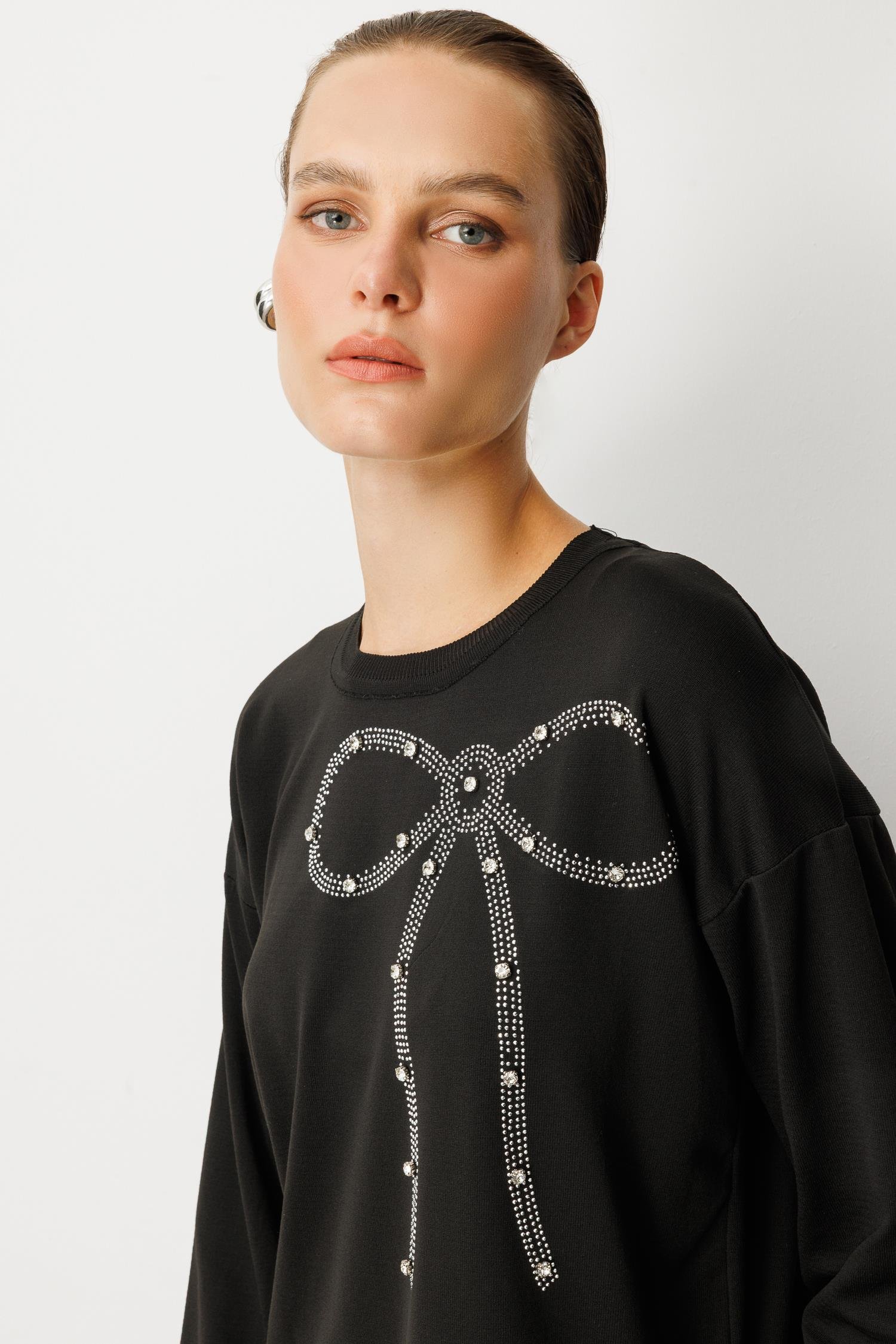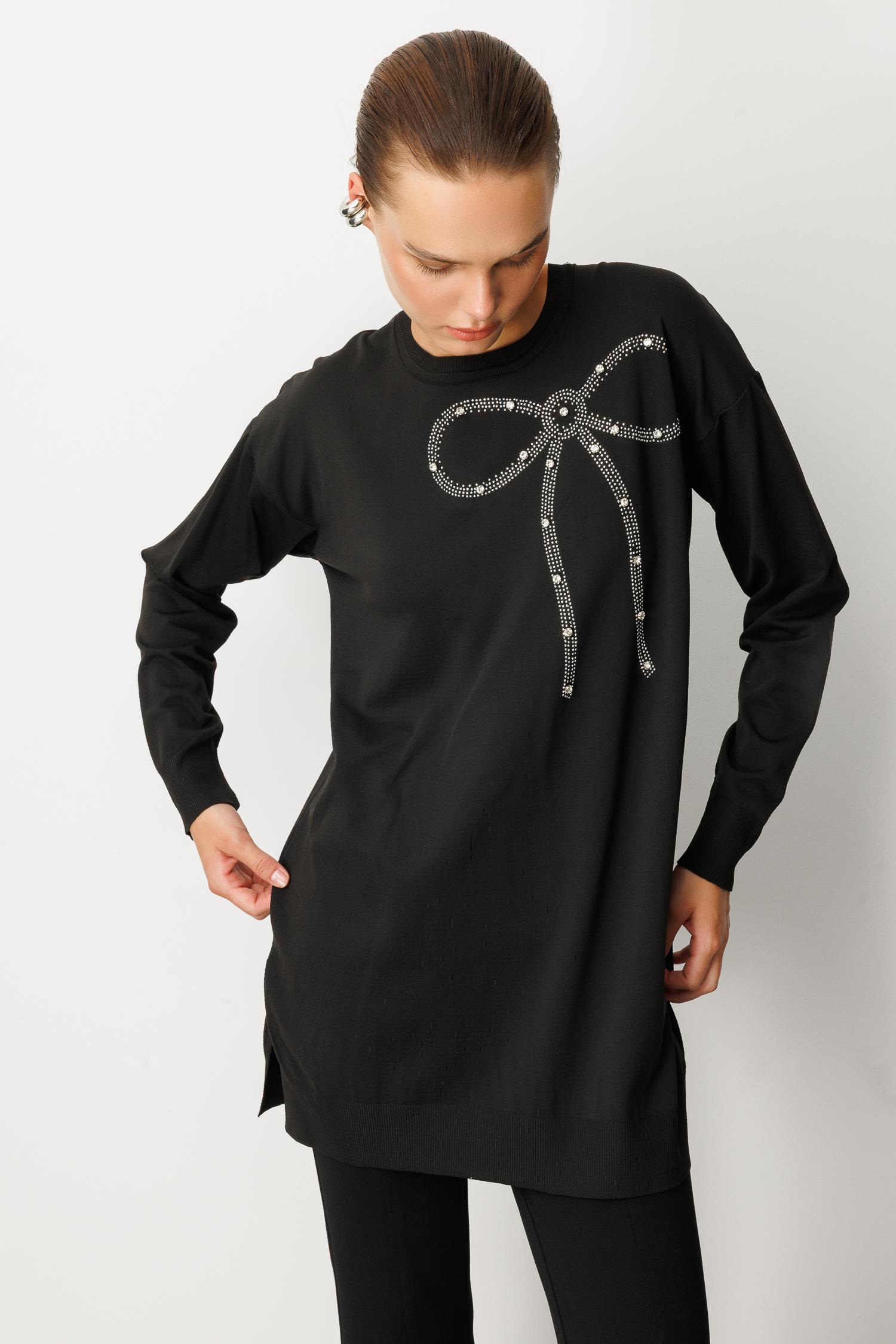 Kurdele Taş Detaylı Triko Tunik-SİYAH (5WVTL007211_01)