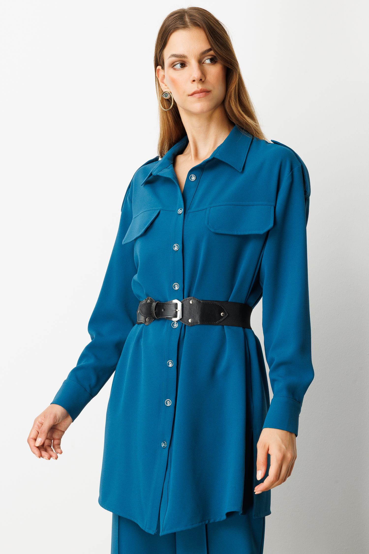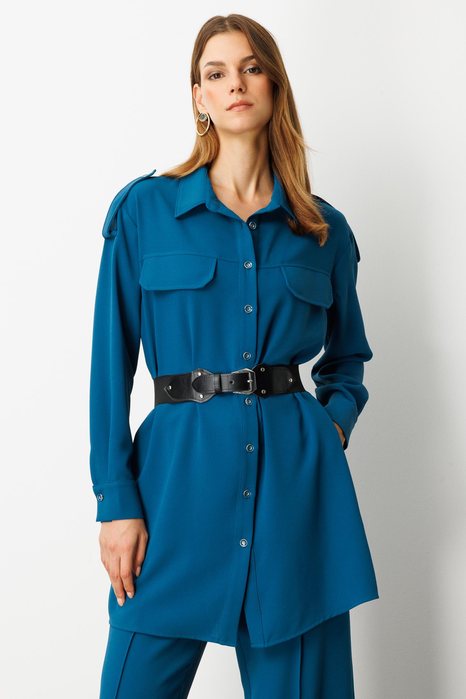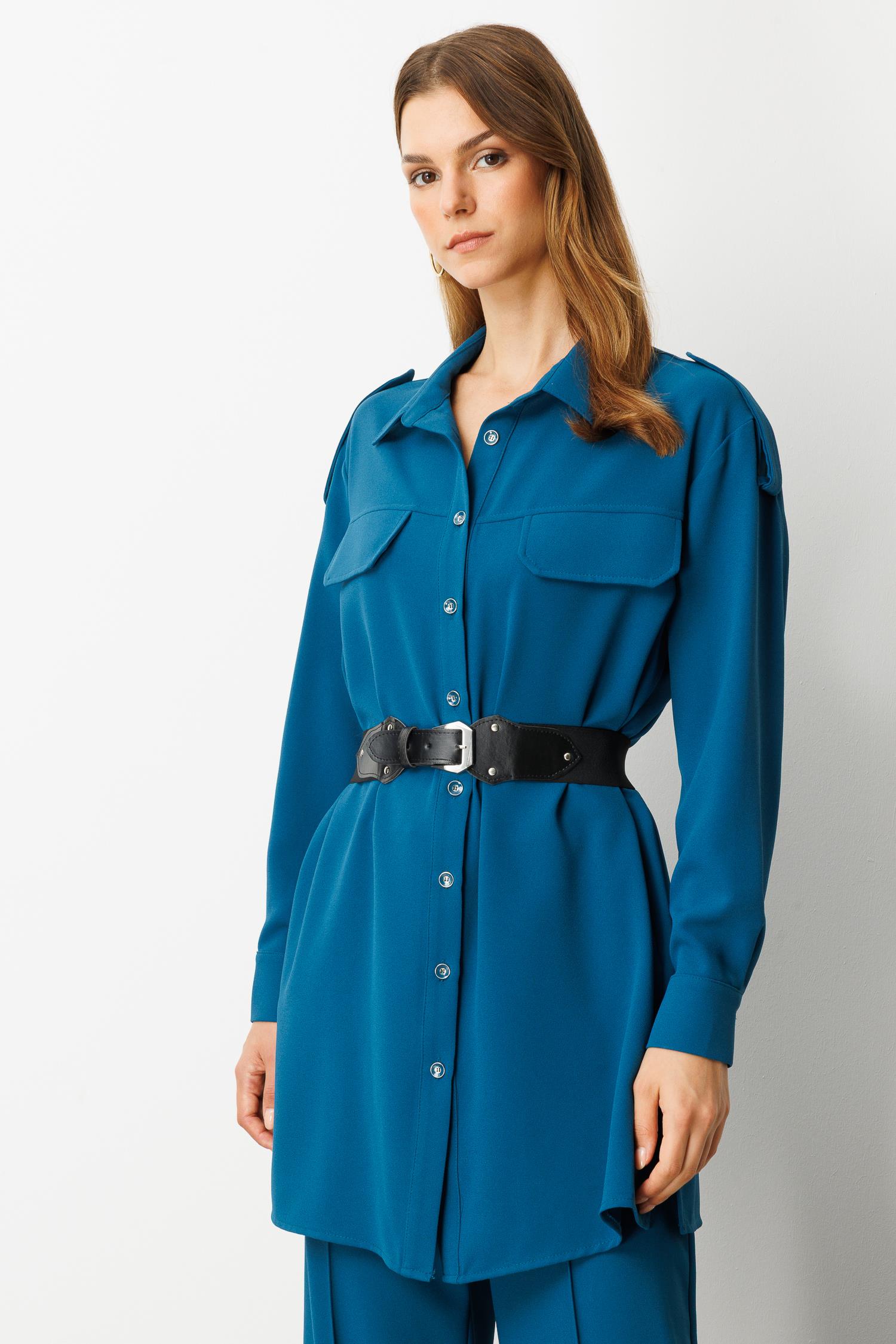 Lastik Kemer Detaylı Krep Tunik Gömlek-PETROL (5WKB81K1973_56)