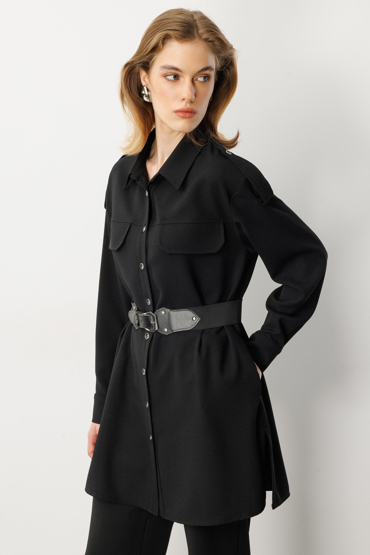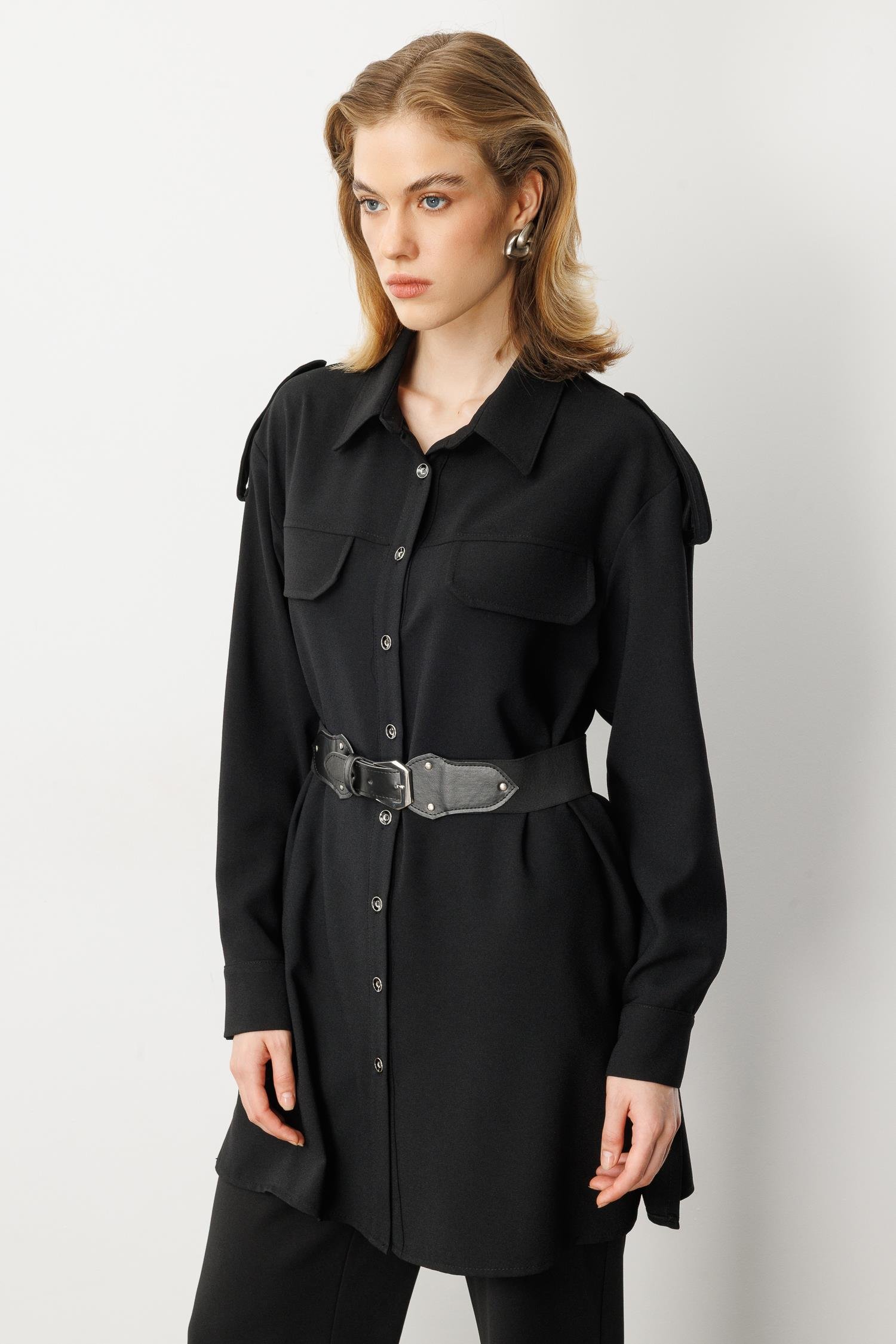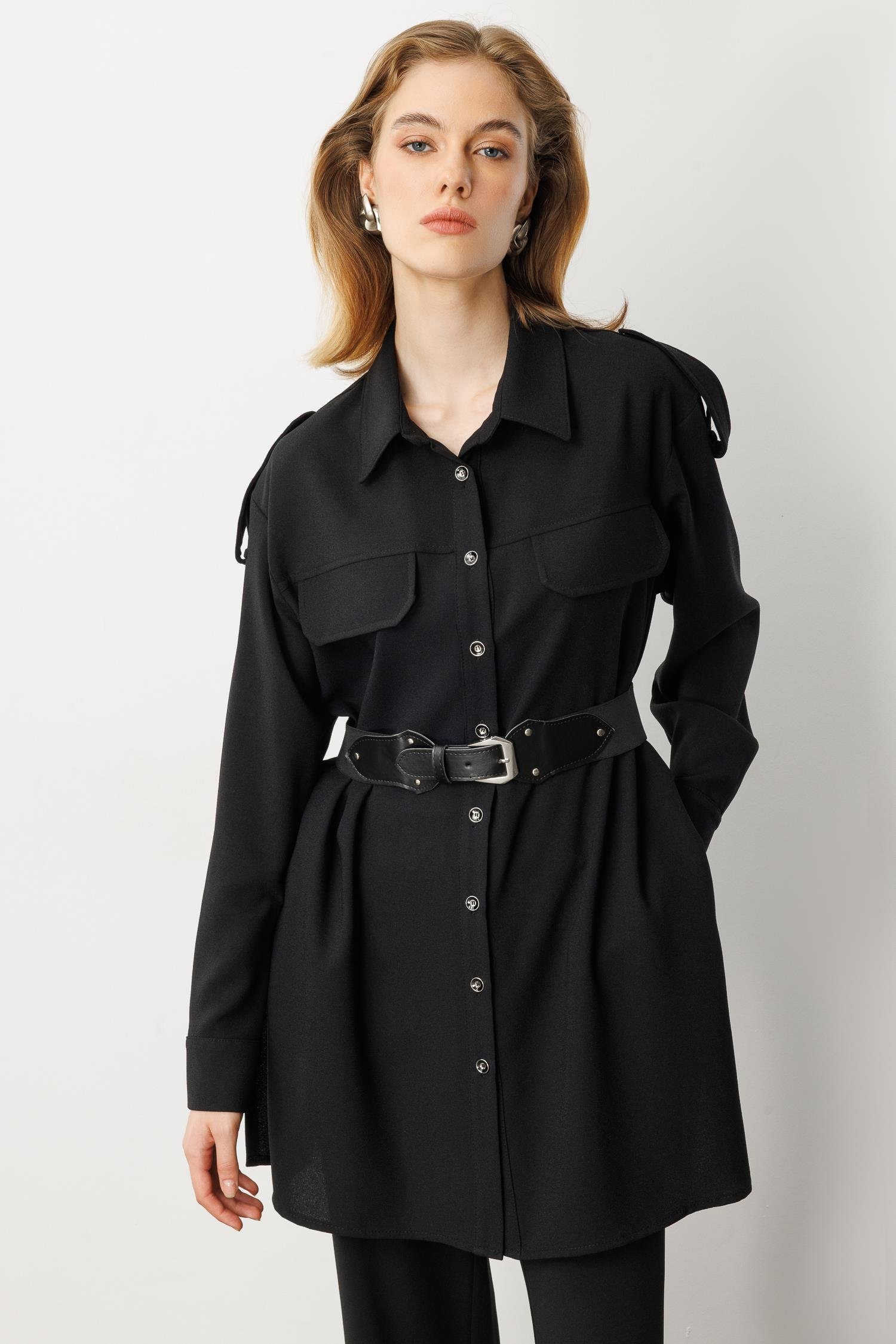 Lastik Kemer Detaylı Krep Tunik Gömlek-SİYAH (5WKB81K1973_01)