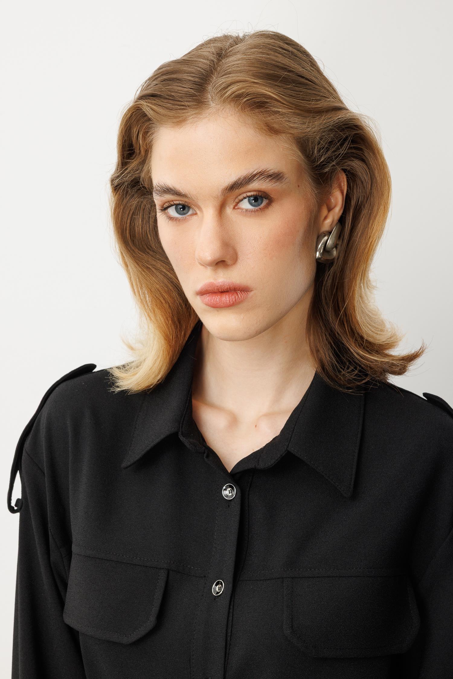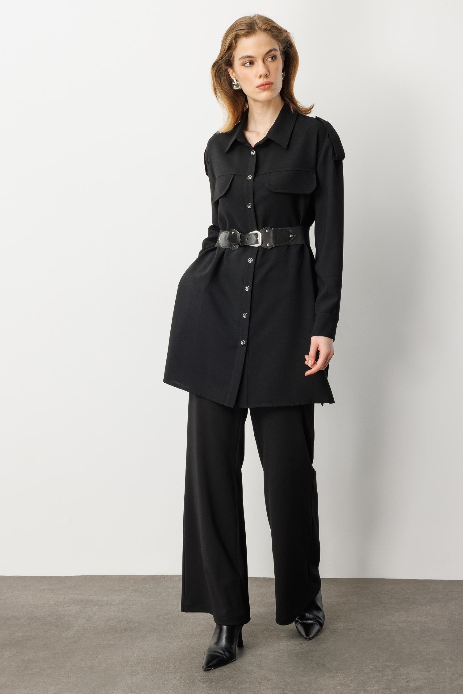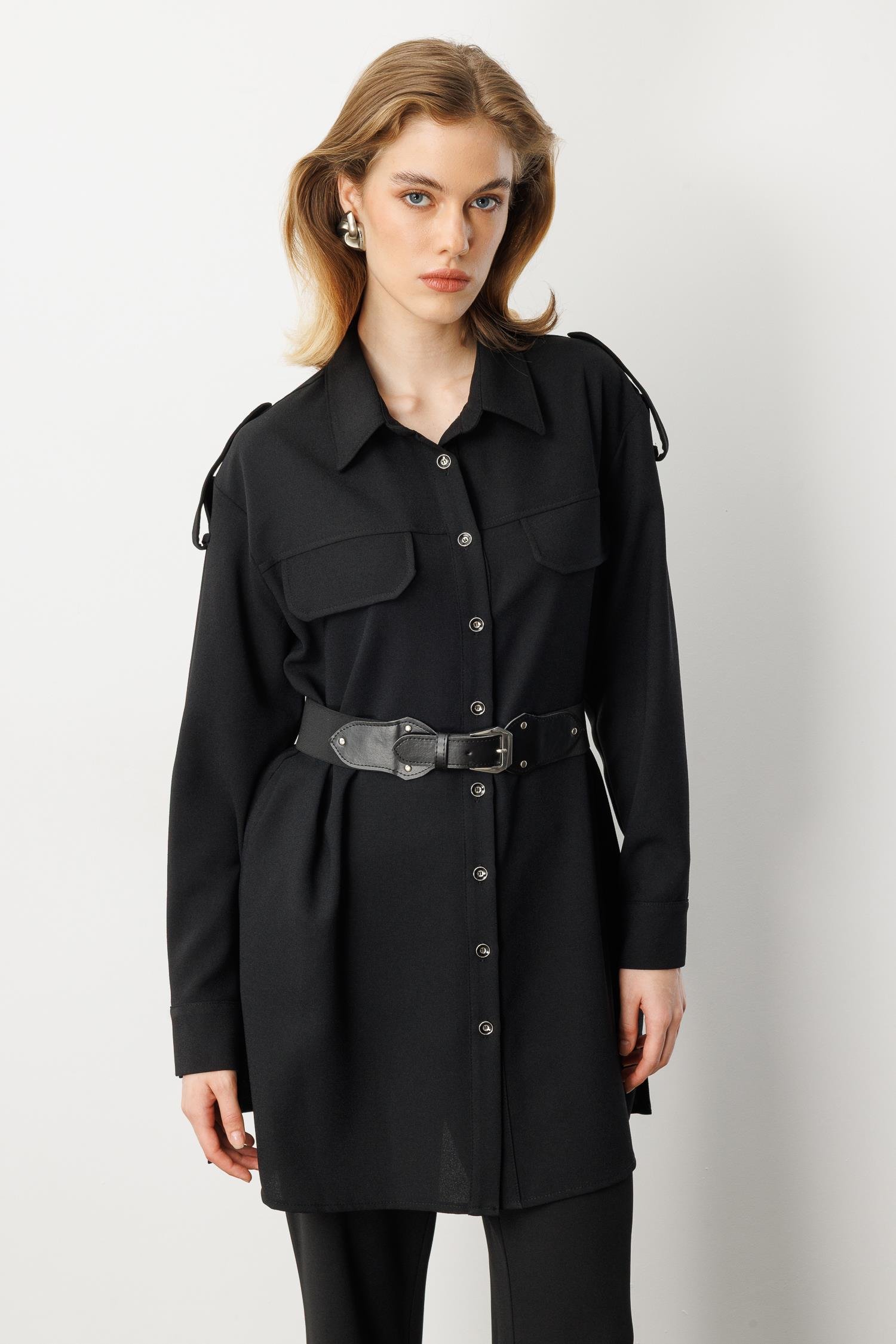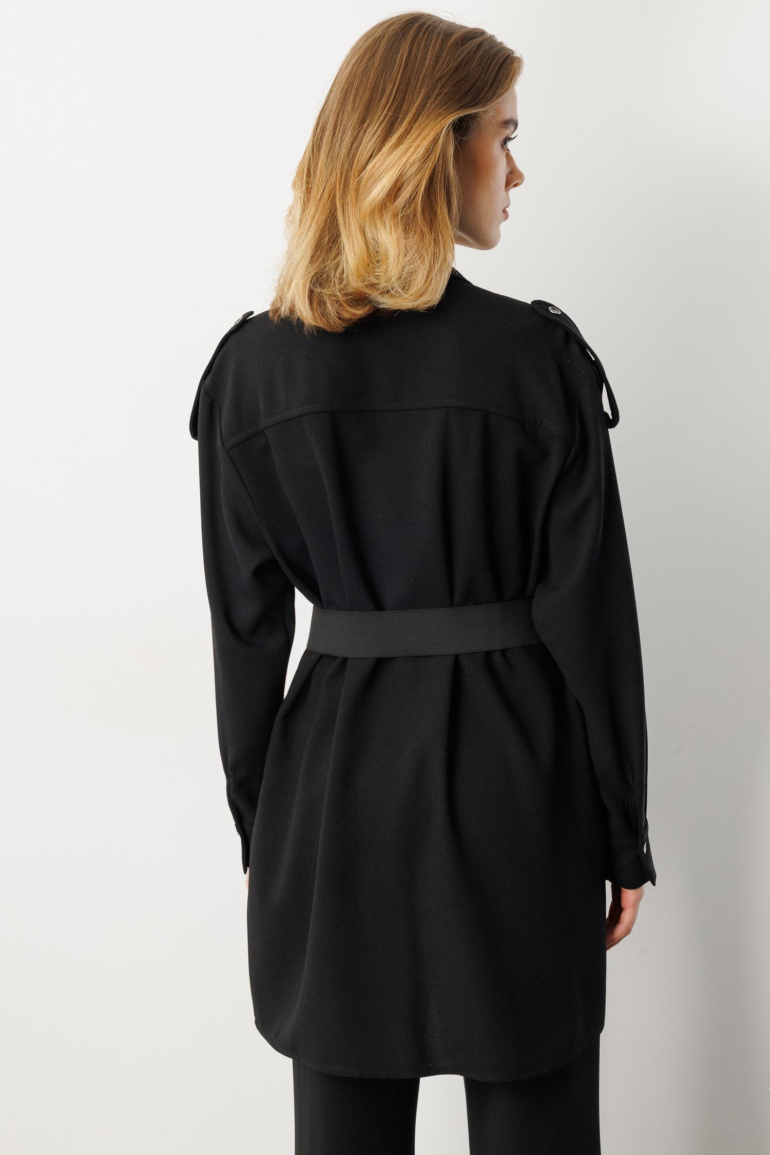 Lastik Kemer Detaylı Krep Tunik Gömlek-SİYAH (5WKB81K1973_01)