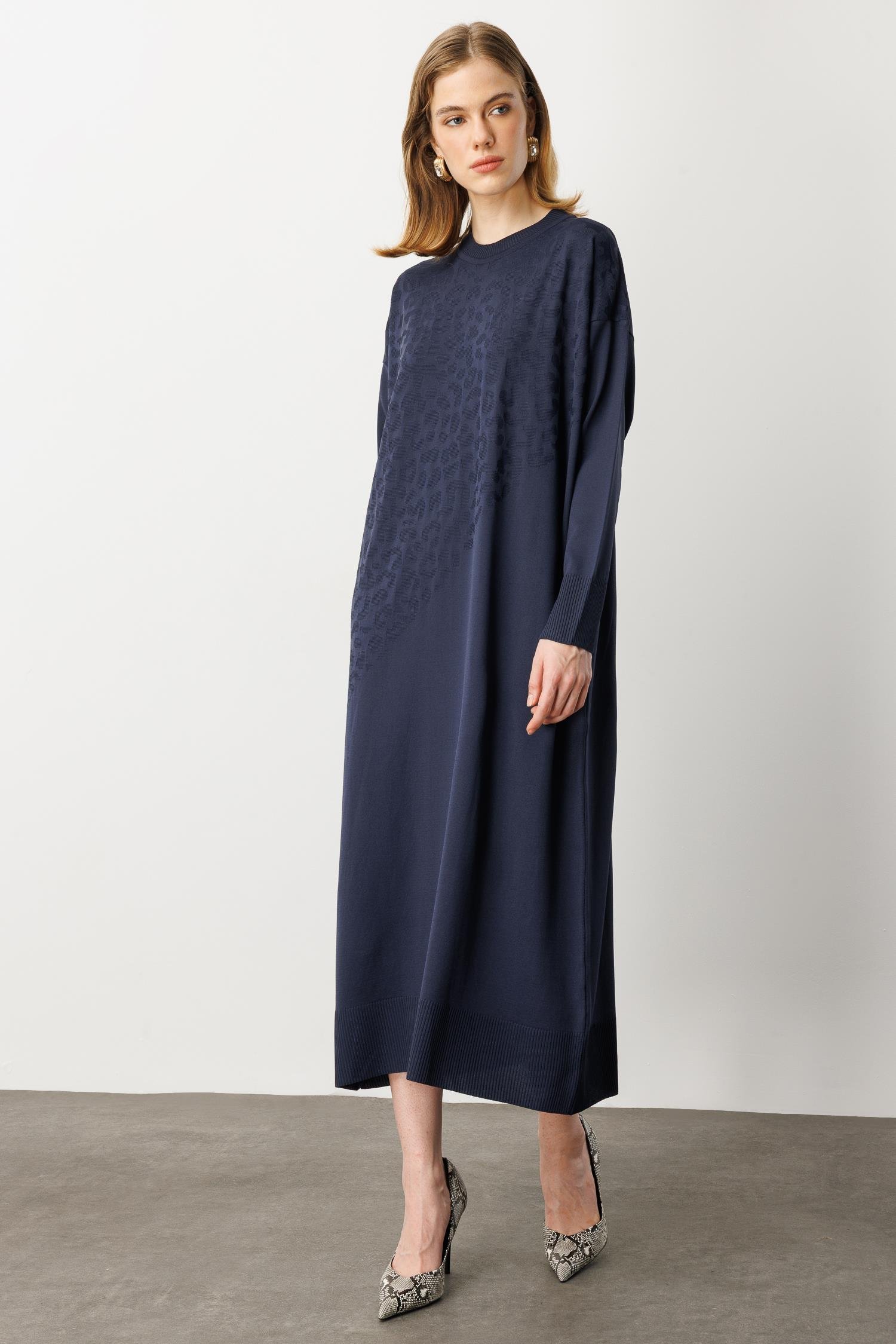 Leopar Desenli Triko Uzun Elbise-LACI (5WT00035357_18)