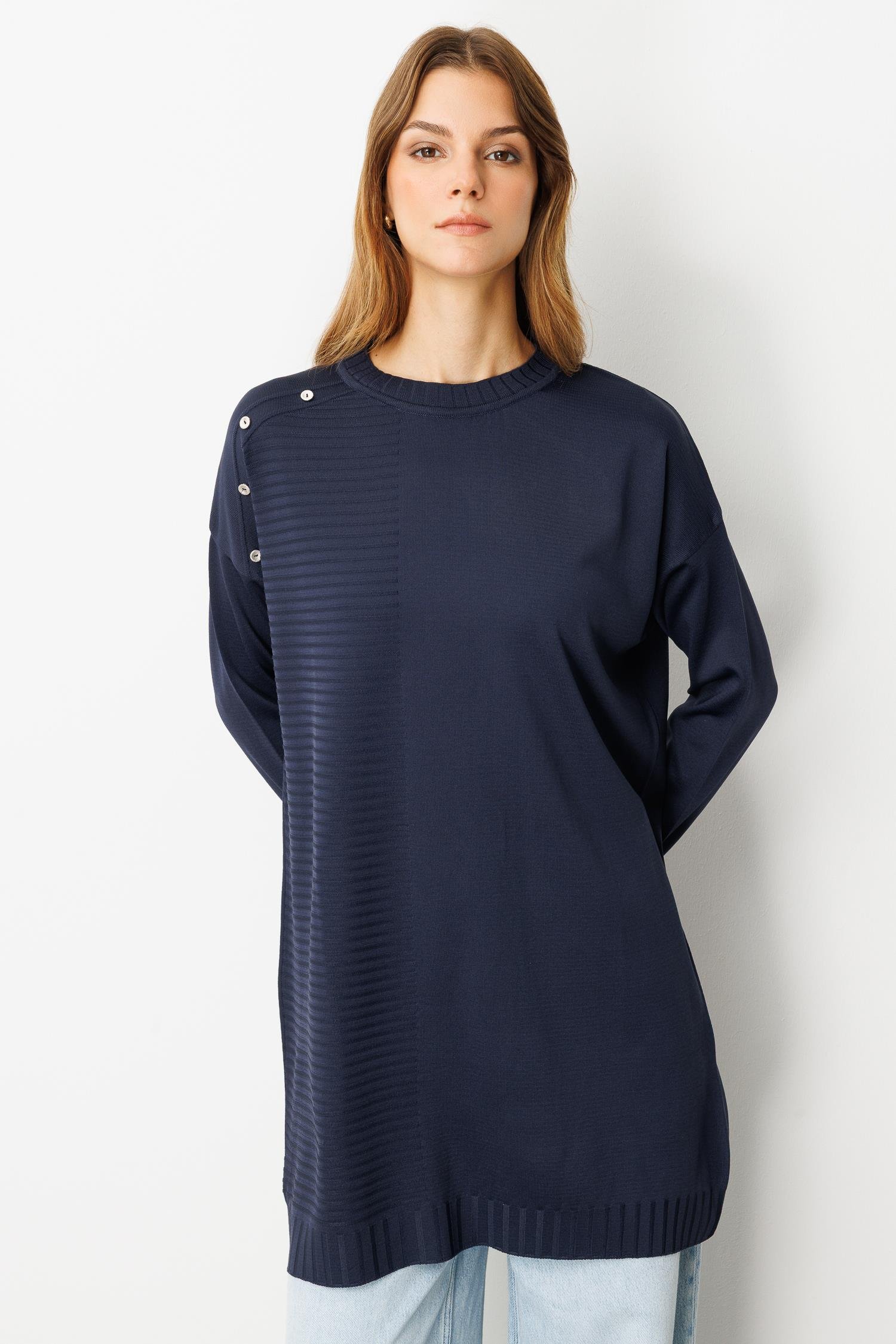Omzu Düğme Detaylı Triko Tunik-LACI (5WT00035216_18)