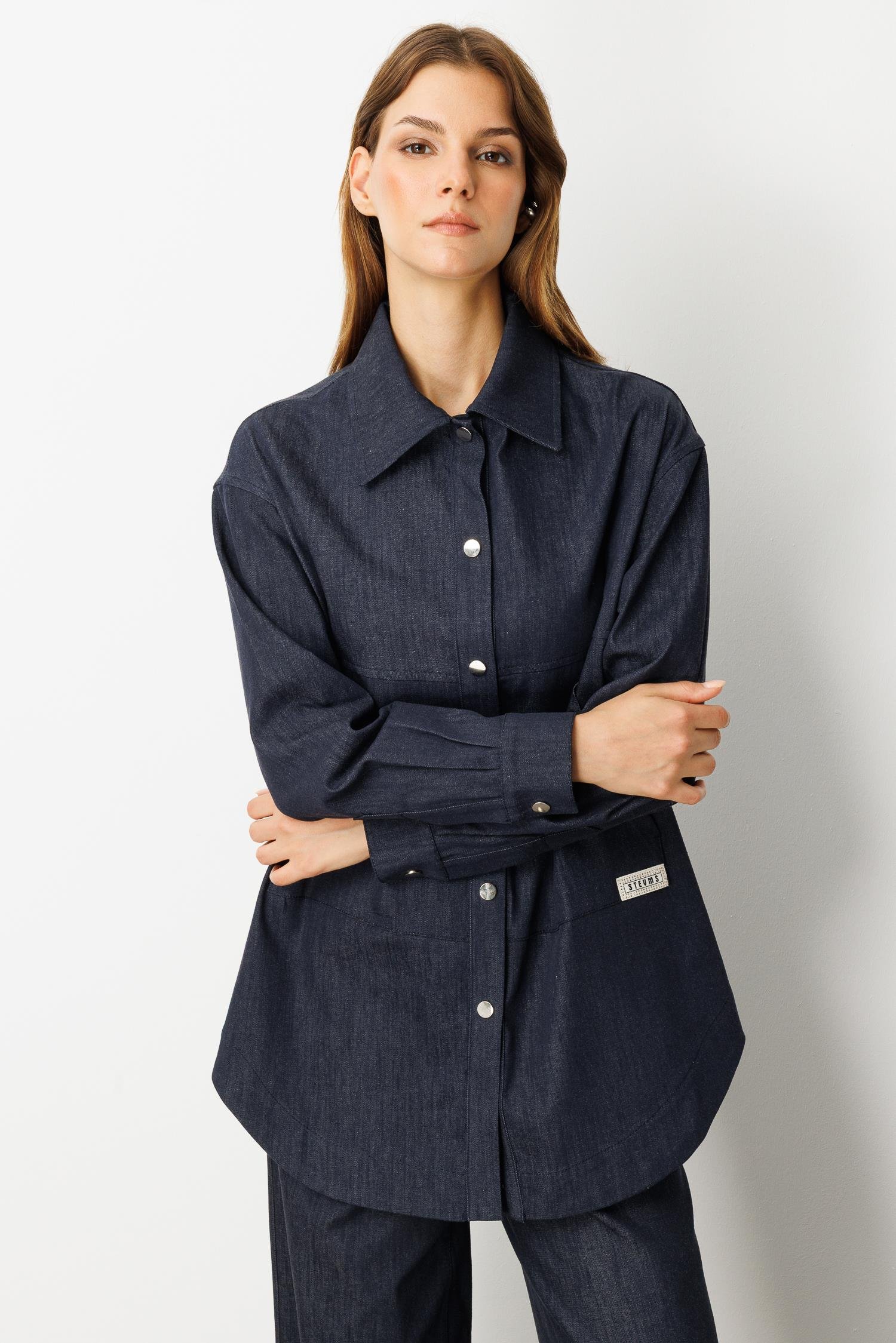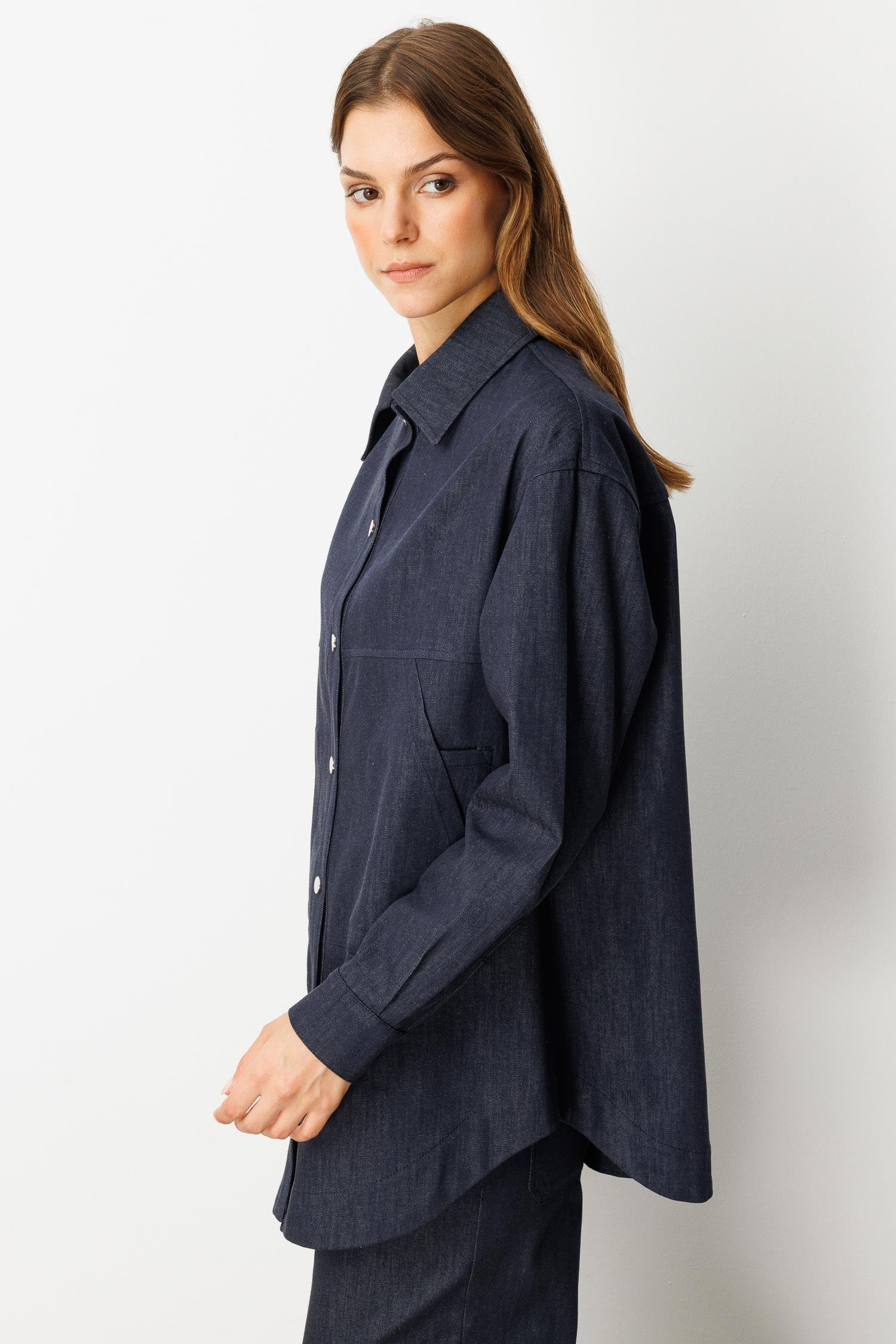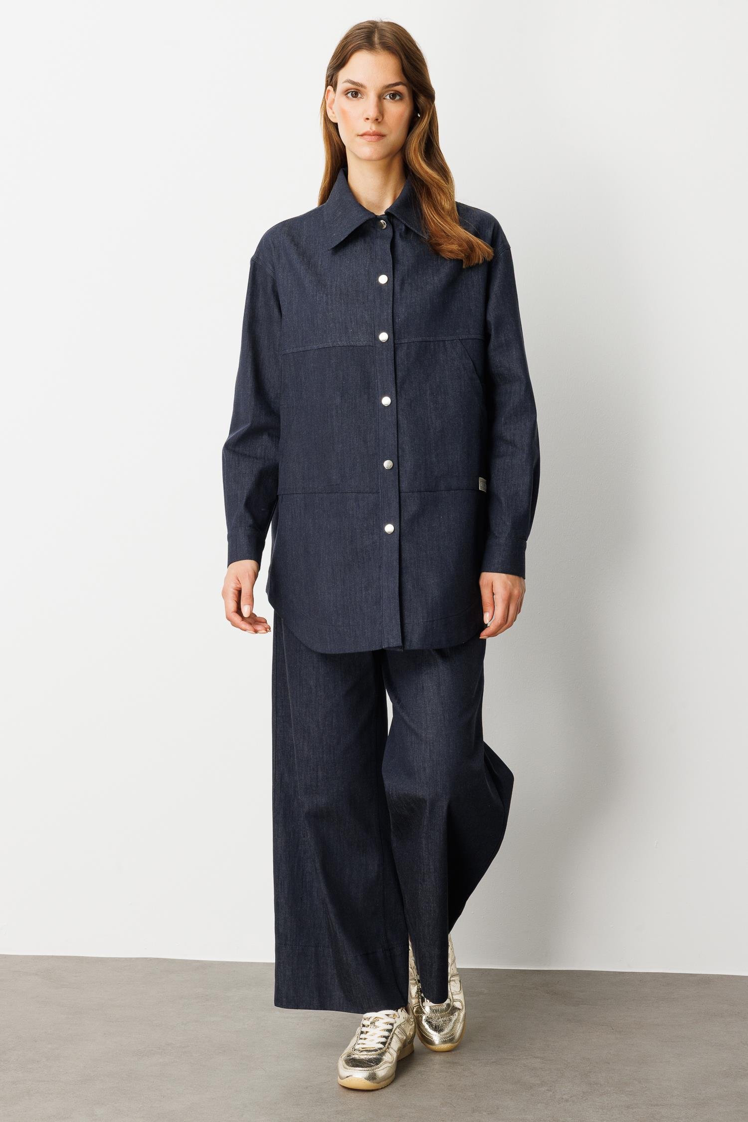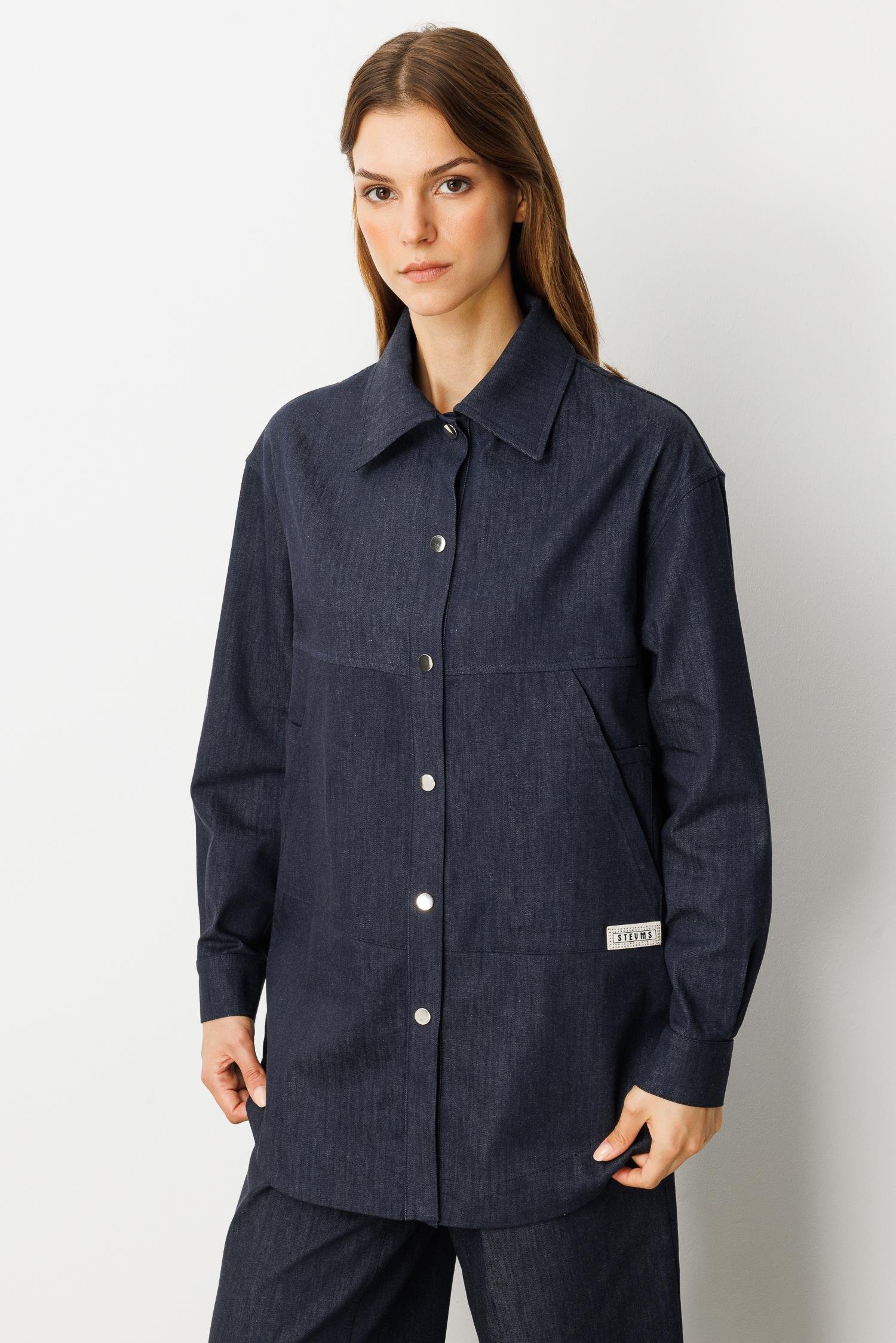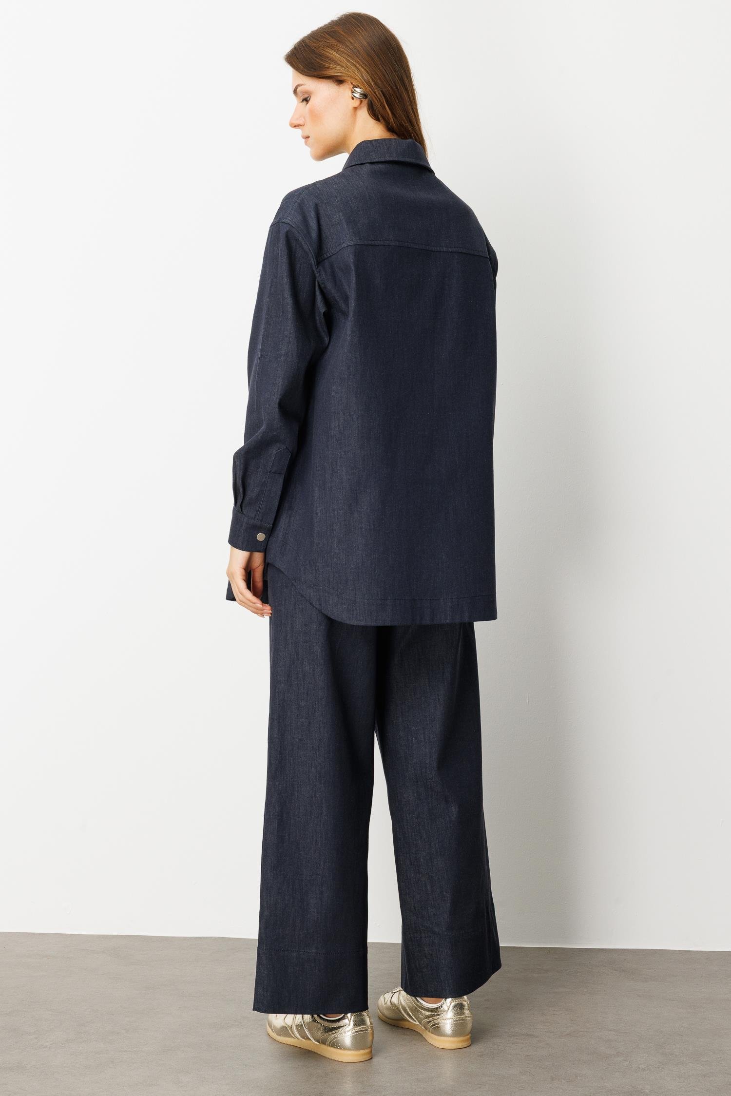 Önü Cep Detay Pamuklu Kot Gömlek-LACI (5WKB81K1996_18)